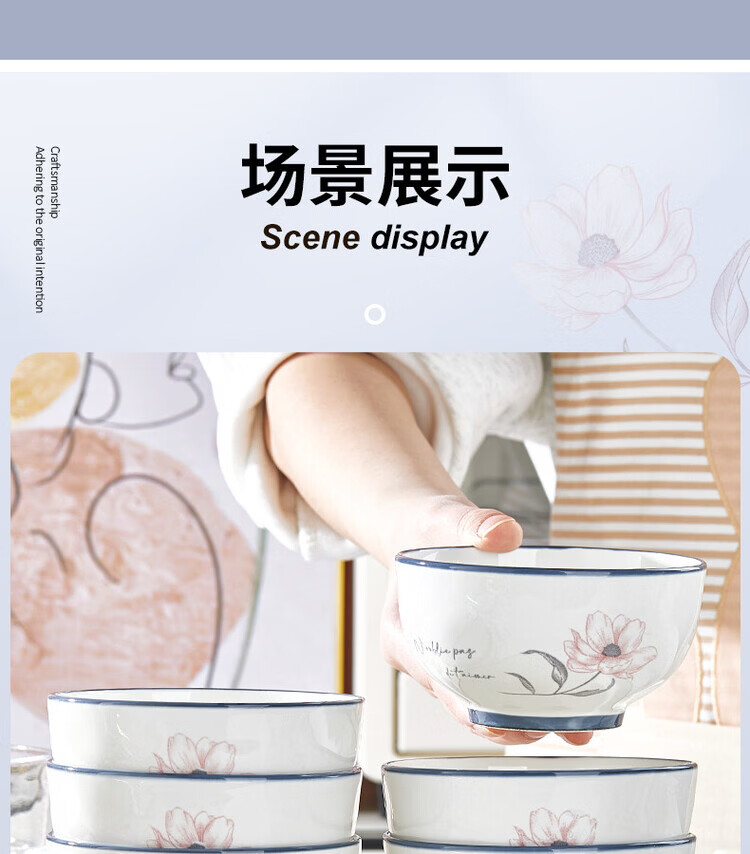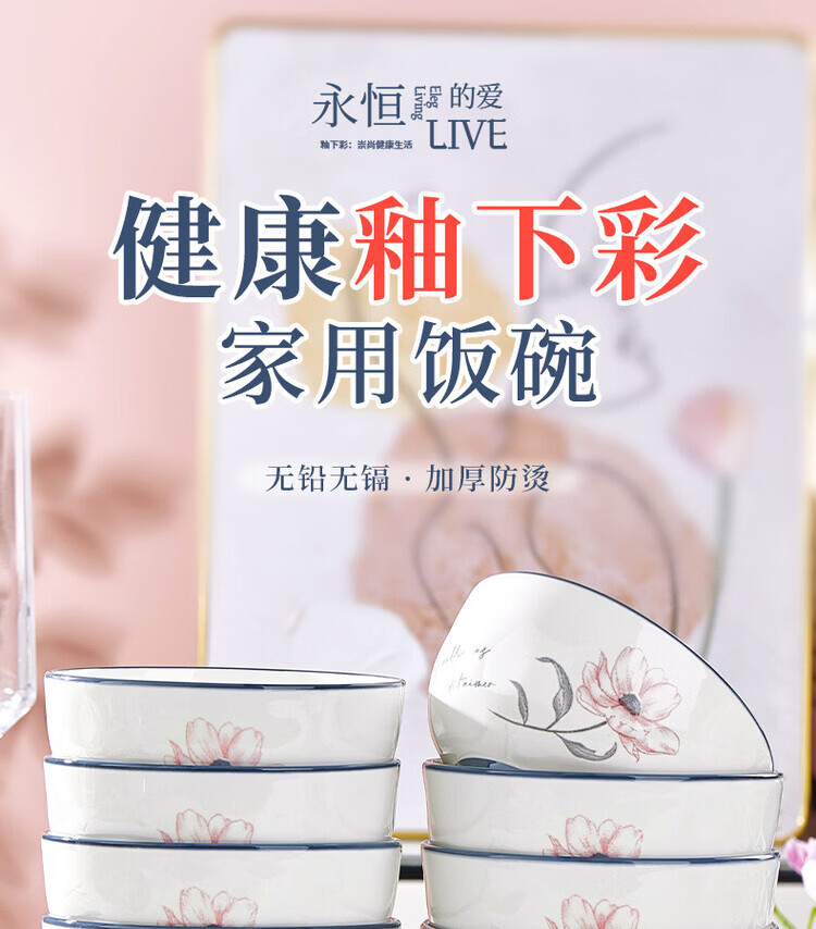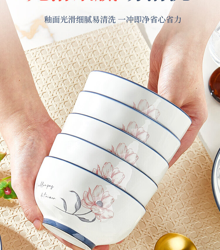 Yong Huan German imported quality bowl household simple and fashionable rice bowl 2026 new high-value high-temperature underglaze color tableware can be 6 underglaze color 4.5-inch rice bowls