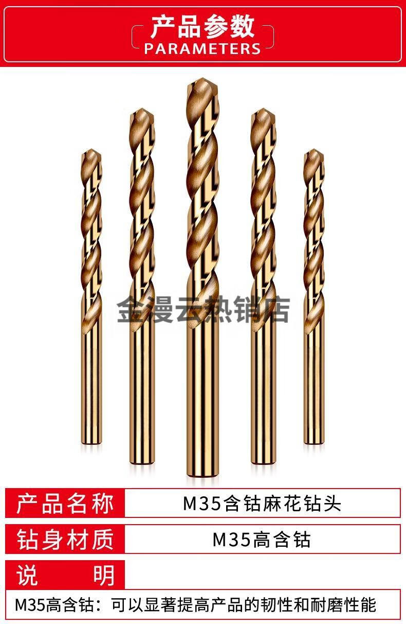 Cobalt-containing hemp drill bit for drilling steel and high hardness plum iron stainless steel plate rotor 14MM