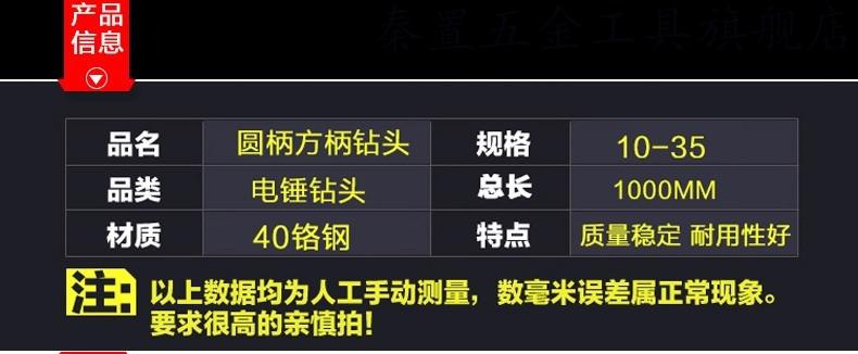 Taslon extended impact drill bit rectangular handle four pits long wall drill round handle two pits two slots electric hammer impact drill 10 14*1000MM square handle four pits