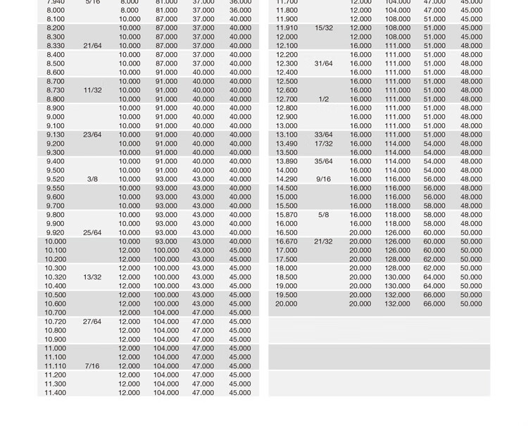 76.2 81.3 86.4 91.5 96.5 101.6 106.7 112 117 122 127 132 137 142