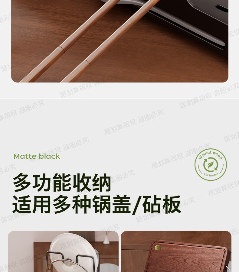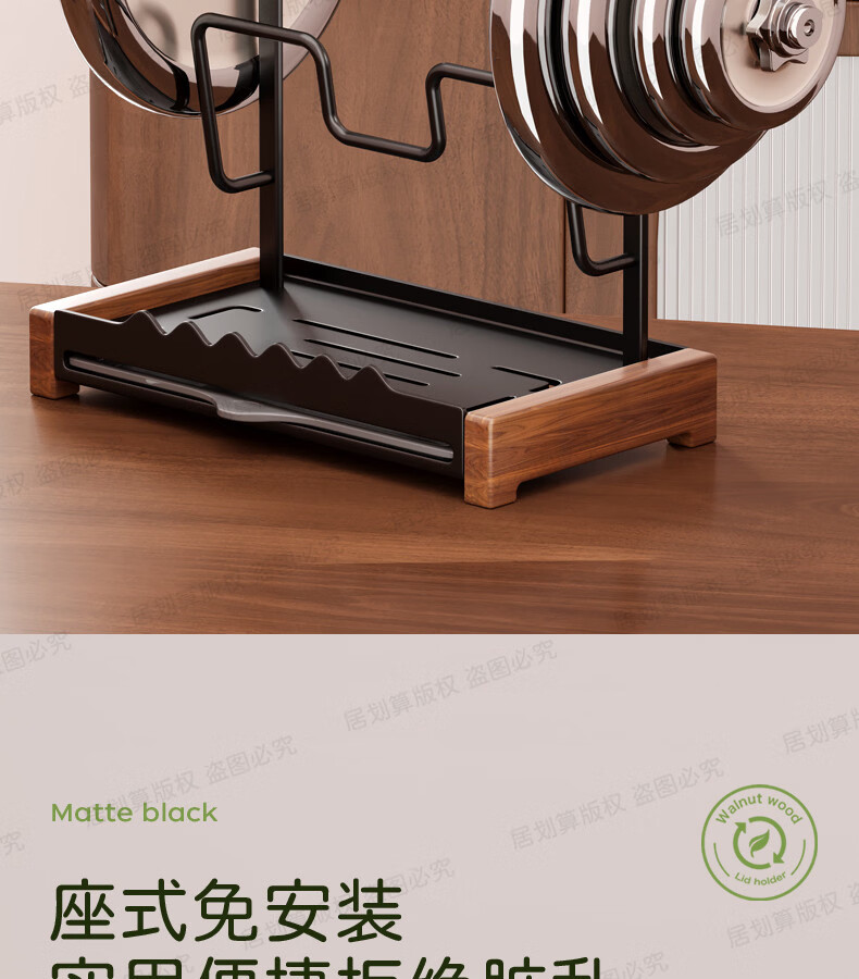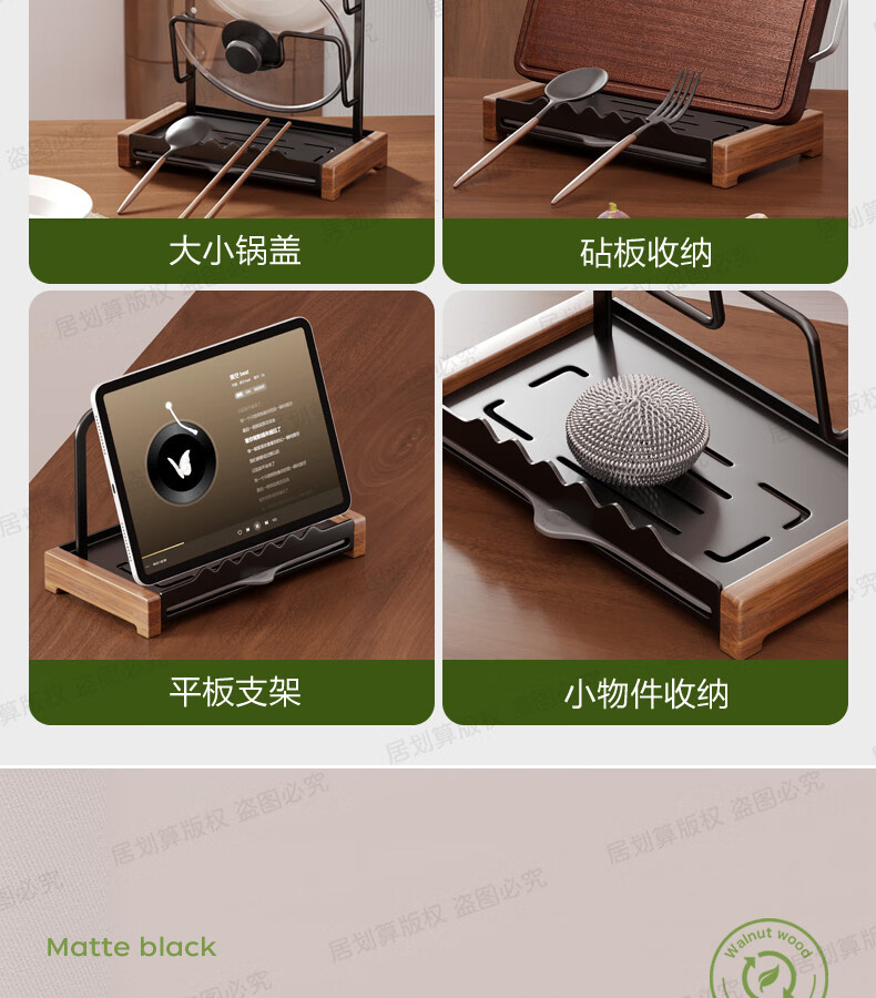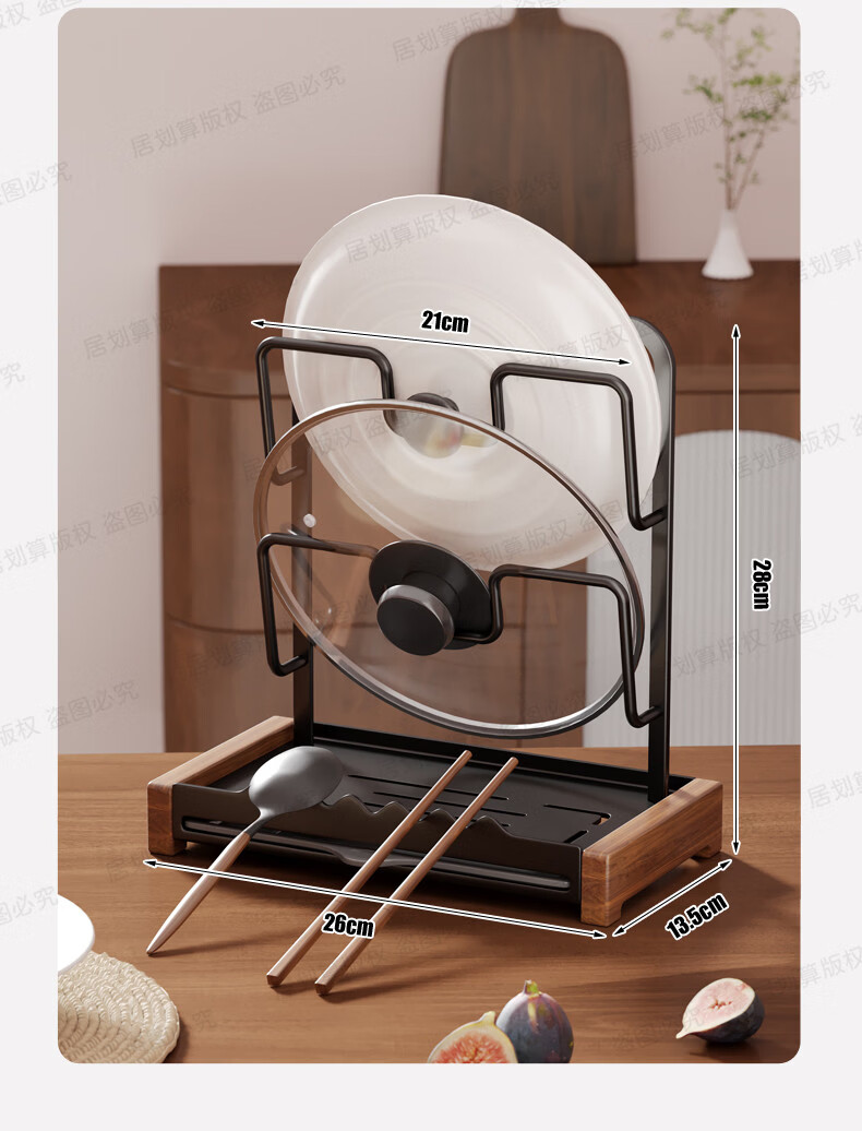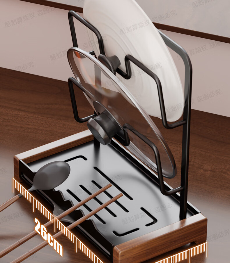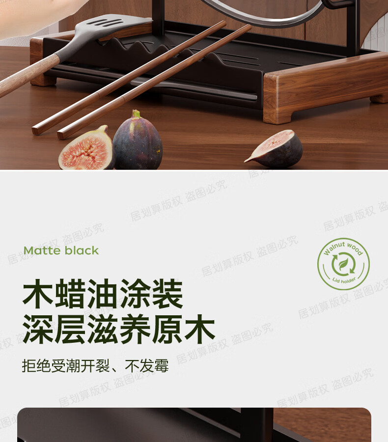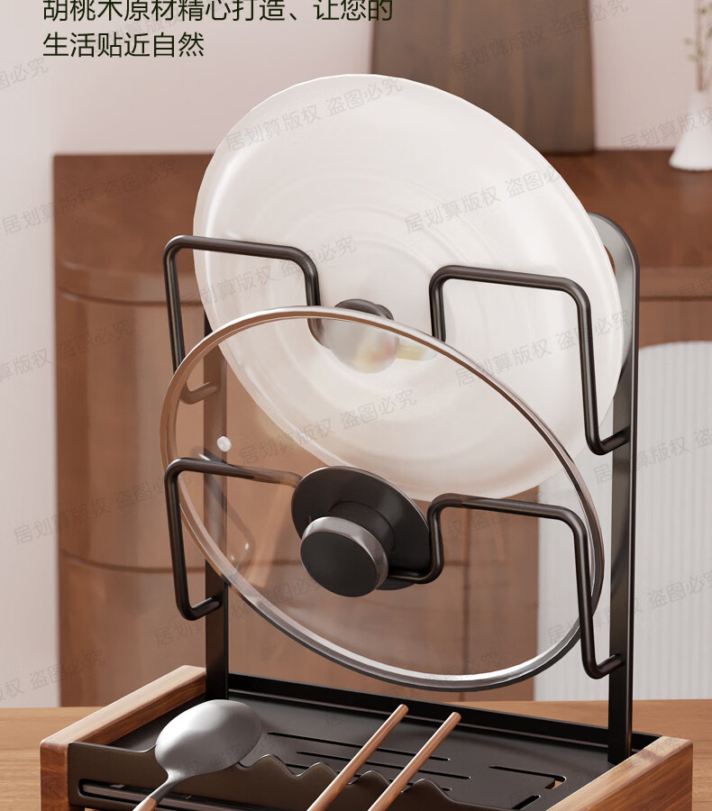 Pupan walnut mid-century style countertop pot lid rack kitchen chopping board artifact cutting board storage shelf chopping board spatula bracket Yahei single layer North American black walnut multi-functional pot lid rack