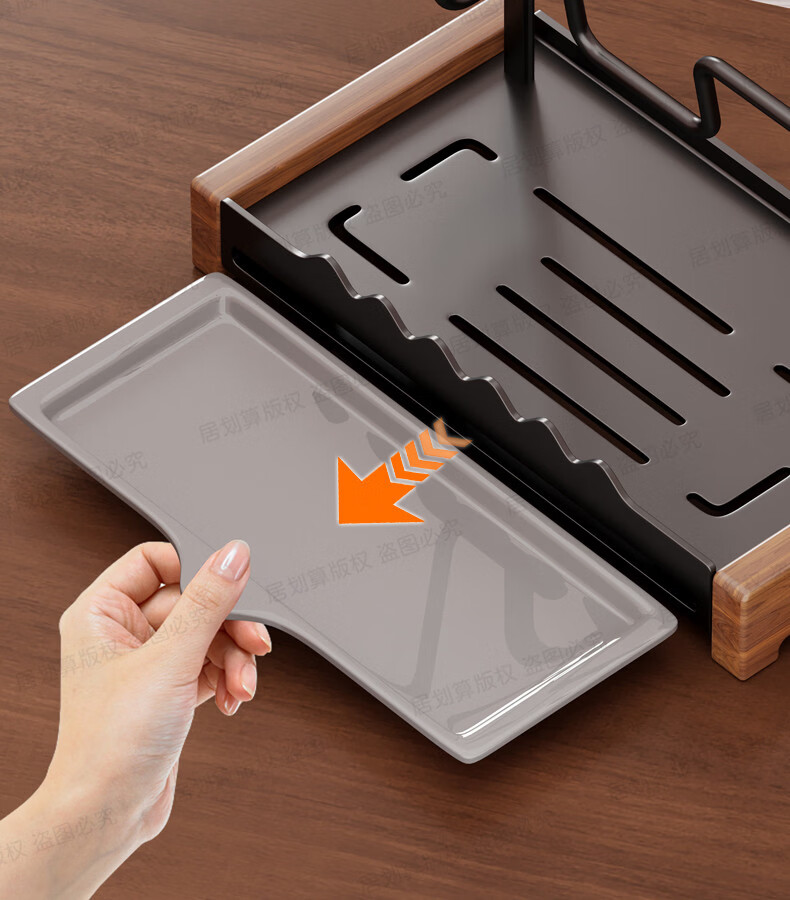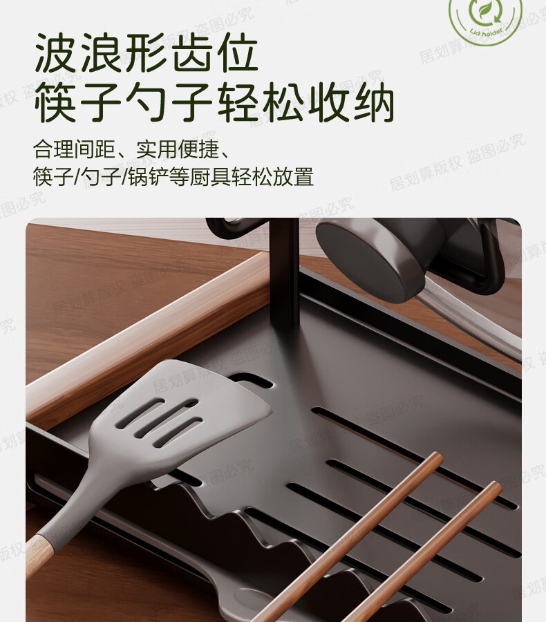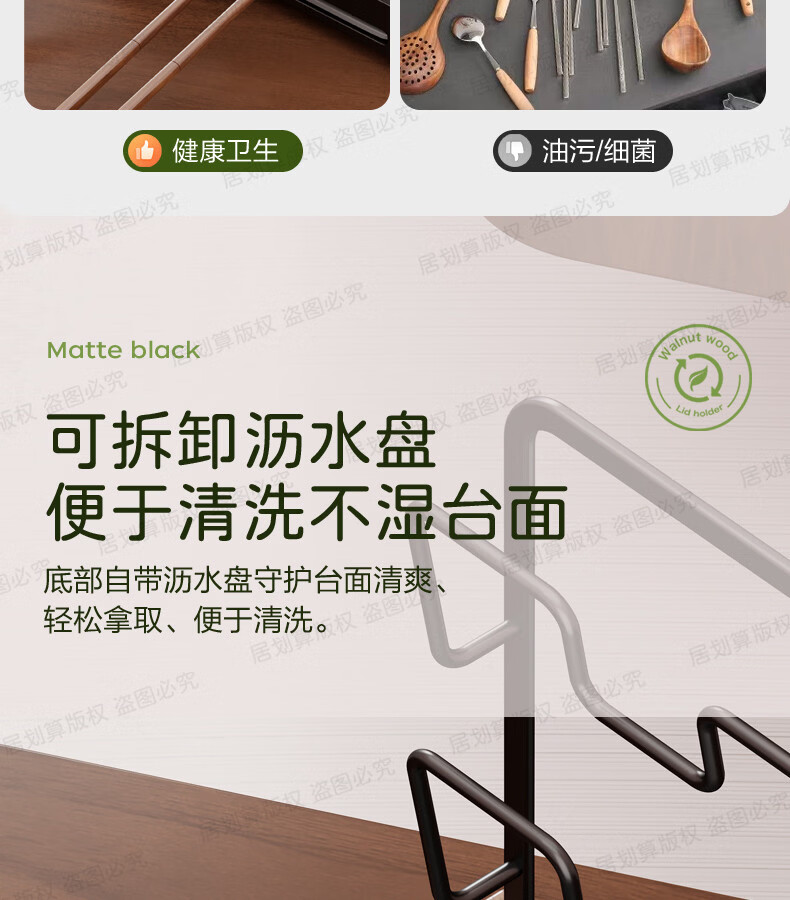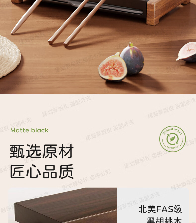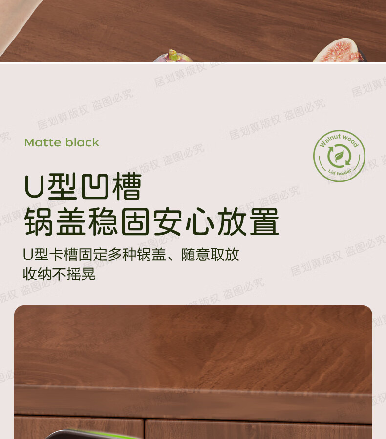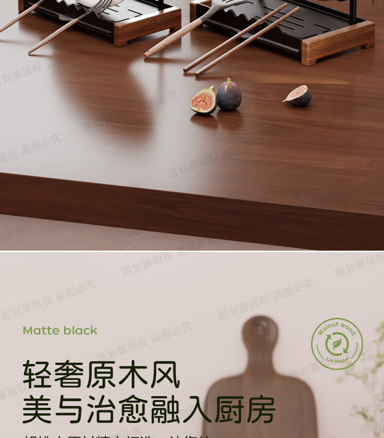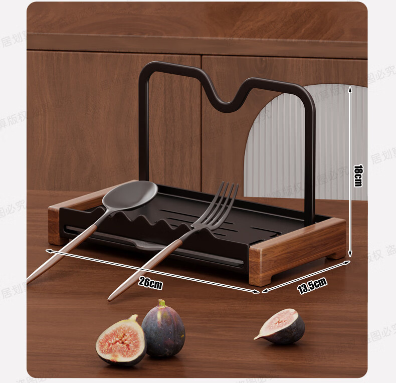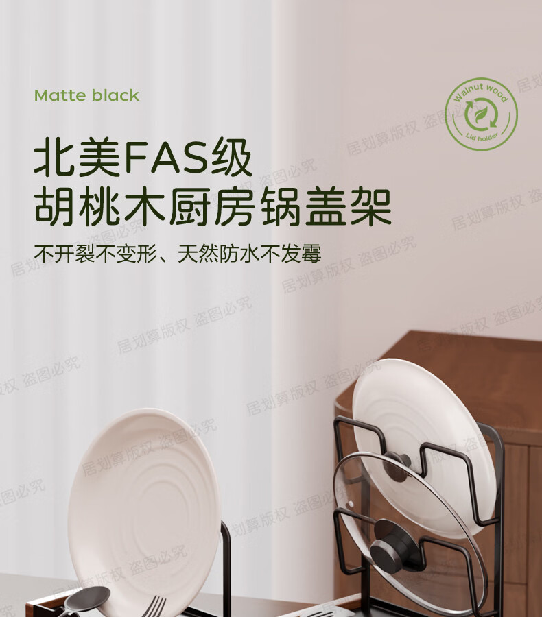 Pupan walnut mid-century style countertop pot lid rack kitchen chopping board artifact cutting board storage shelf chopping board spatula bracket Yahei single layer North American black walnut multi-functional pot lid rack