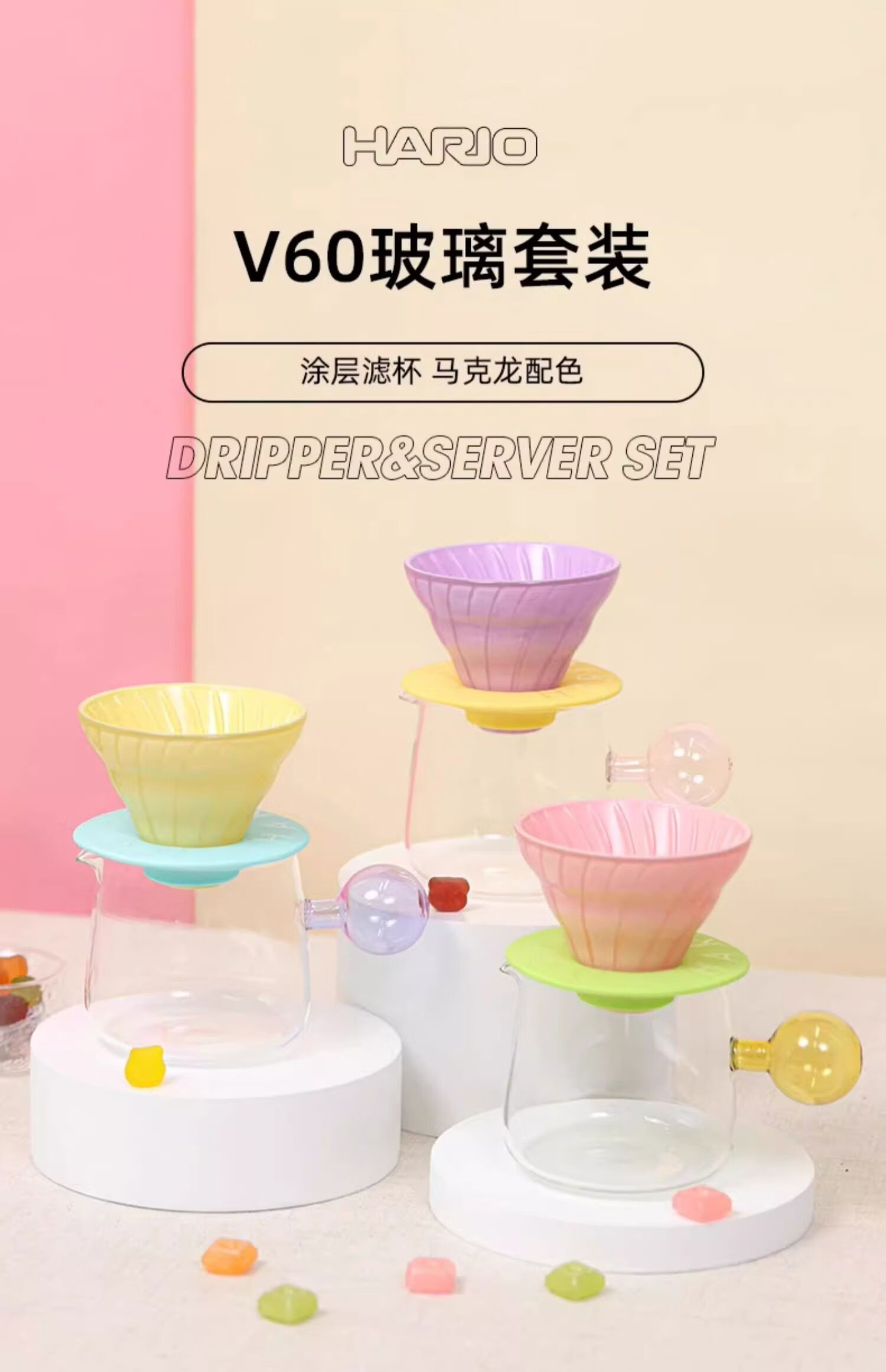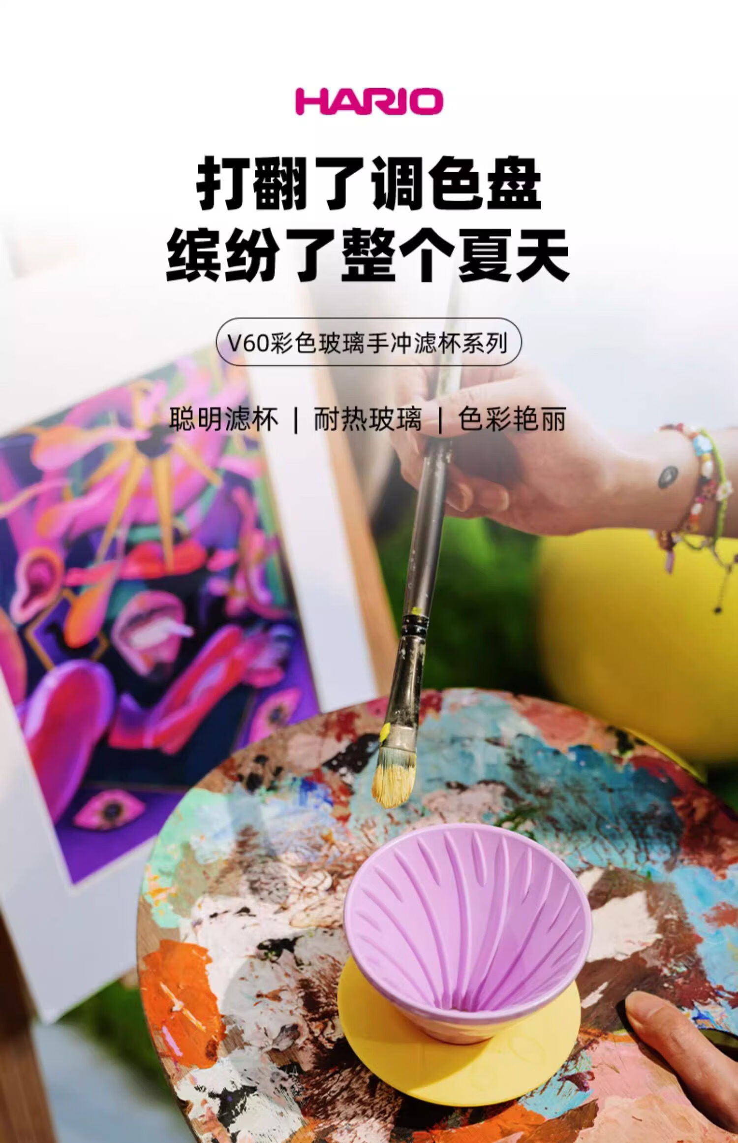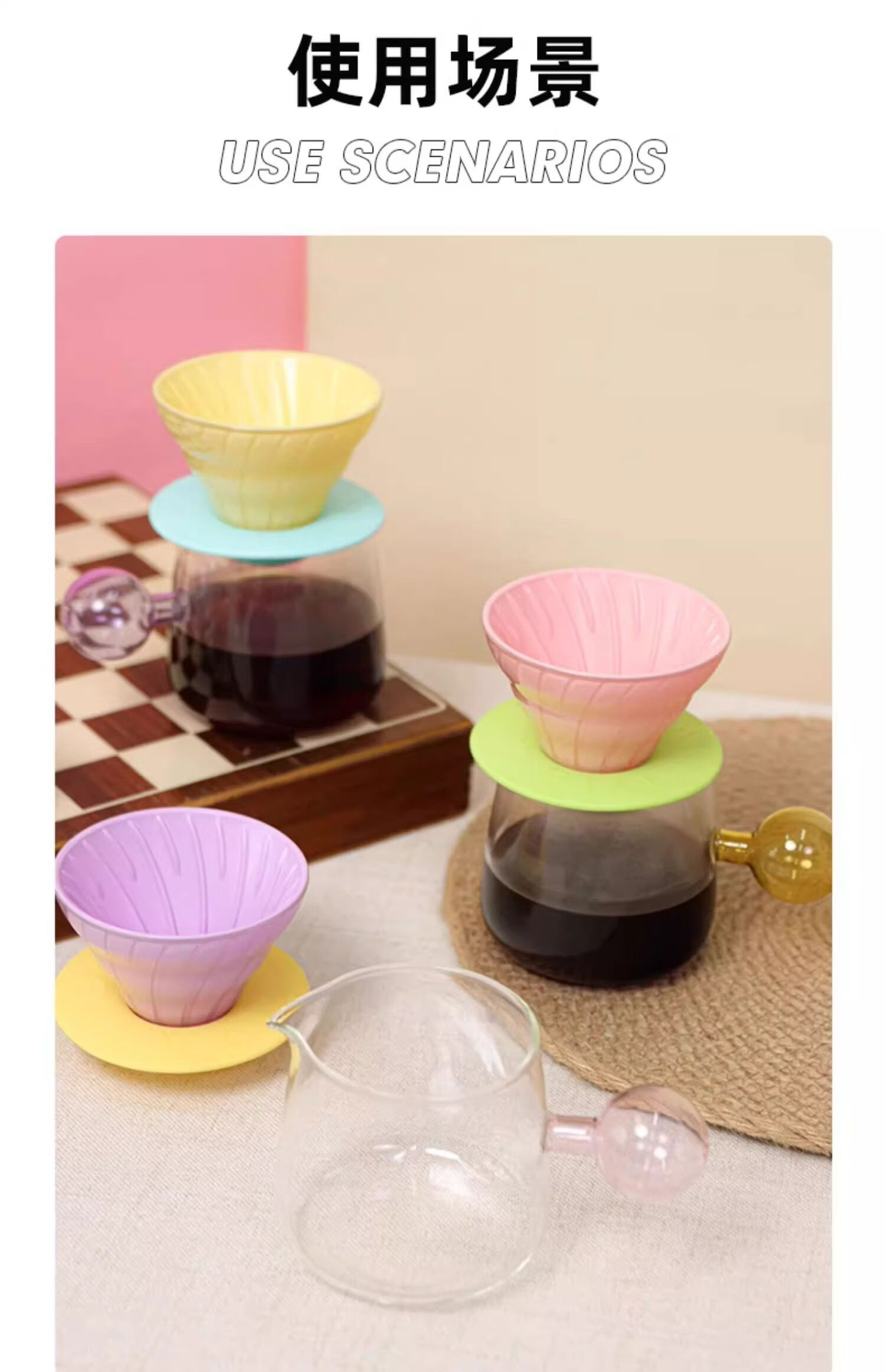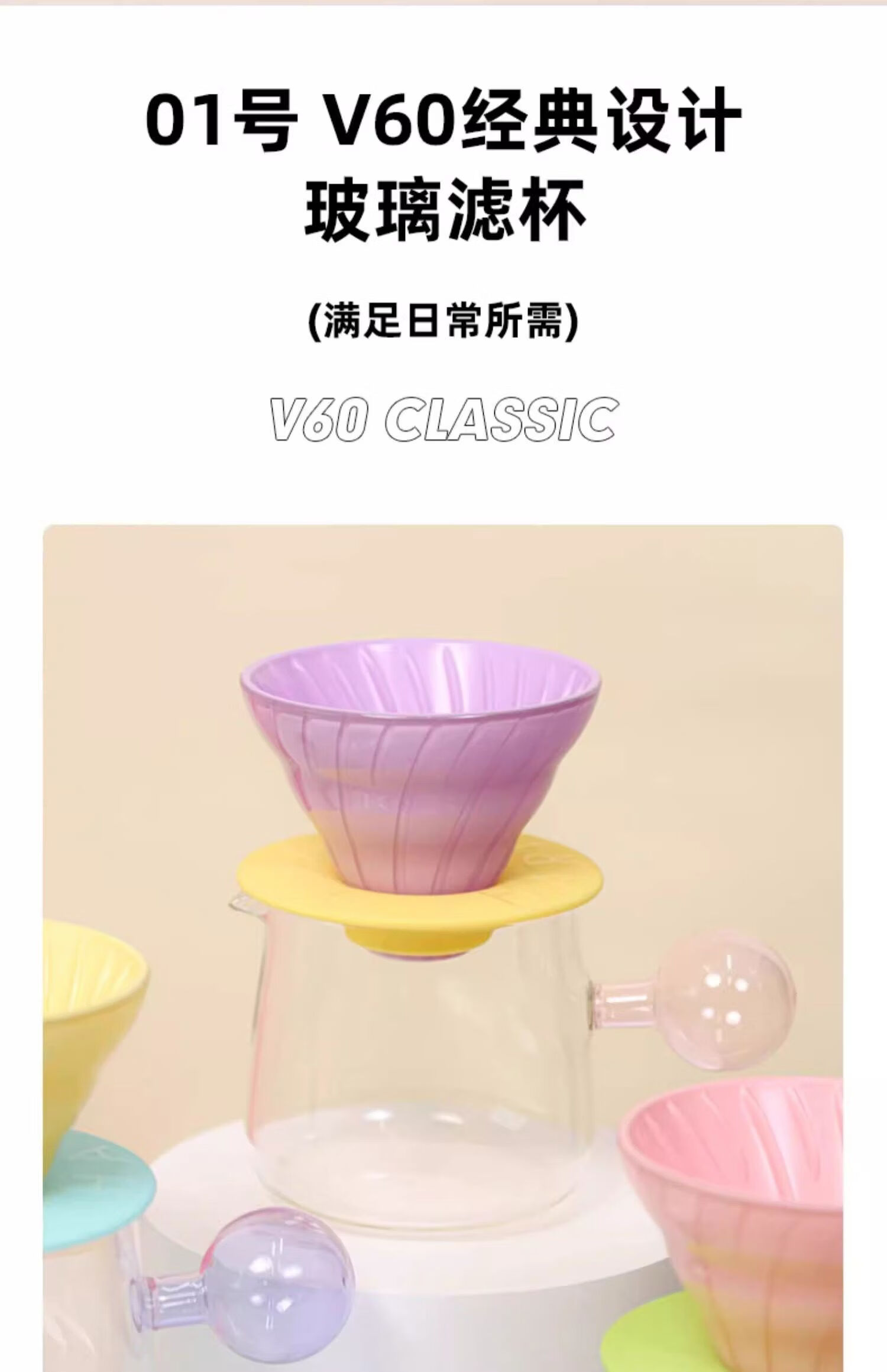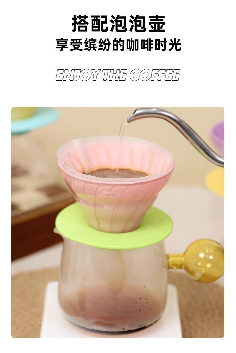 Colored glass smart cup V60 coffee filter cup drip extraction cup coffee utensil hand brew filter cup long glass smart cup contains 40 pieces of original filter paper