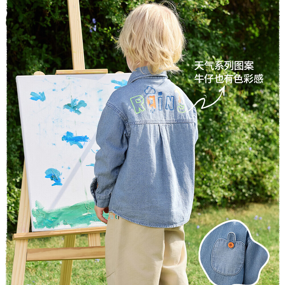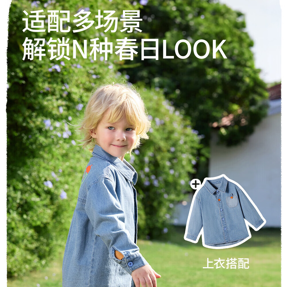 Betis children's shirt spring boys' denim cotton baby 7A antibacterial long-sleeved shirt light blue 80 cm