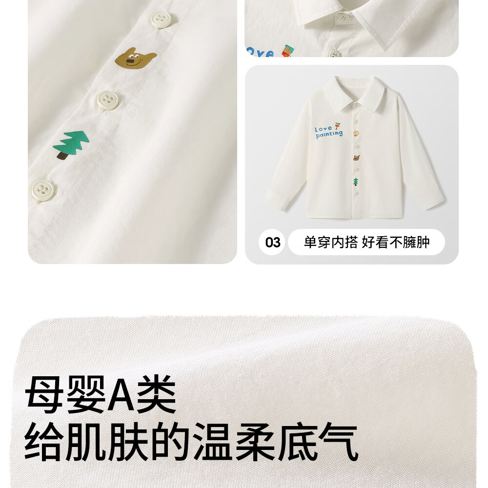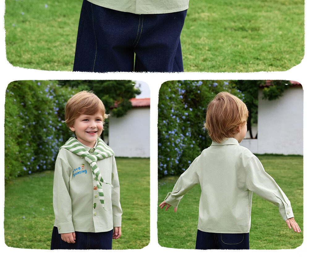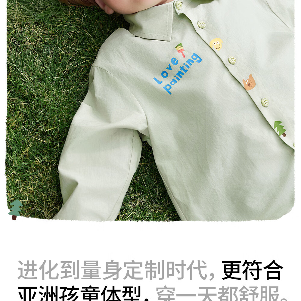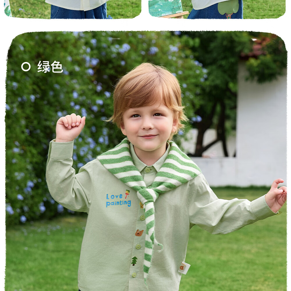 Betis children's shirt boys spring new cotton baby cartoon casual long-sleeved white shirt green 80 cm