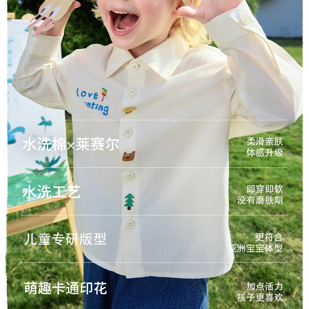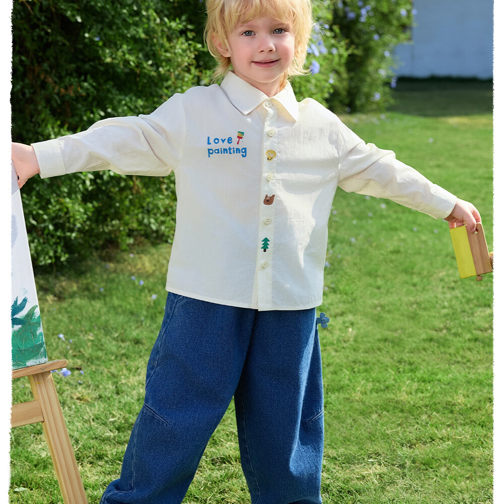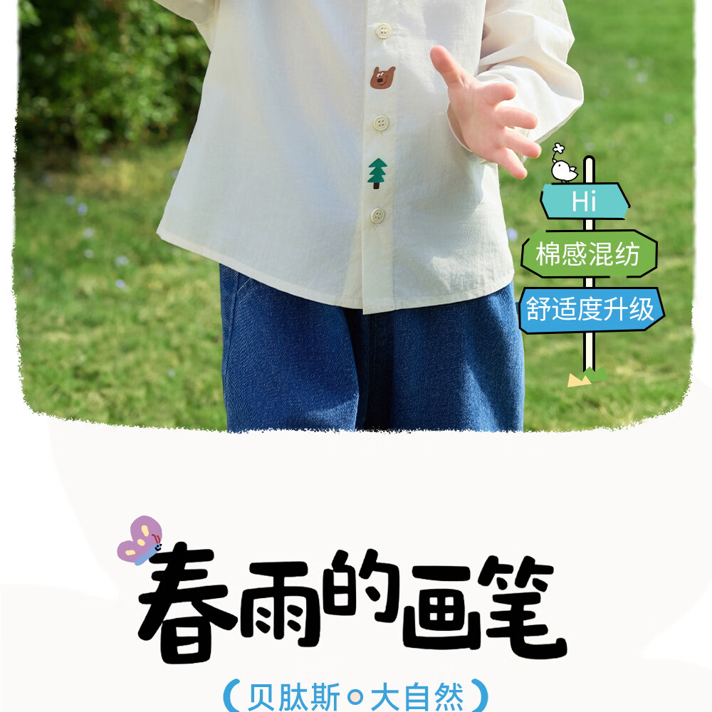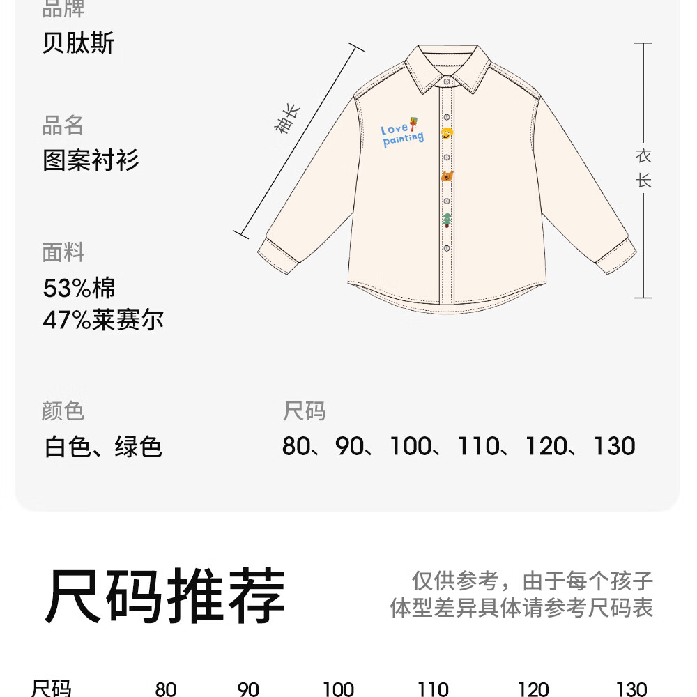 Betis children's shirt boys spring new cotton baby cartoon casual long-sleeved white shirt green 80 cm