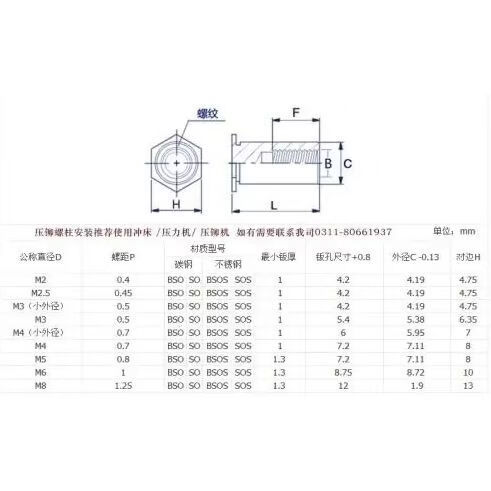 Sailotou national standard pressure riveting stud galvanized through hole pressure riveting nut column SOM6 opening 875 sheet metal standard hexagonal stud SO-M6-41000