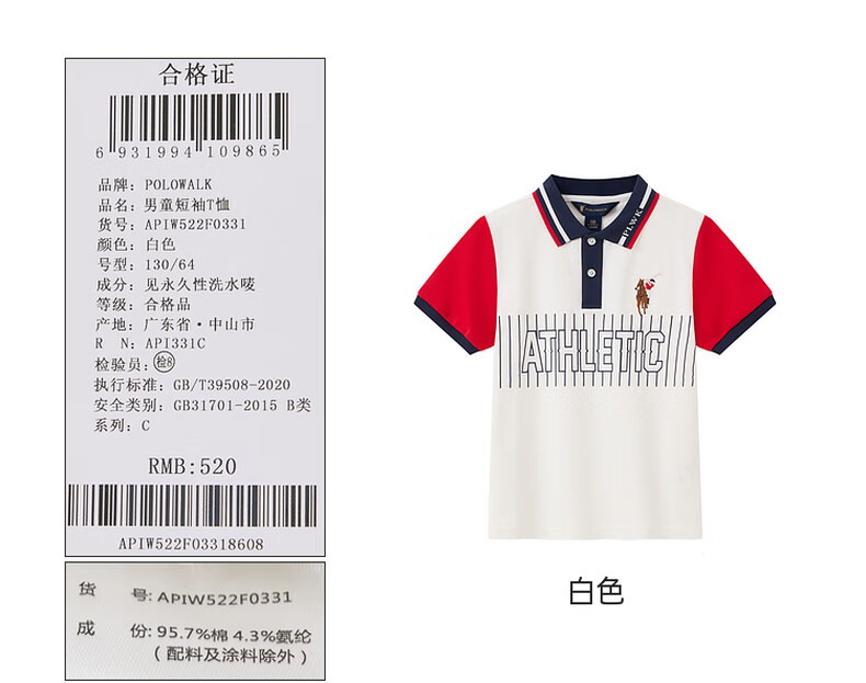 POLOWALK children's clothing 2026 summer new style boys' short-sleeved T-shirt POLO shirt cotton summer children's top APIW522F0331 white 110