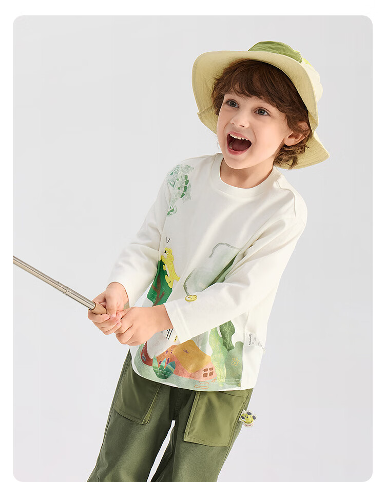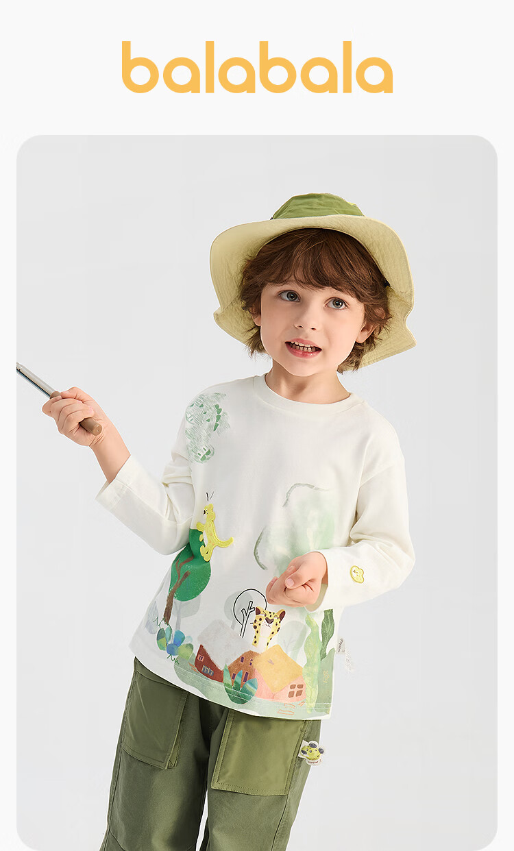 BALABALA Shopping mall same style BALABALA children's long-sleeved T-shirt boys 2026 new spring artistic top ice blue A81530 80