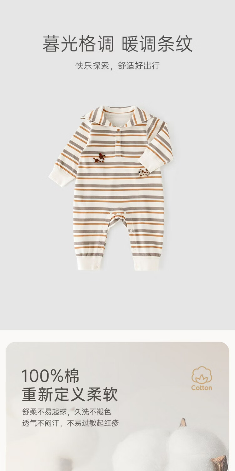 Cotton cotton long-sleeved jumpsuit for boys and girls, spring and autumn baby outings, pure cotton lapel striped jumpsuit, spring clothing, fluorescent green, twilight style 73cm