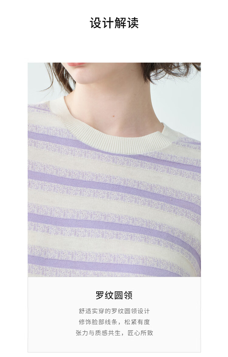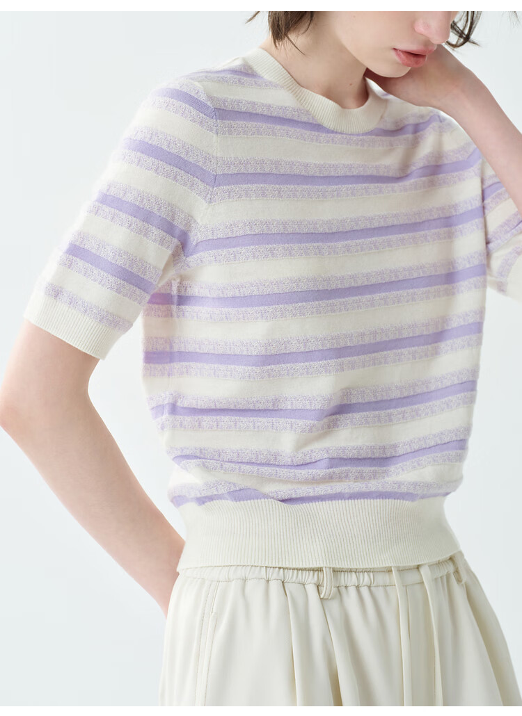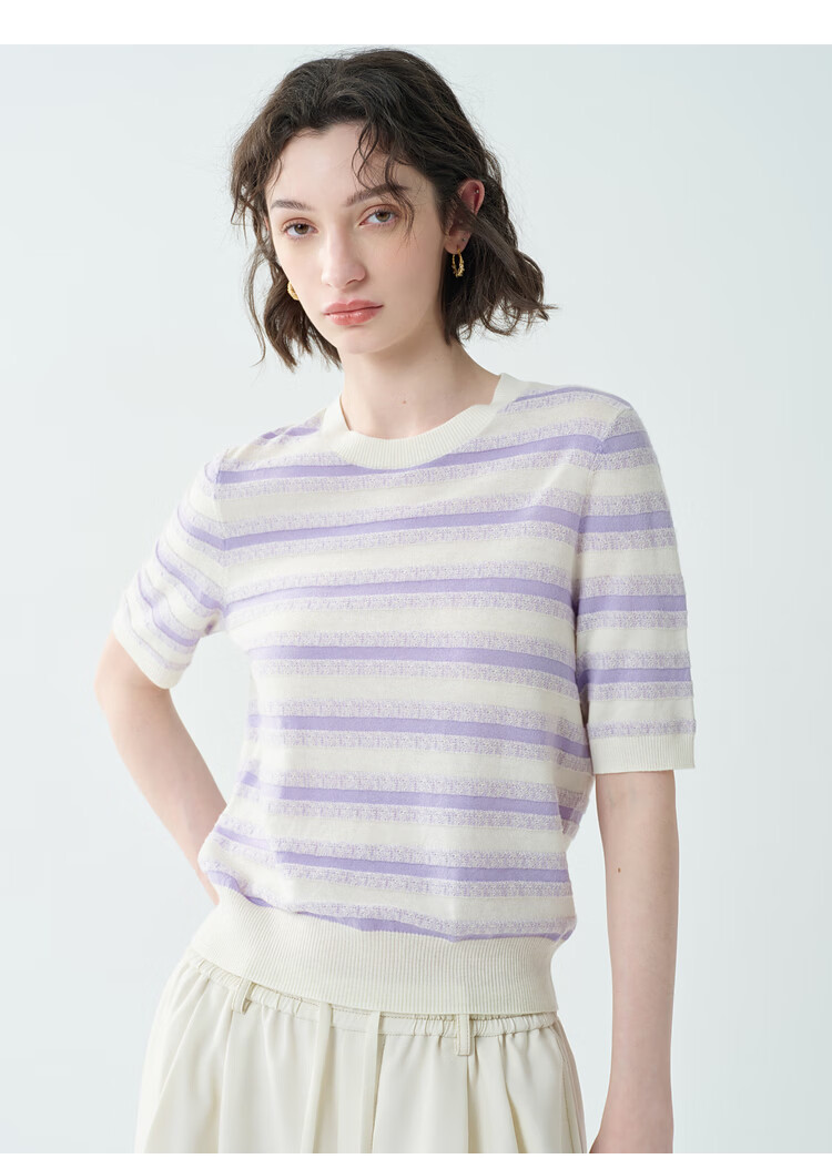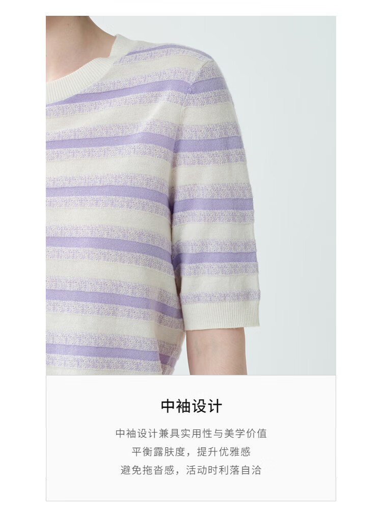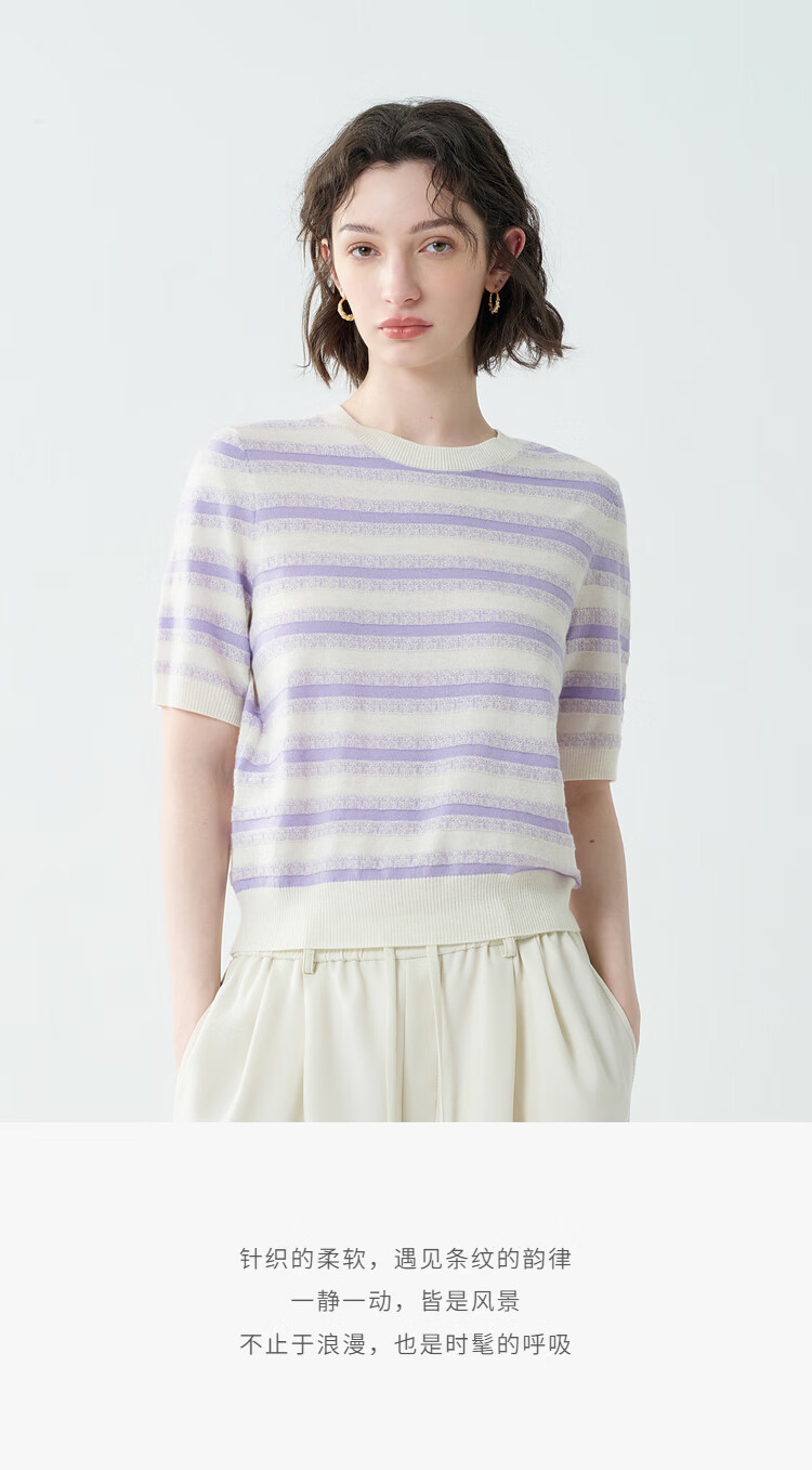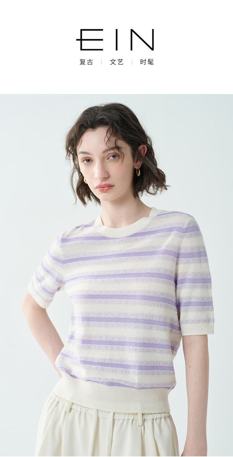 EIN Twilight Stripes EIN Yan Literary Round Neck Twilight Vine Purple Mid-Sleeve Sweater Top 2026 Early Spring New Style Light Purple S