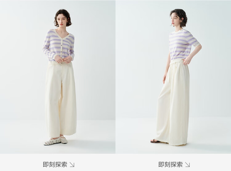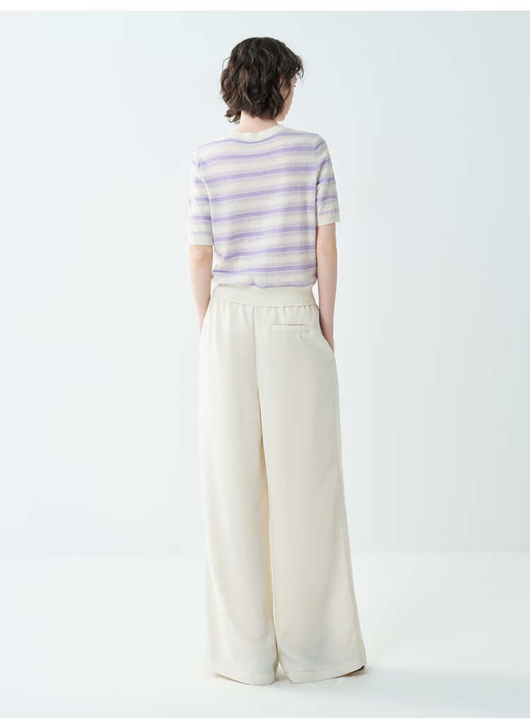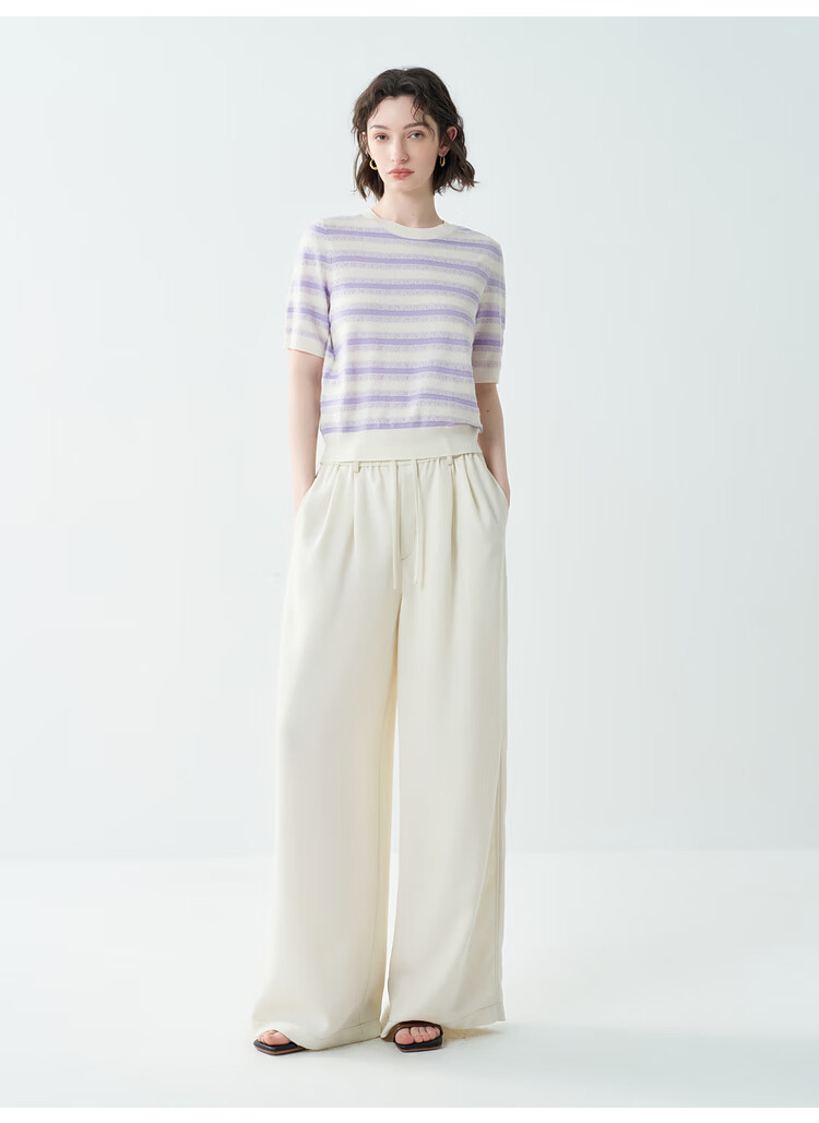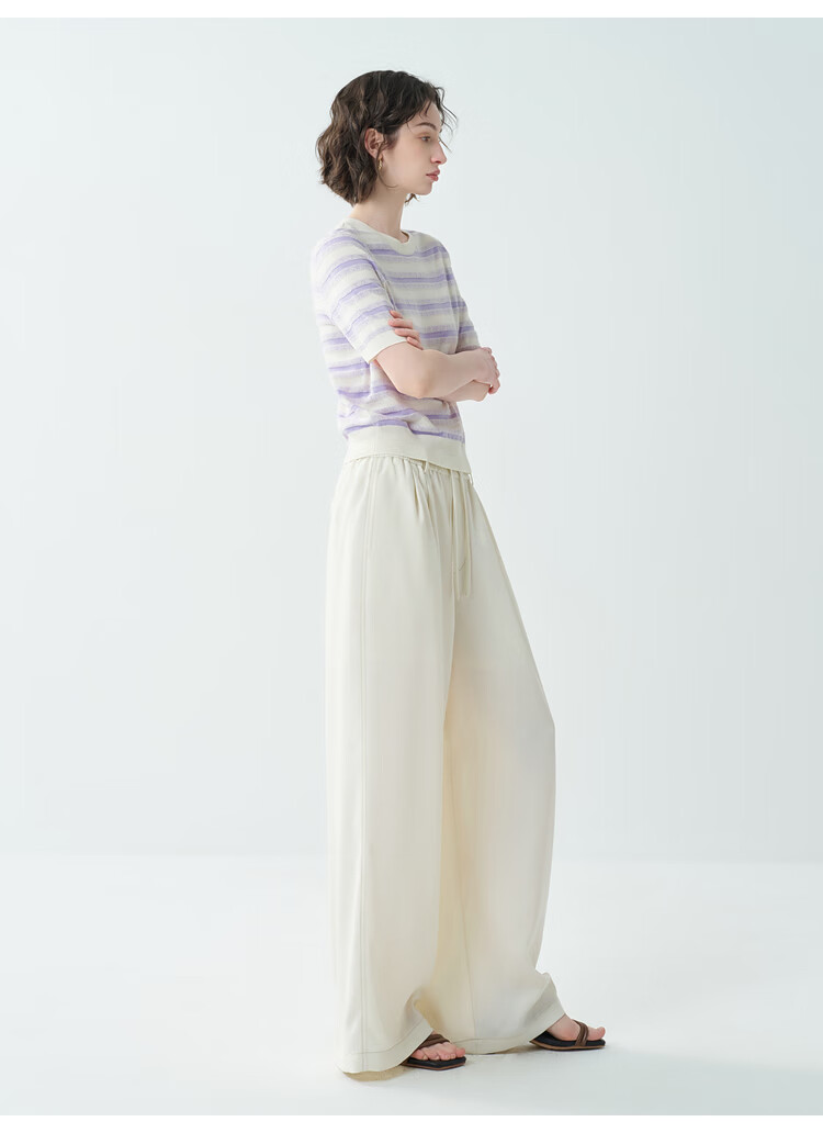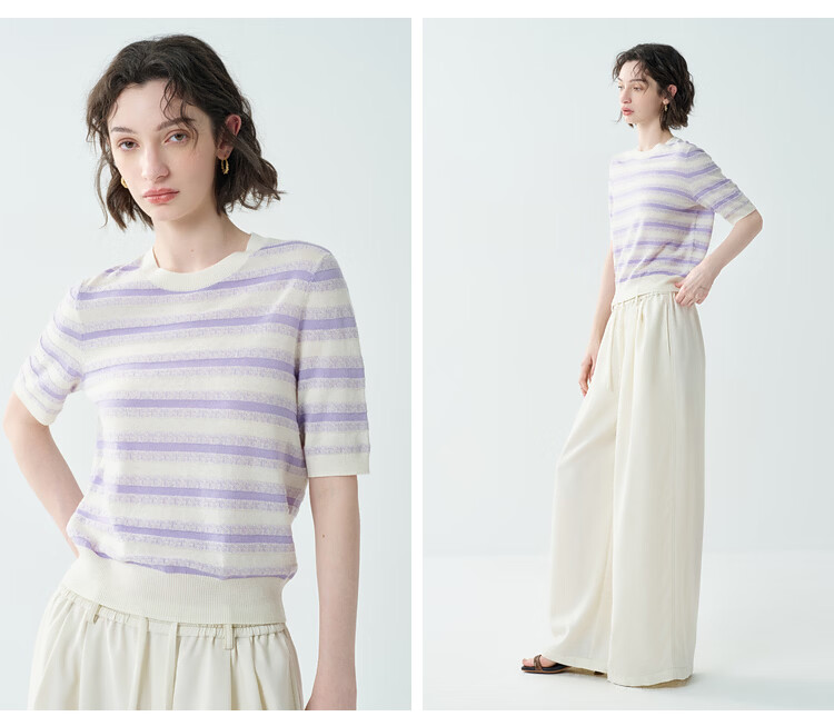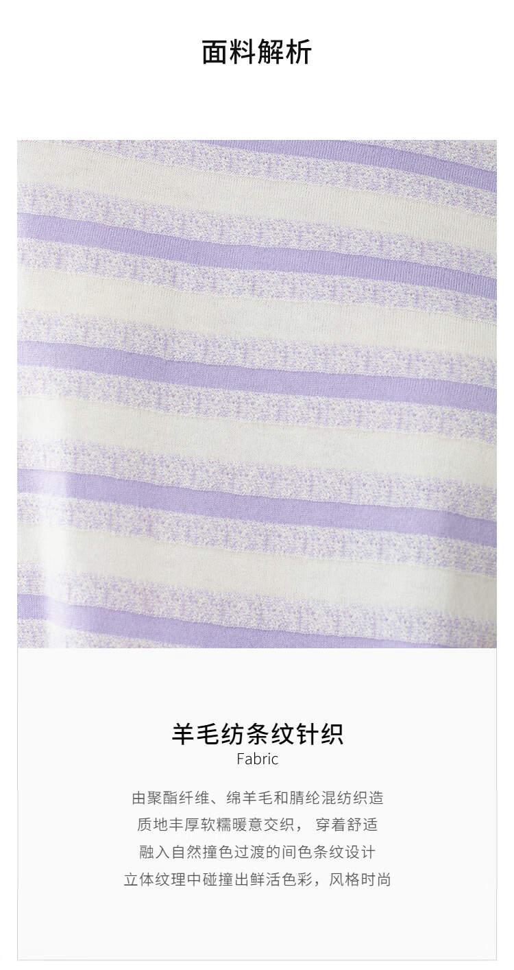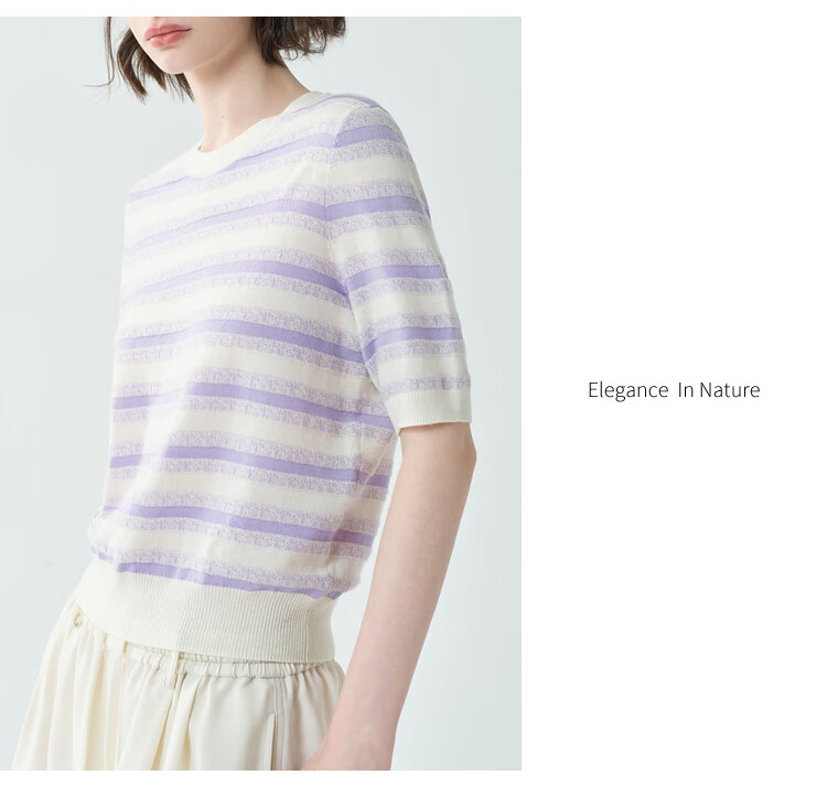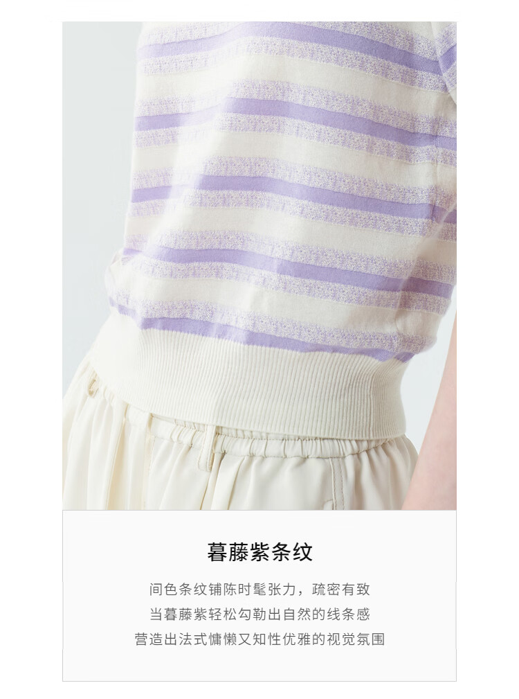 EIN Twilight Stripes EIN Yan Literary Round Neck Twilight Vine Purple Mid-Sleeve Sweater Top 2026 Early Spring New Style Light Purple S