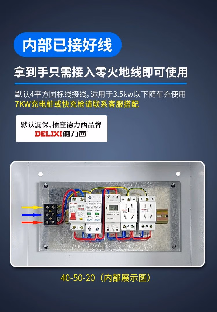 New energy charging box finished charging pile distribution box protection box outdoor outdoor electric vehicle car socket box double layer 0-40 + leakage protection + meter + 16A Customized contact customer service