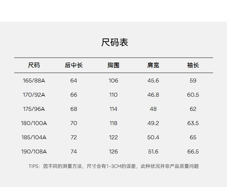 China (cm) 160-165/84-86 165-170 / 88-90 167-172 / 92-96 168-173 / 98-102 170-176 / 106-110