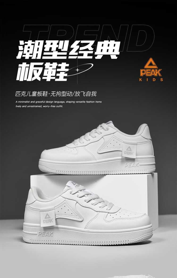 Peak Children's Shoes Girls' Shoes Student Classic Versatile White Shoes 2026 Spring New Boys Casual Sports Shoes White 35