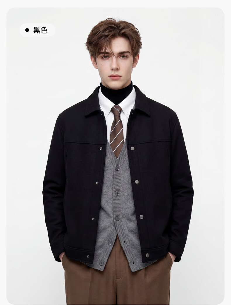 Sundesi White Duck Down & Sheep Wool 25 Winter Men's New Down Jacket Lapel Fashion Jacket Black M 170/88A