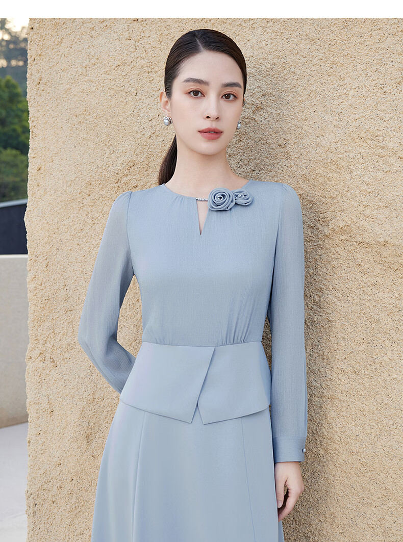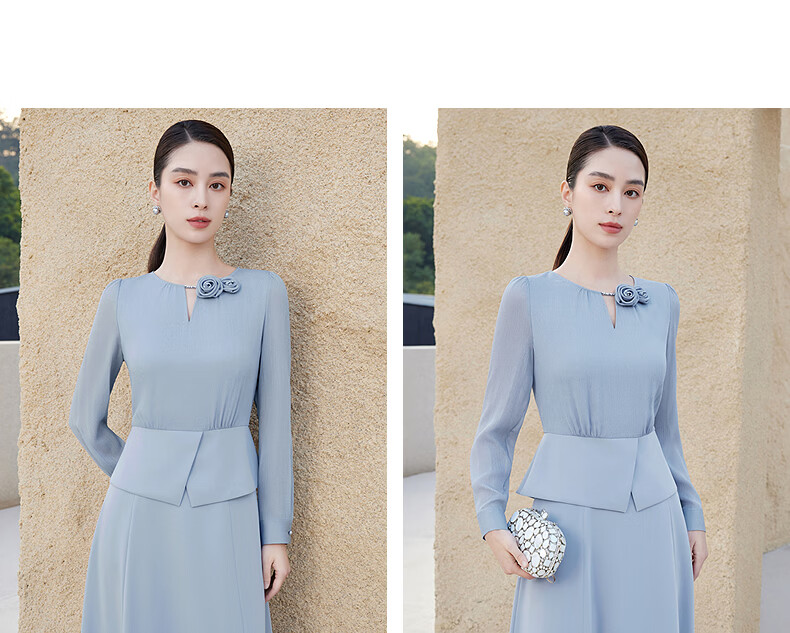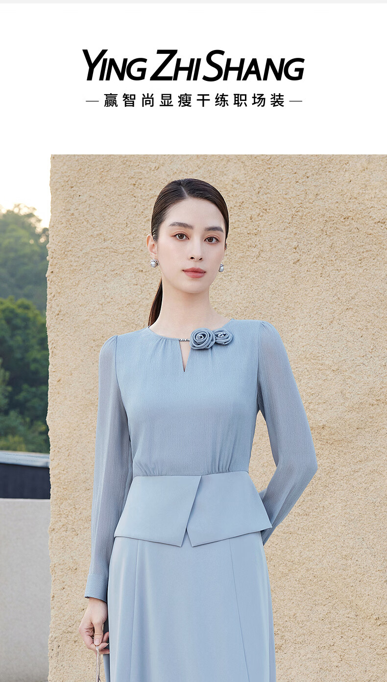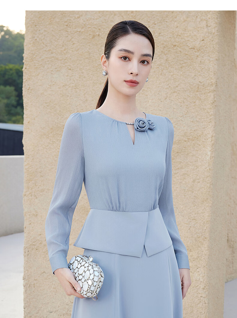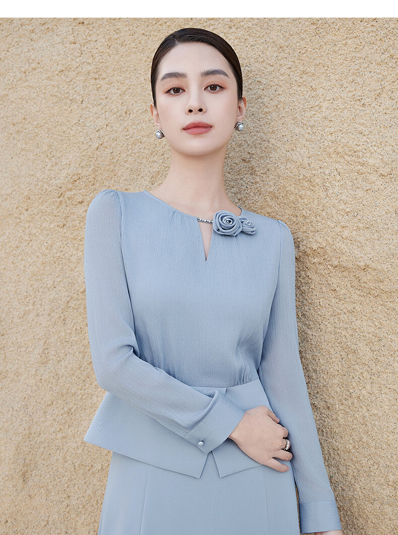 Yingzhishang's unique and beautiful new spring shirt for women 2026 new style super hot age-reducing design long-sleeved top haze blue S