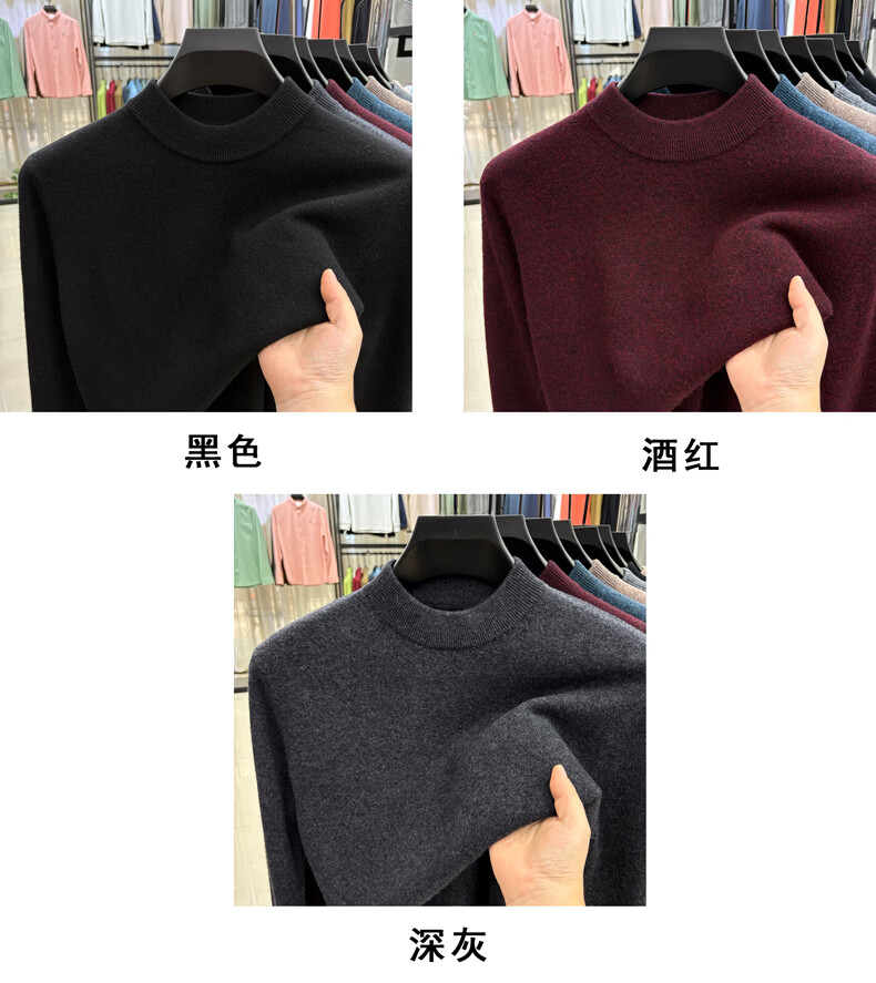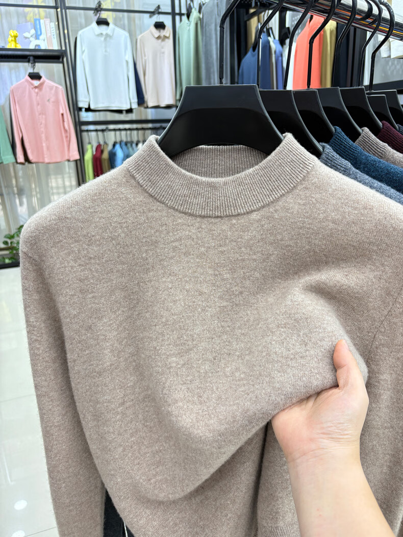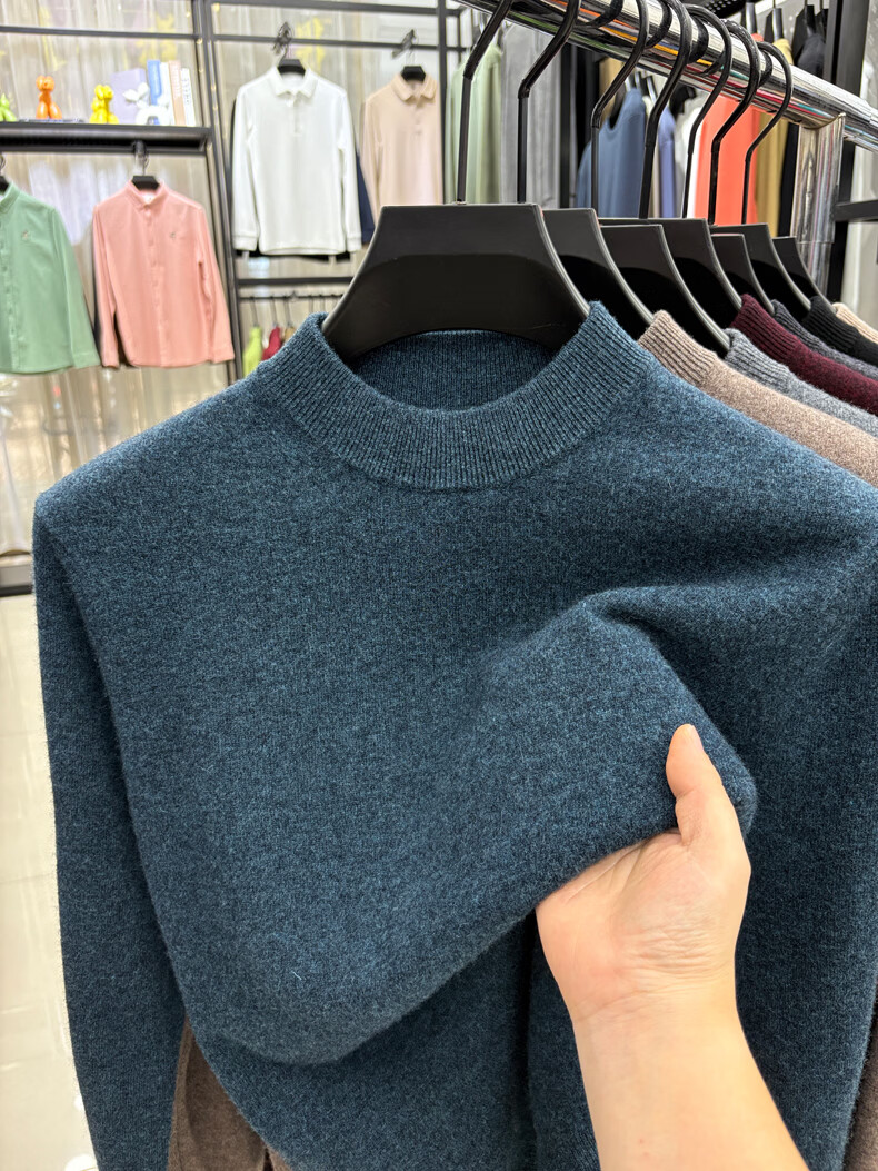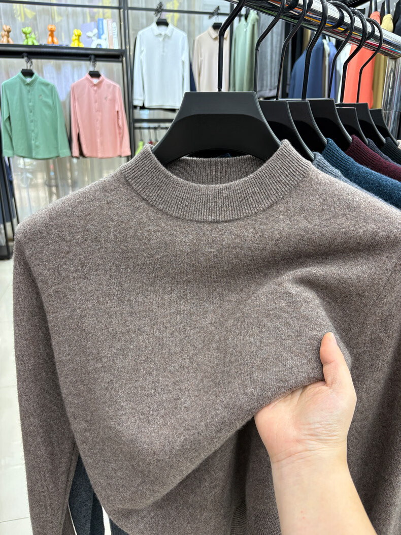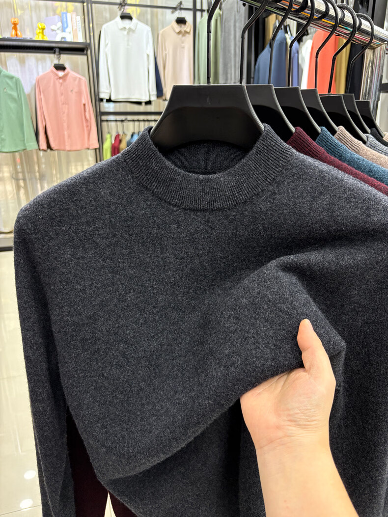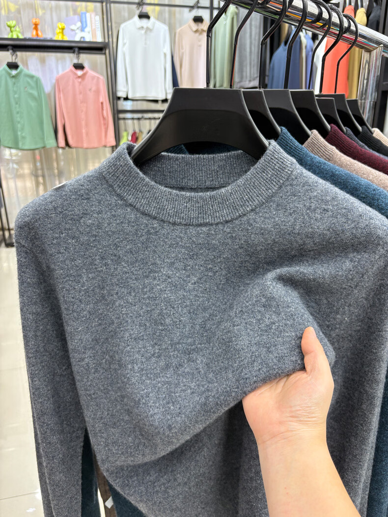 ROMON 100% wool pure wool sweater for men 2025 autumn and winter new warm men's knitted sweater men's sweater medium gray 2XL 180 (recommended weight 145-160Jin Jin equals 0.5 kg)