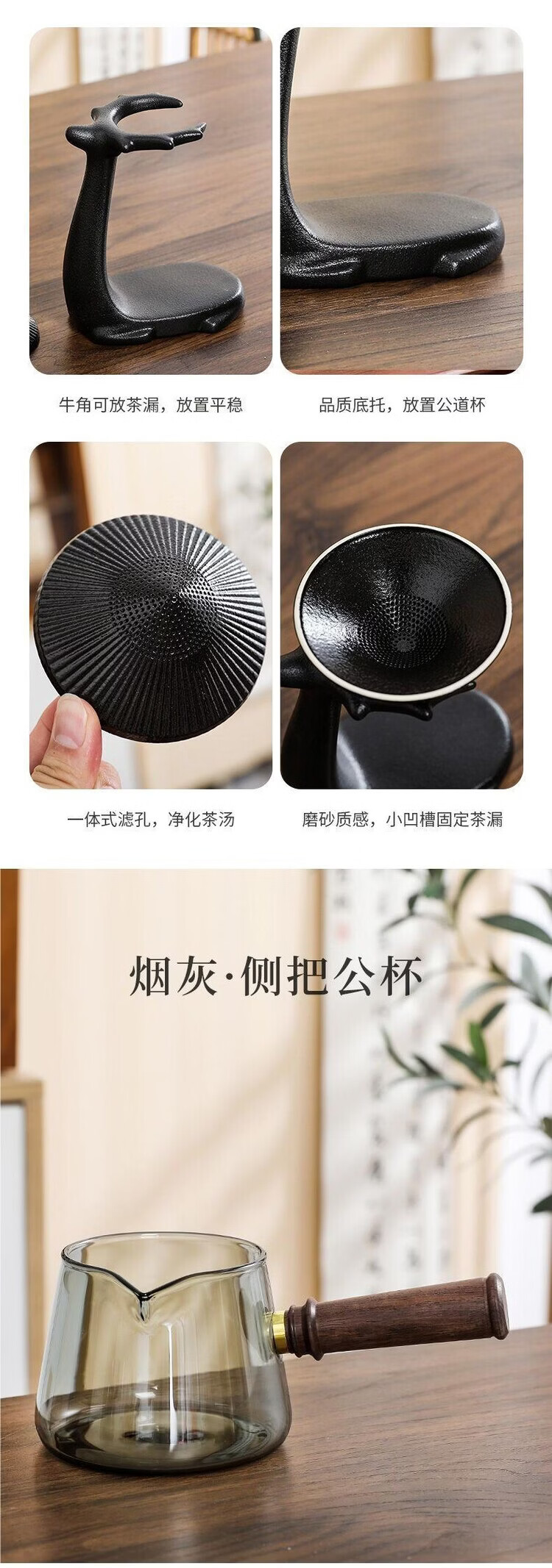 Miaopule lazy tea filter rack tea strainer tea making artifact ceramic one-piece glass tea splitting fair cup tea tea filter 01 all the way to fortune base + A21 fair cup