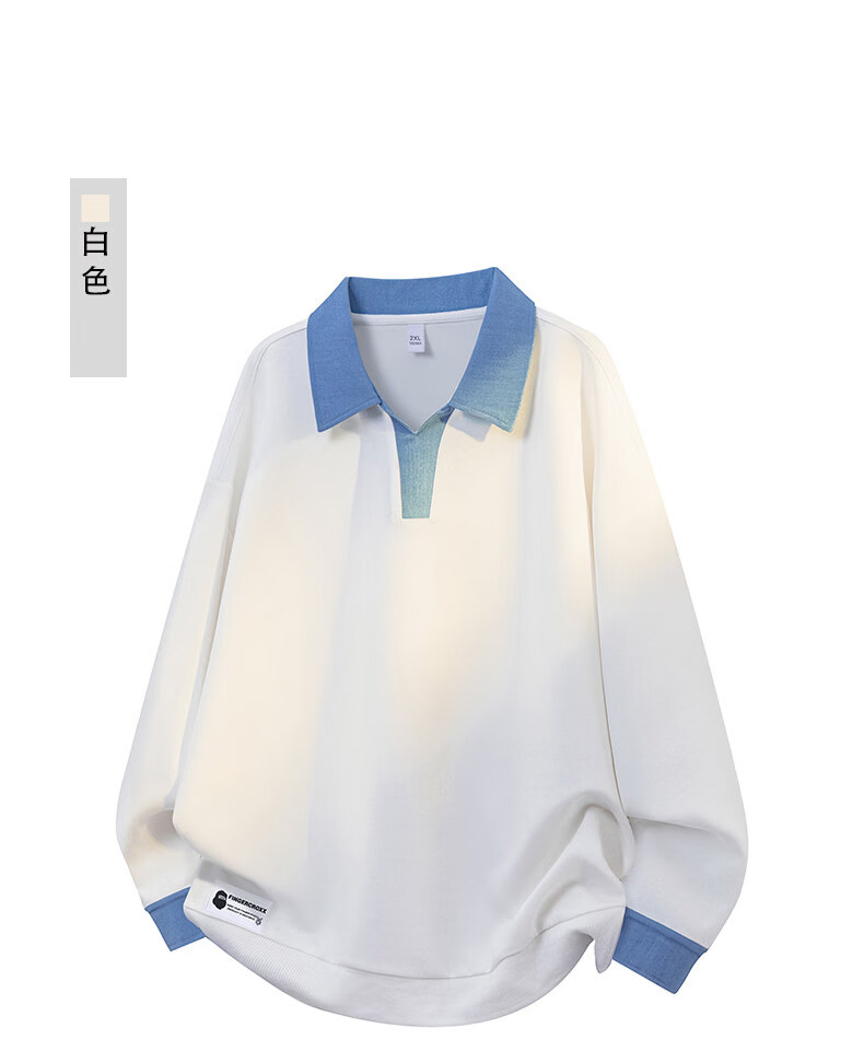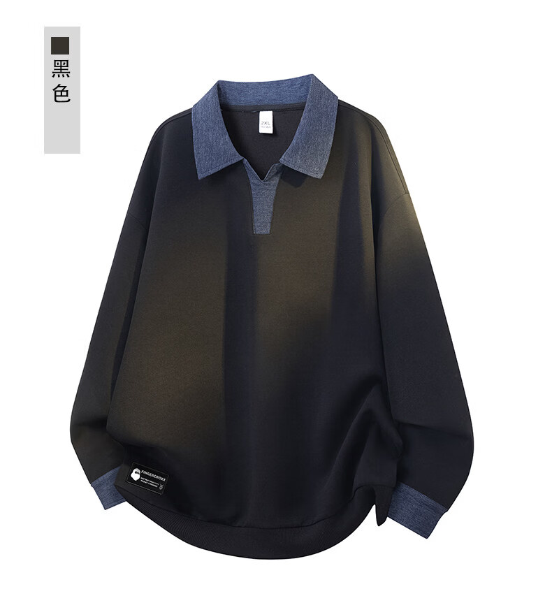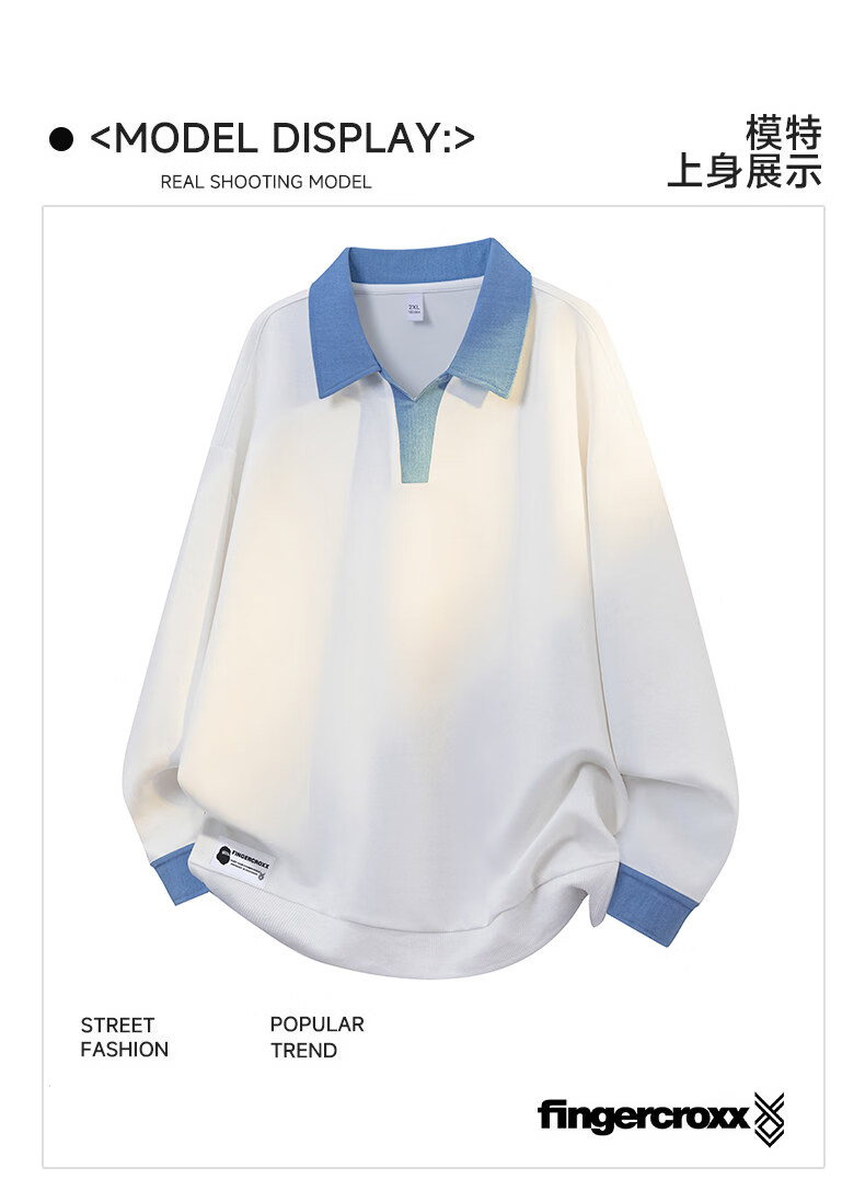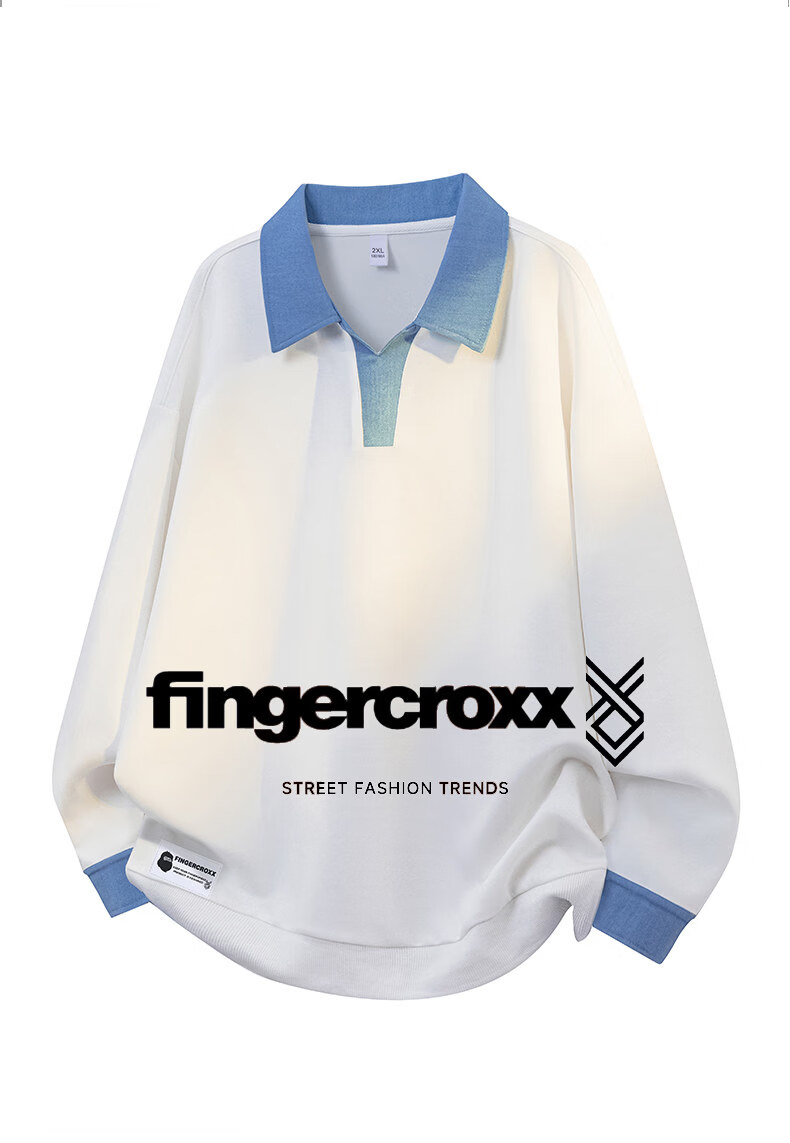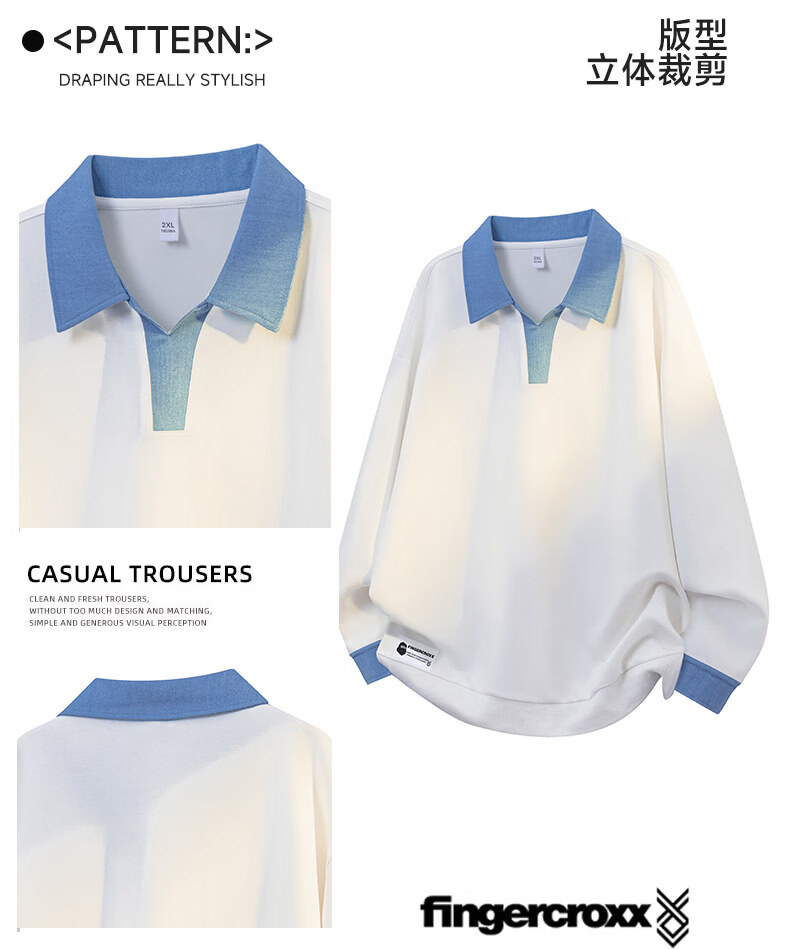 Fingercroxx it trendy brand color-blocked sweatshirt for men in spring loose and versatile long-sleeved lapel top American high street fashion polo shirt black counter same style 4XL 200-220Jin Jin equals 0.5 kg