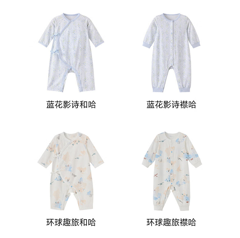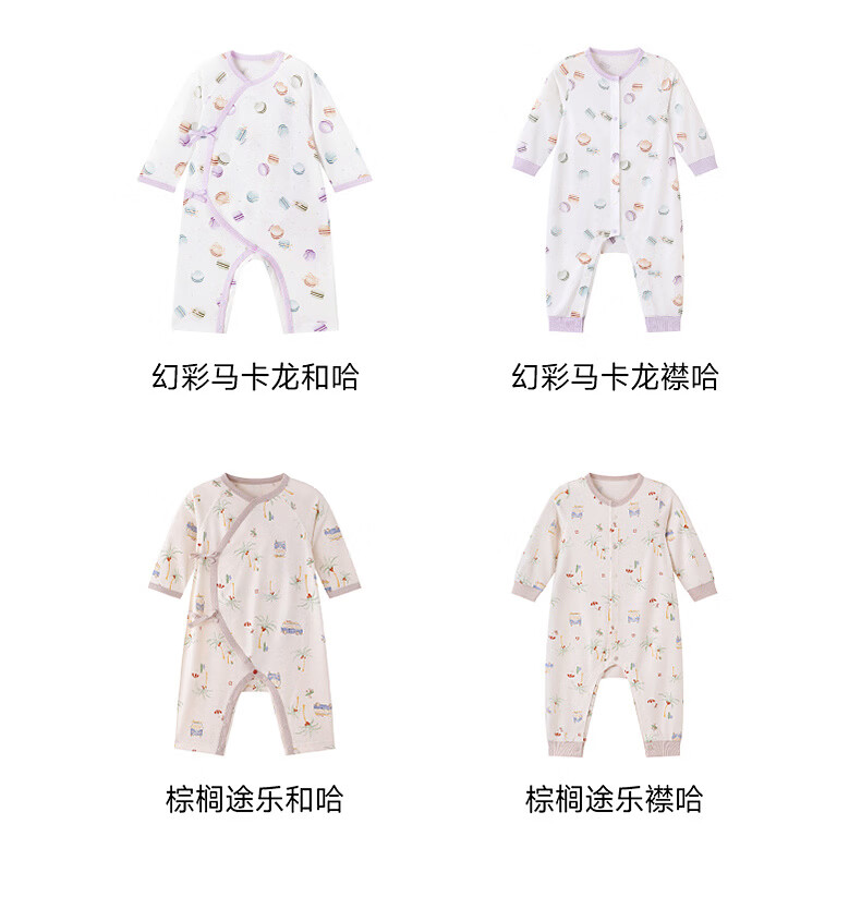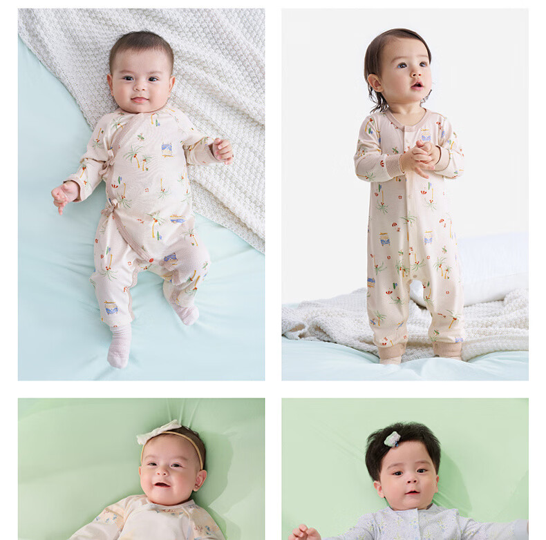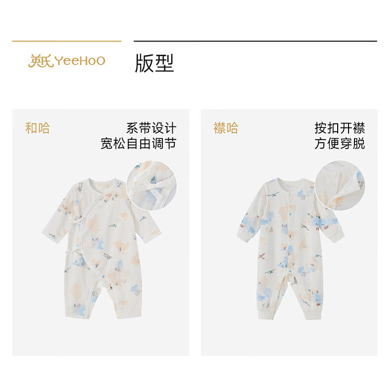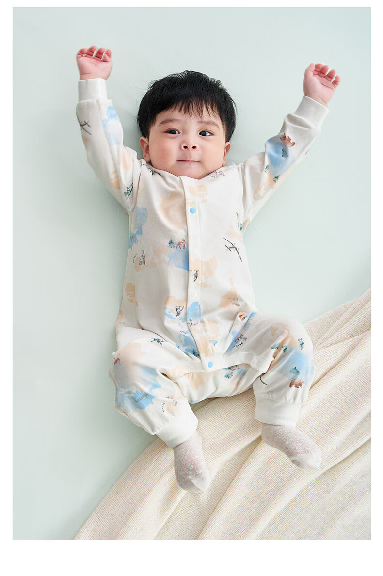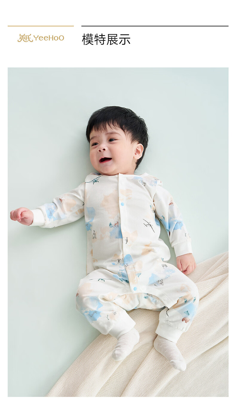 YEEHOO baby home clothes for girls, modal four-season harem clothes for boys, 10A antibacterial long-sleeved one-piece pajamas, Global Fun Travel and Ha 52cm