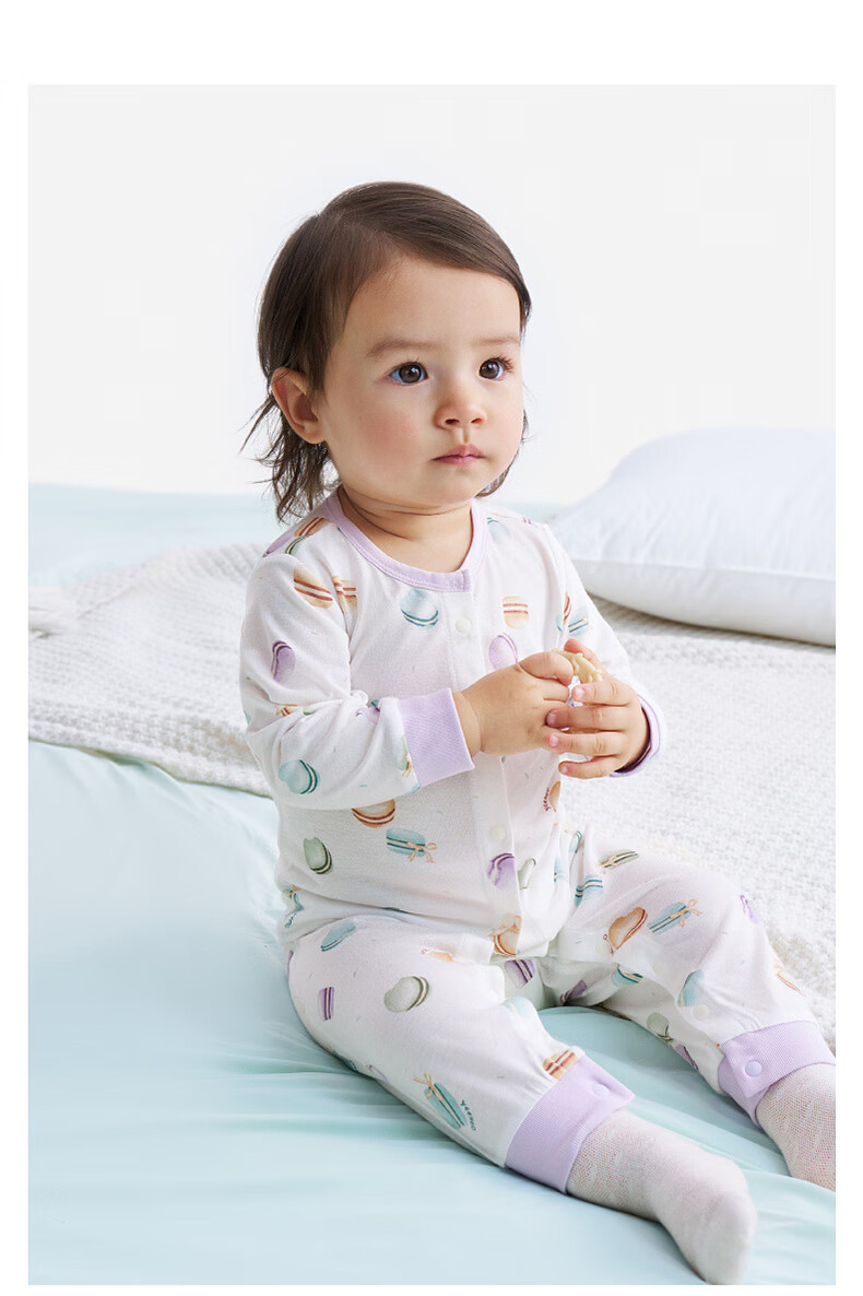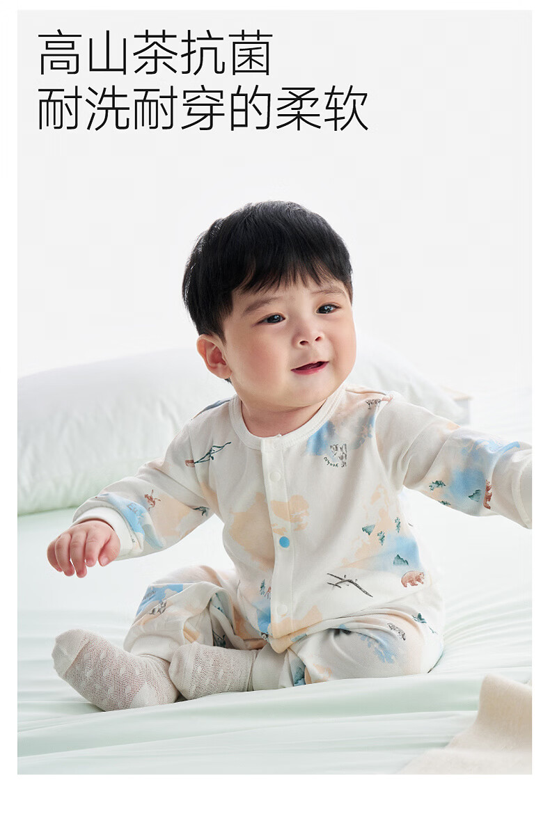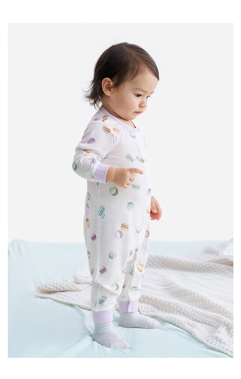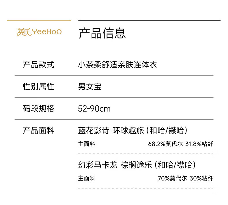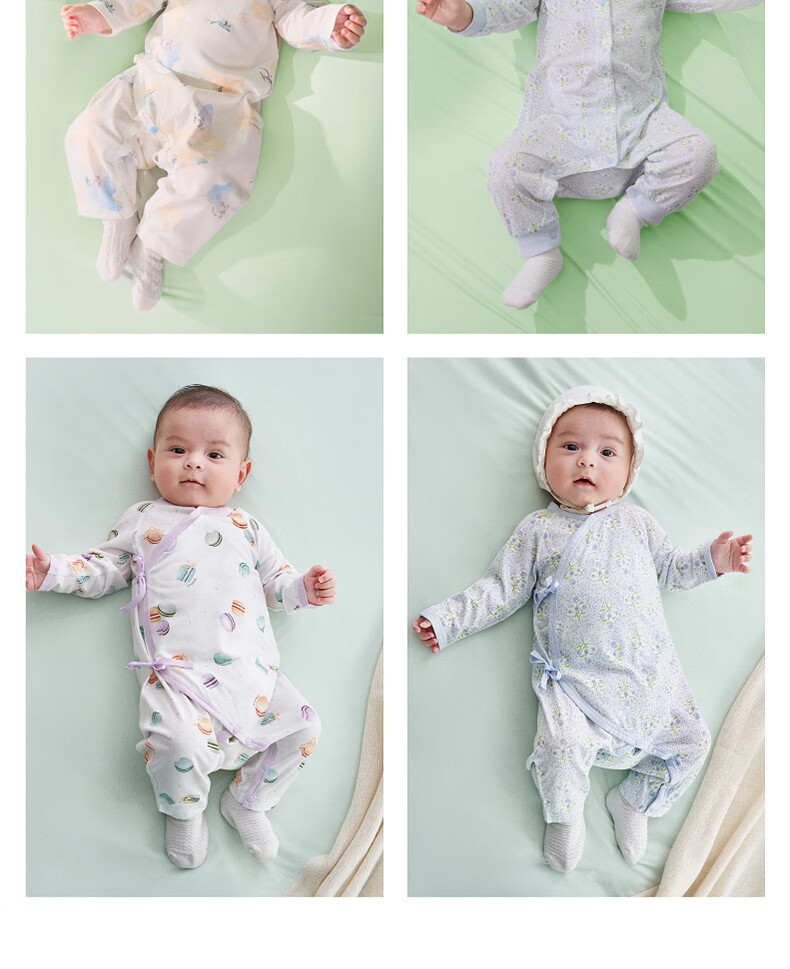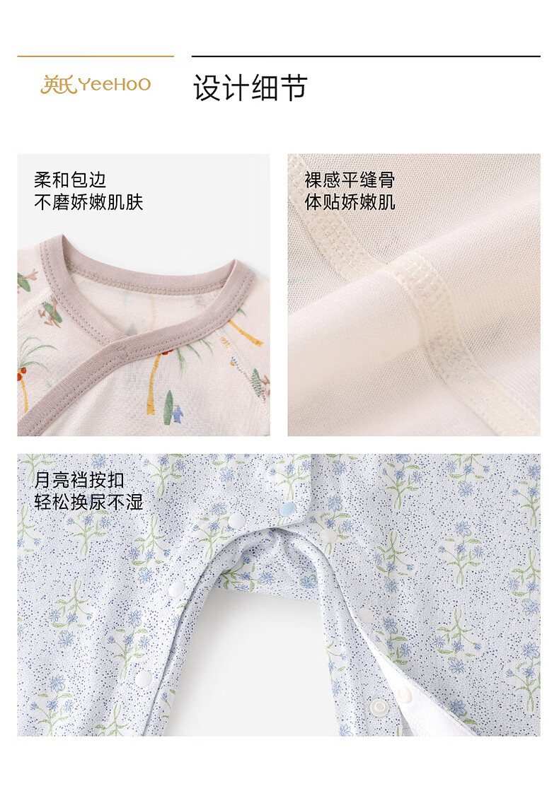 YEEHOO baby home clothes for girls, modal four-season harem clothes for boys, 10A antibacterial long-sleeved one-piece pajamas, Global Fun Travel and Ha 52cm