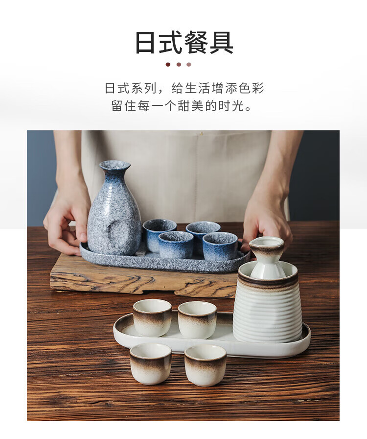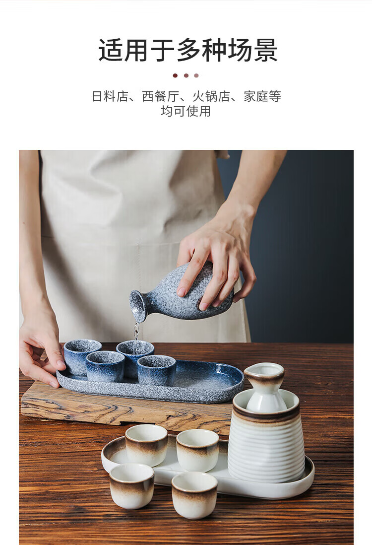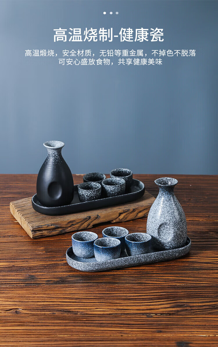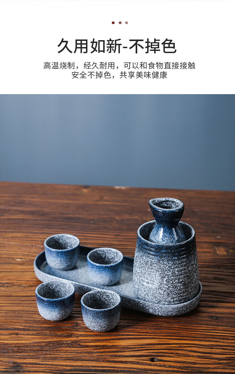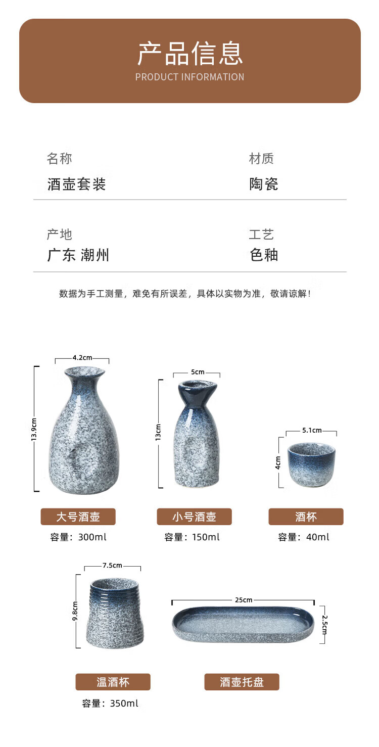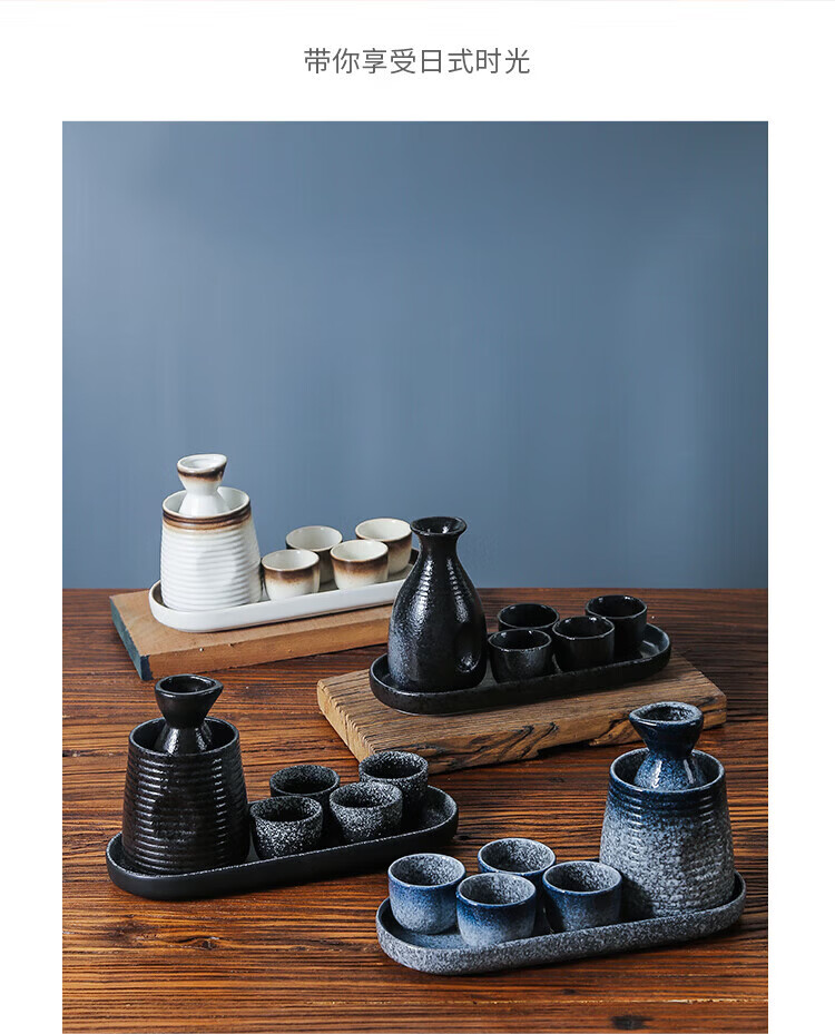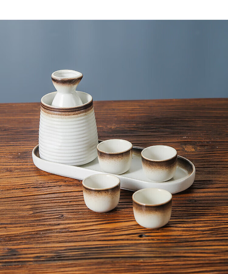 He Jiagong Japanese-style Japanese ceramic sake wine set wine warmer shochu white wine cup yellow wine spirits small wine cup points large wine pot 5-piece set Mocha