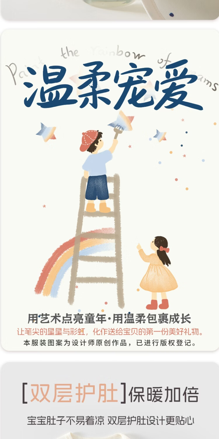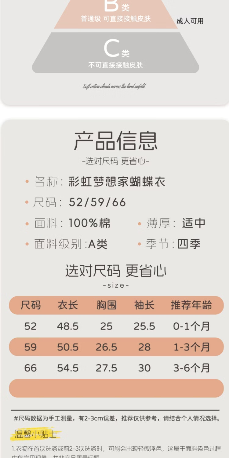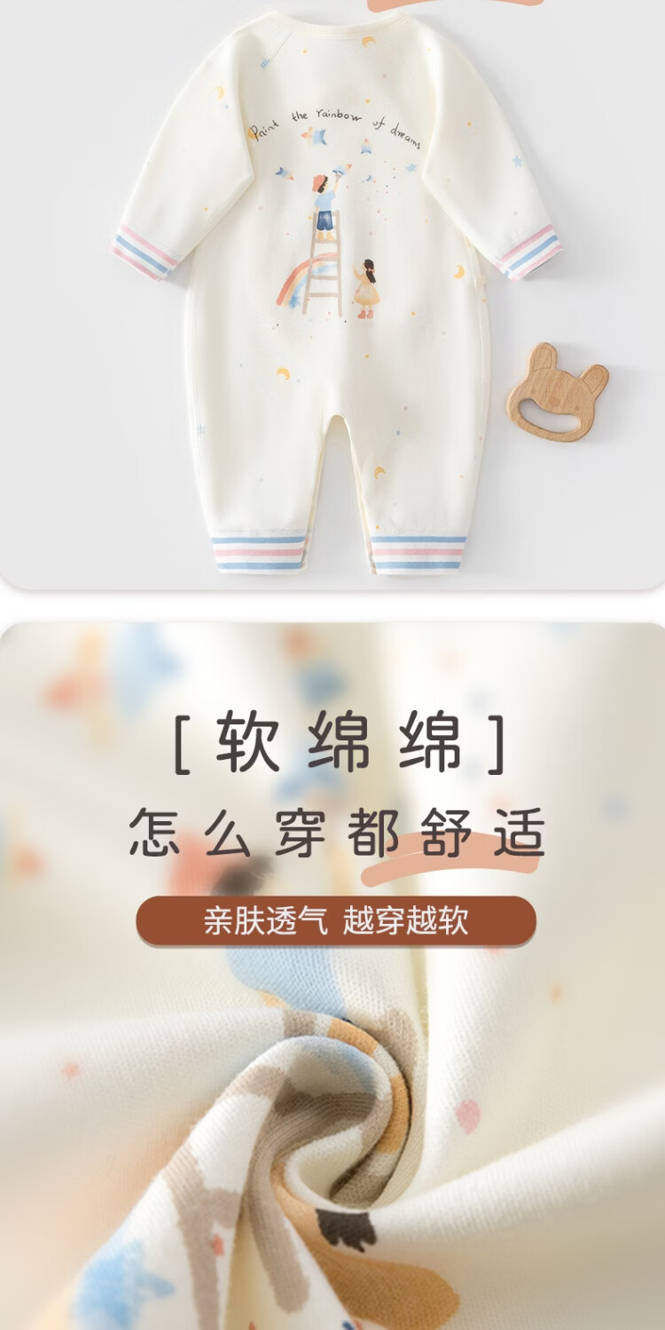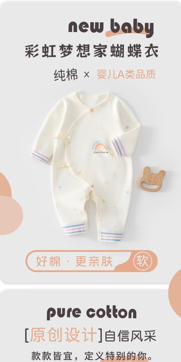 JOYNCLEON baby jumpsuit, winter clothes, newborn baby pajamas, inner layer, pure cotton butterfly jumpsuit, rainbow dreamer blue, 52cm, 0-1 month, recommended weight 2-3.4kg
