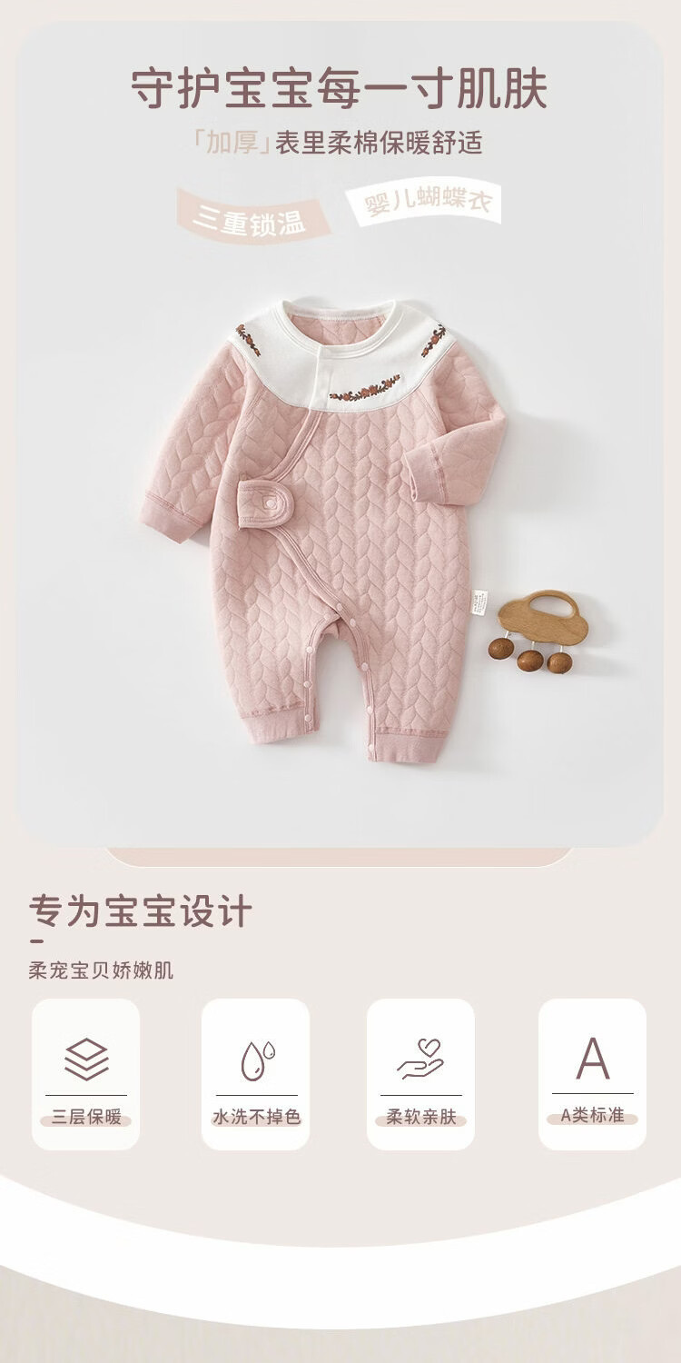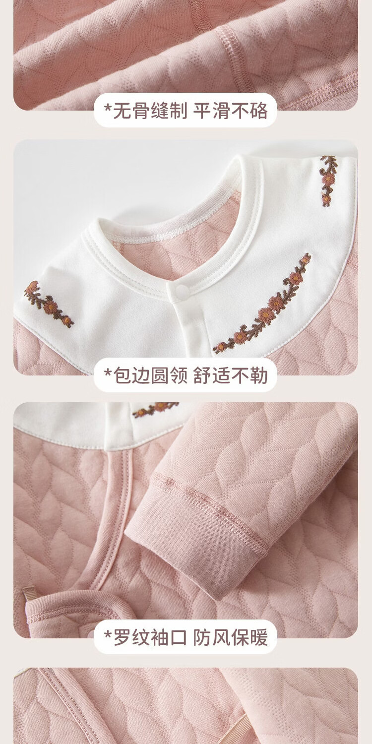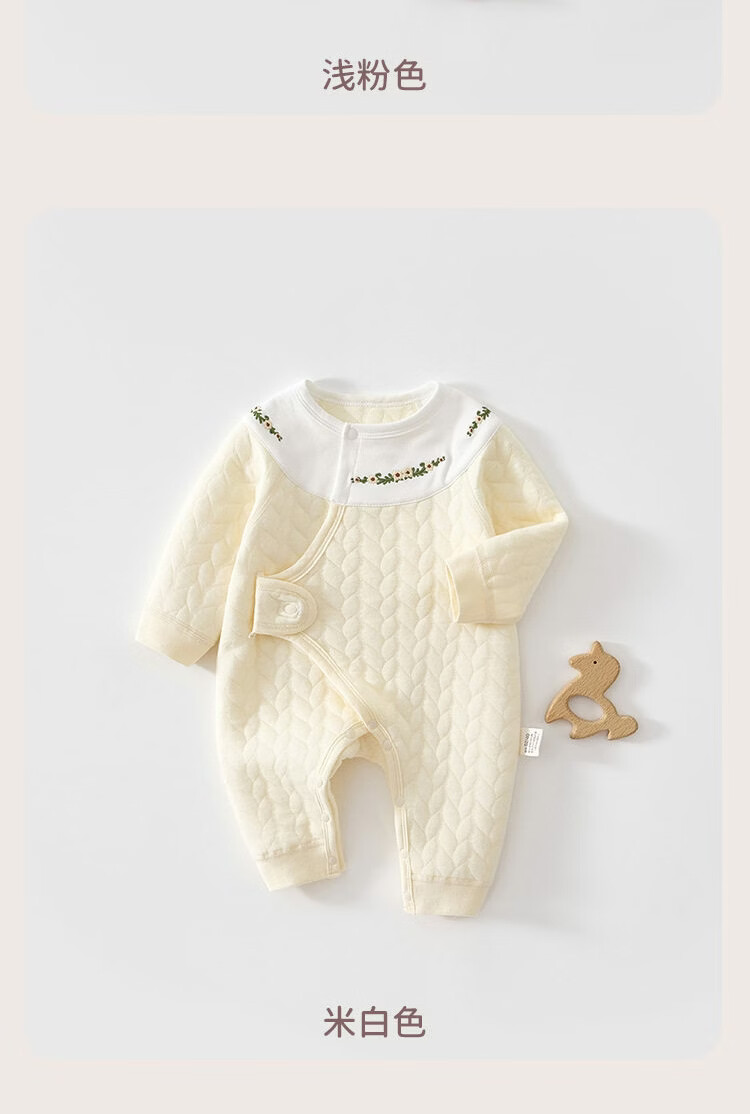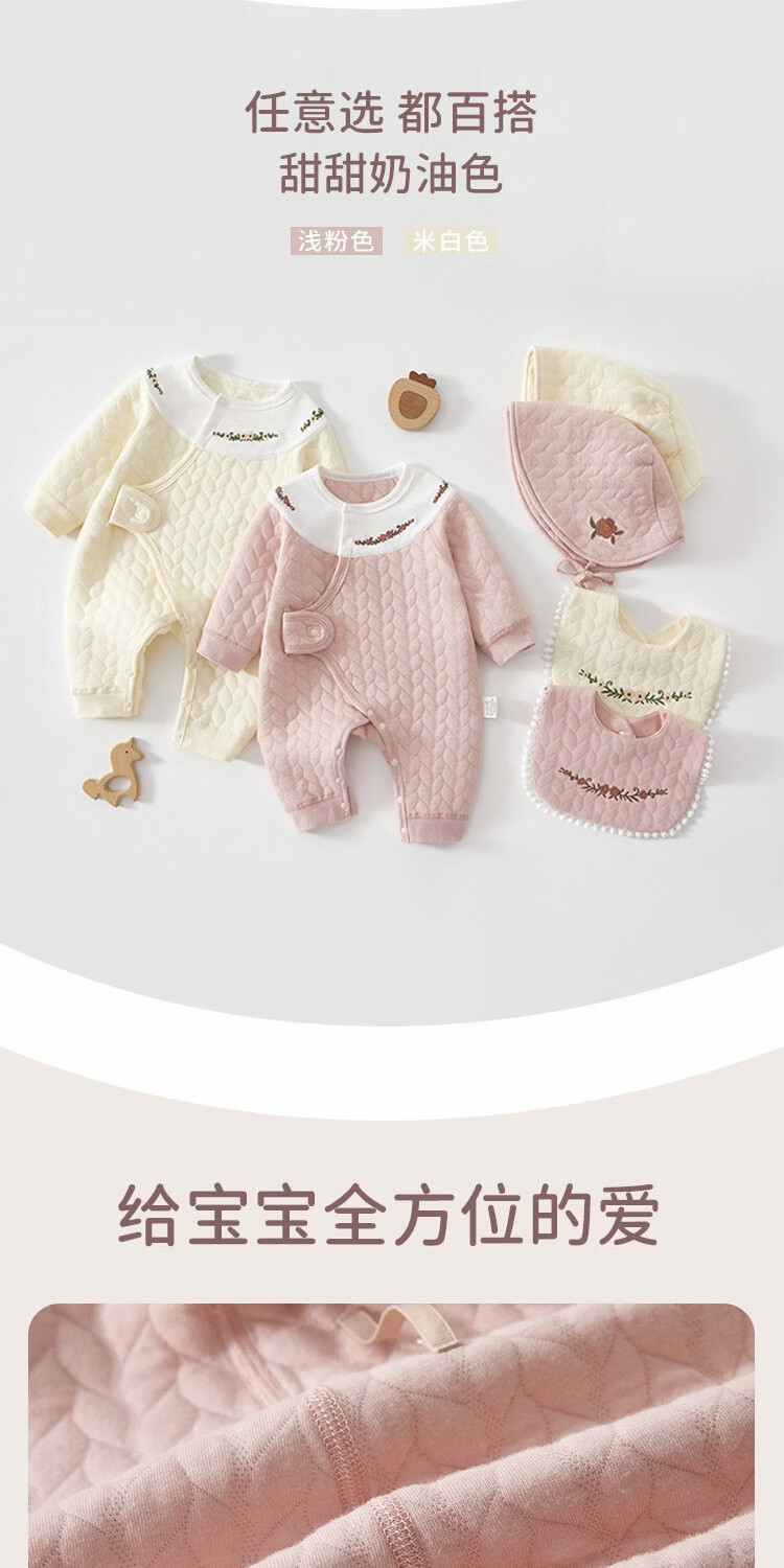 JOYNCLEON baby autumn and winter three-layer warm jumpsuit for men and women, baby clothes, cotton clothespins, outdoor clothing, rompers, off-white, 52cm, 0-1 months, recommended weight 2-3.4kg