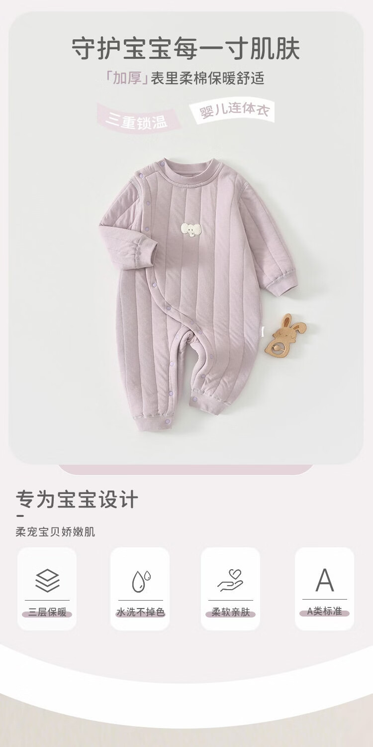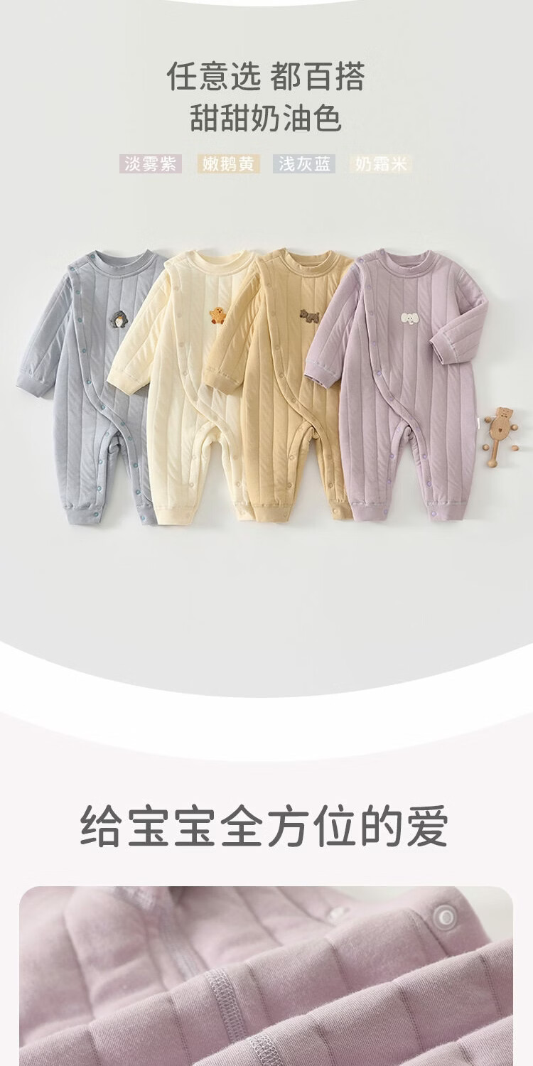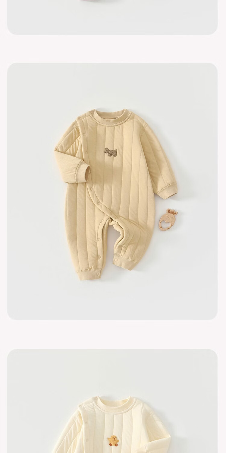 JOYNCLEON baby quilted jumpsuit winter baby clothes quilted thickened warm robe infant crawling clothing winter clothing cream rice 73cm 6-9 months recommended weight 7.2-9kg