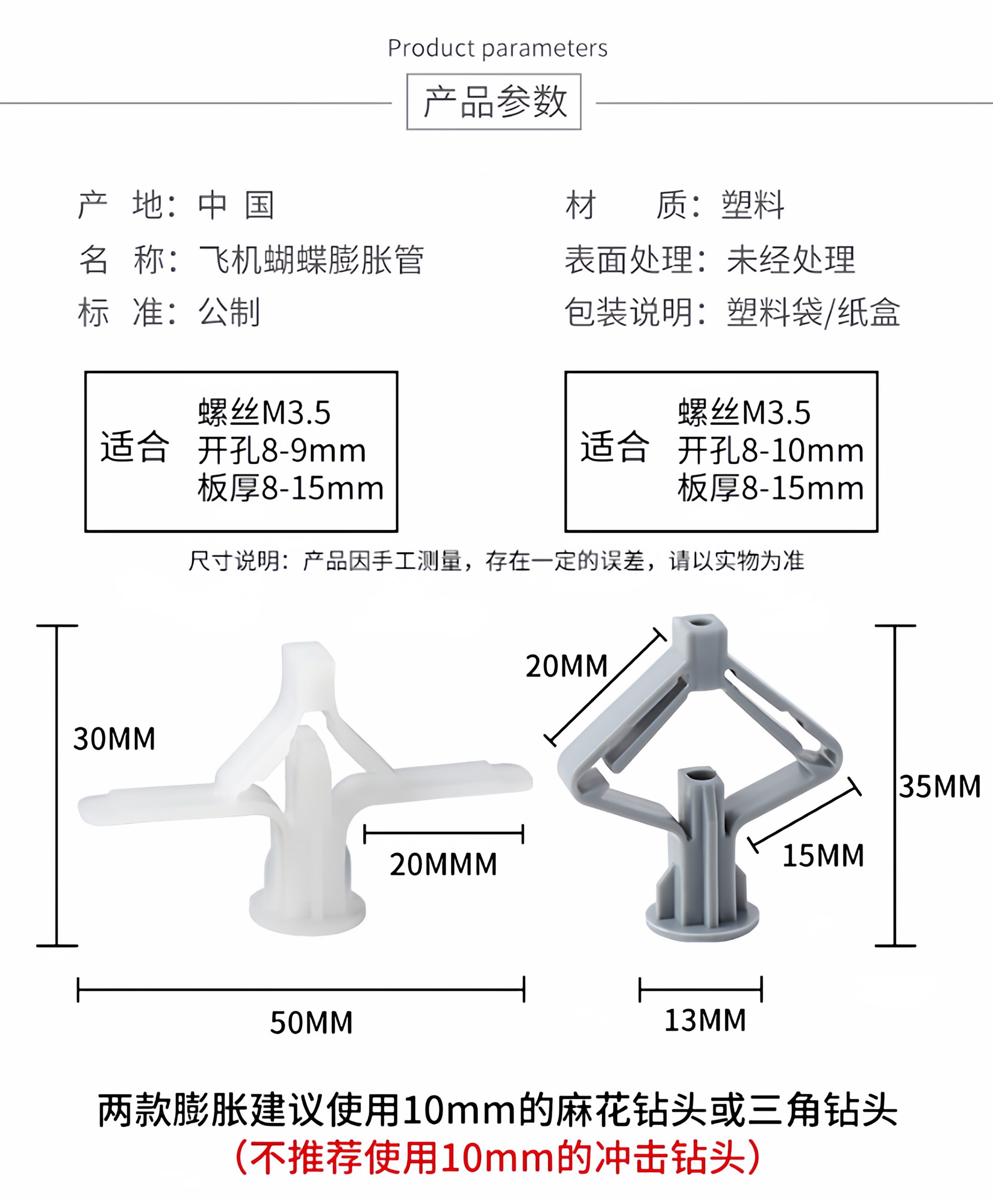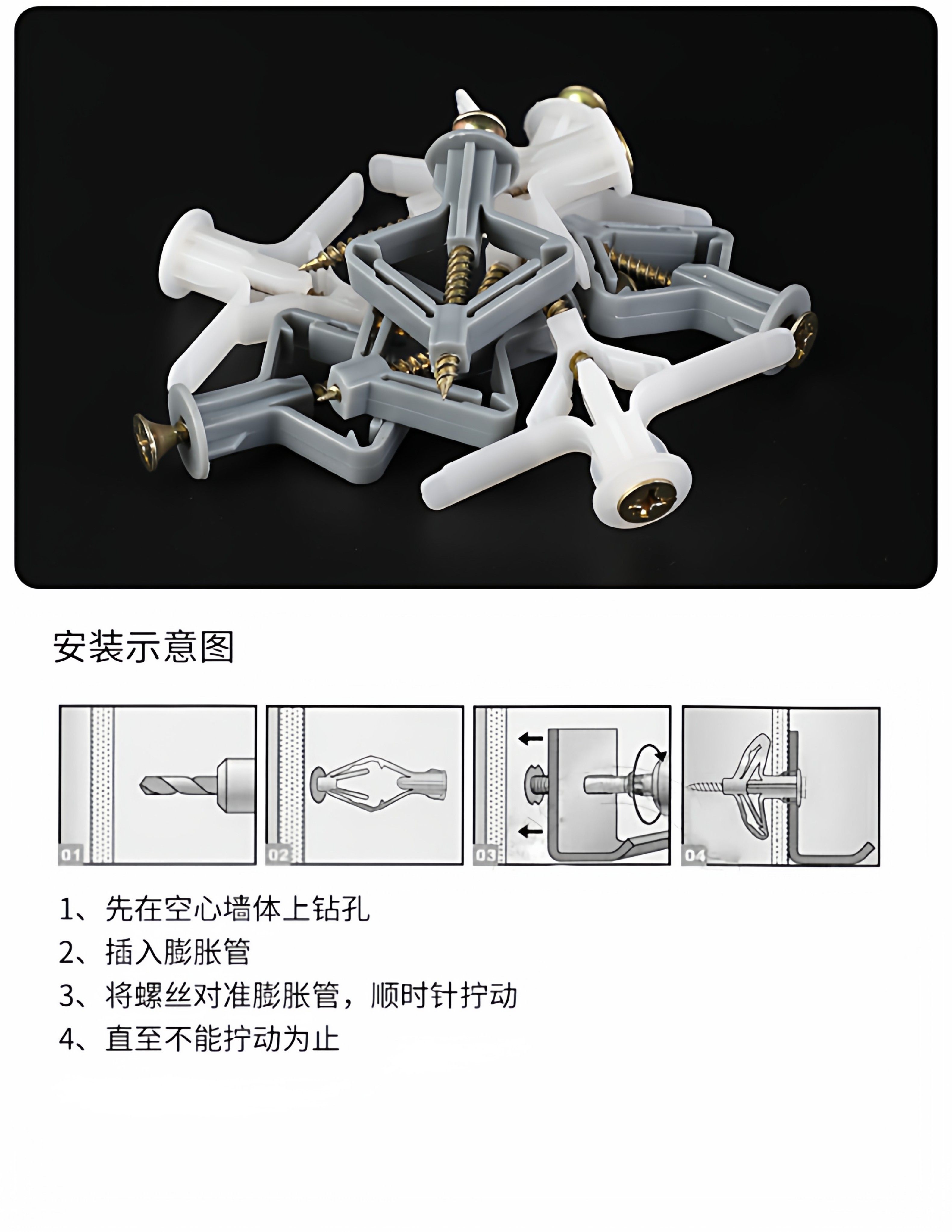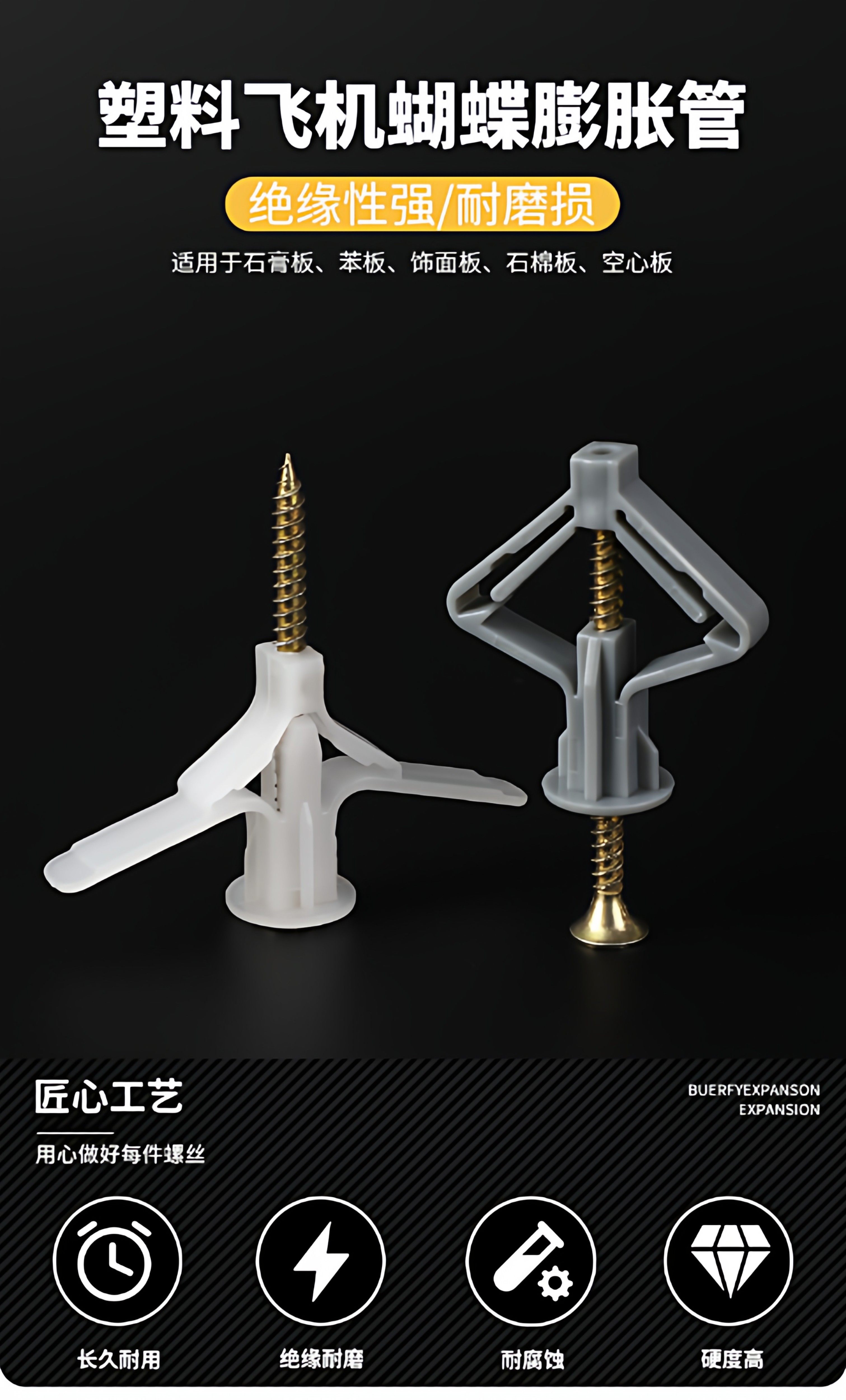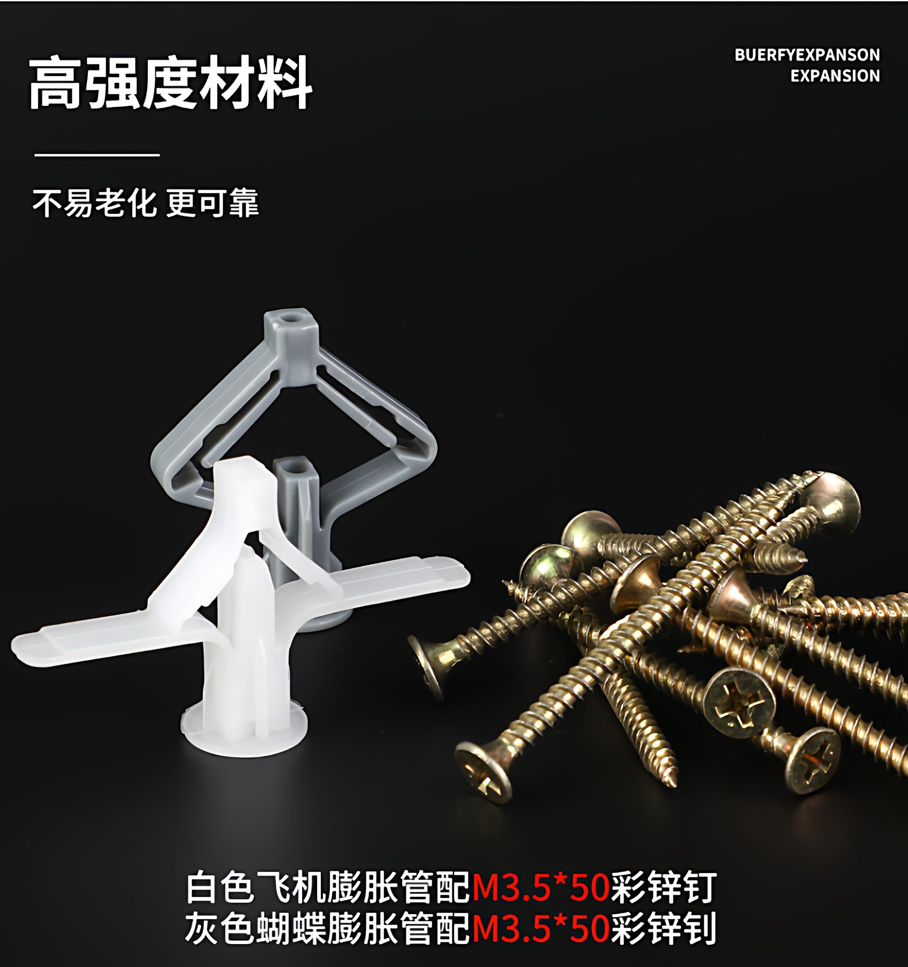 Shouli gypsum board expansion screw aircraft expansion pipe plastic expansion bolt butterfly expansion plug hollow brick self-tapping rubber plug expansion nail butterfly expansion pipe + iron galvanized self-tapping nail 100 sets