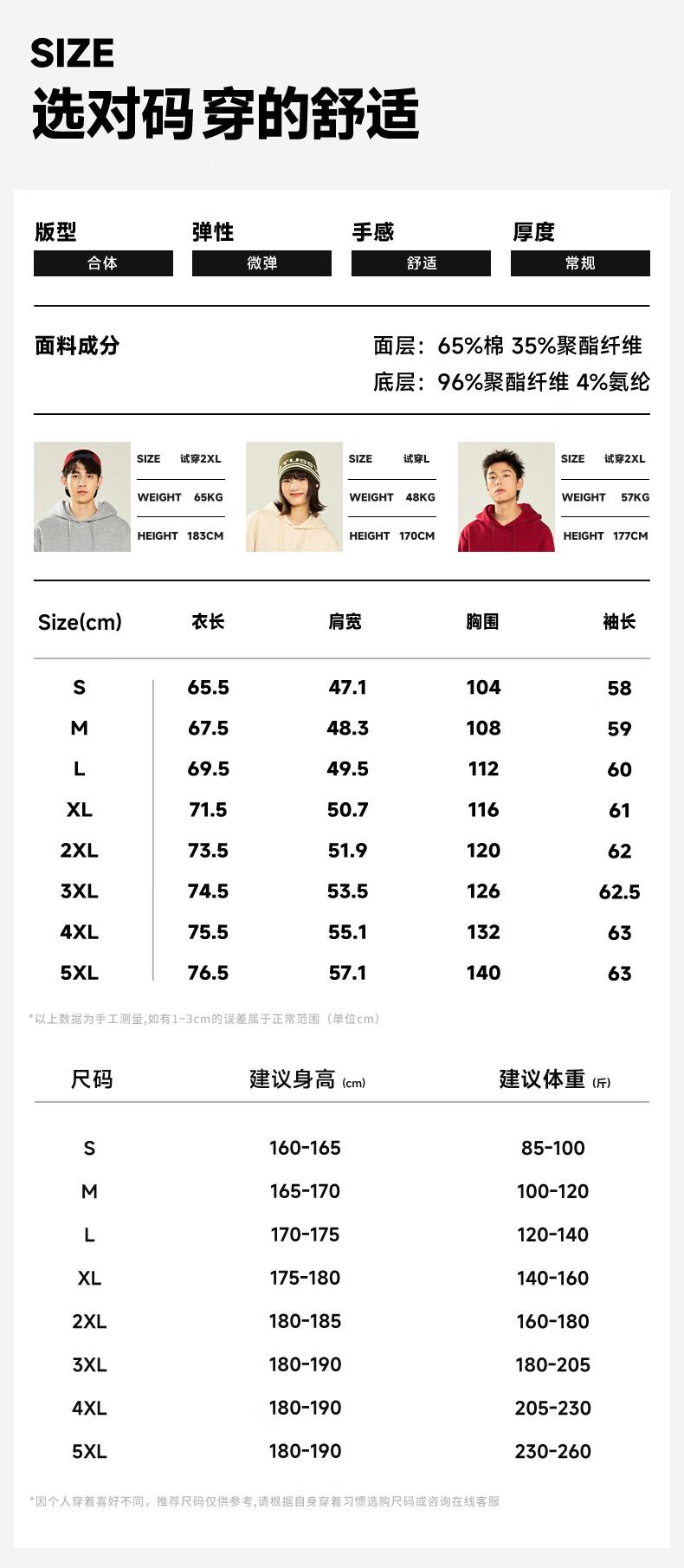 China (cm) 160-165/84-86 165-170 / 88-90 167-172 / 92-96 168-173 / 98-102 170-176 / 106-110