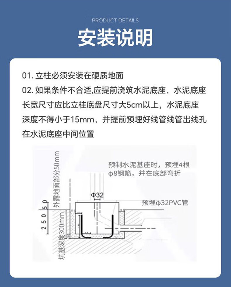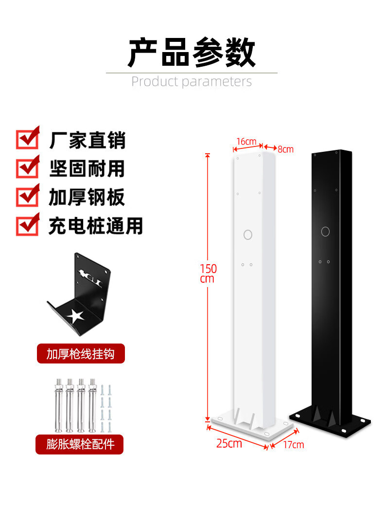 GJXBP car charging pile pole thickened mounting bracket BYD Tesla outdoor home rustless 4S supply white 1.5 high - widened and thickened hook screws charging pile column