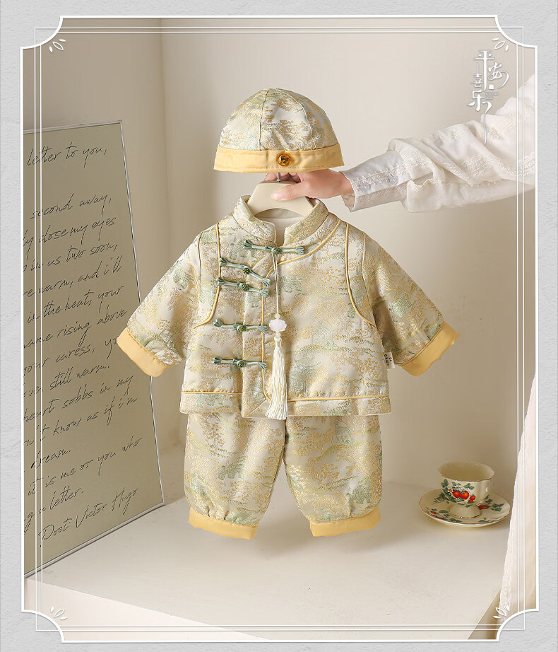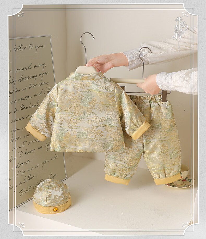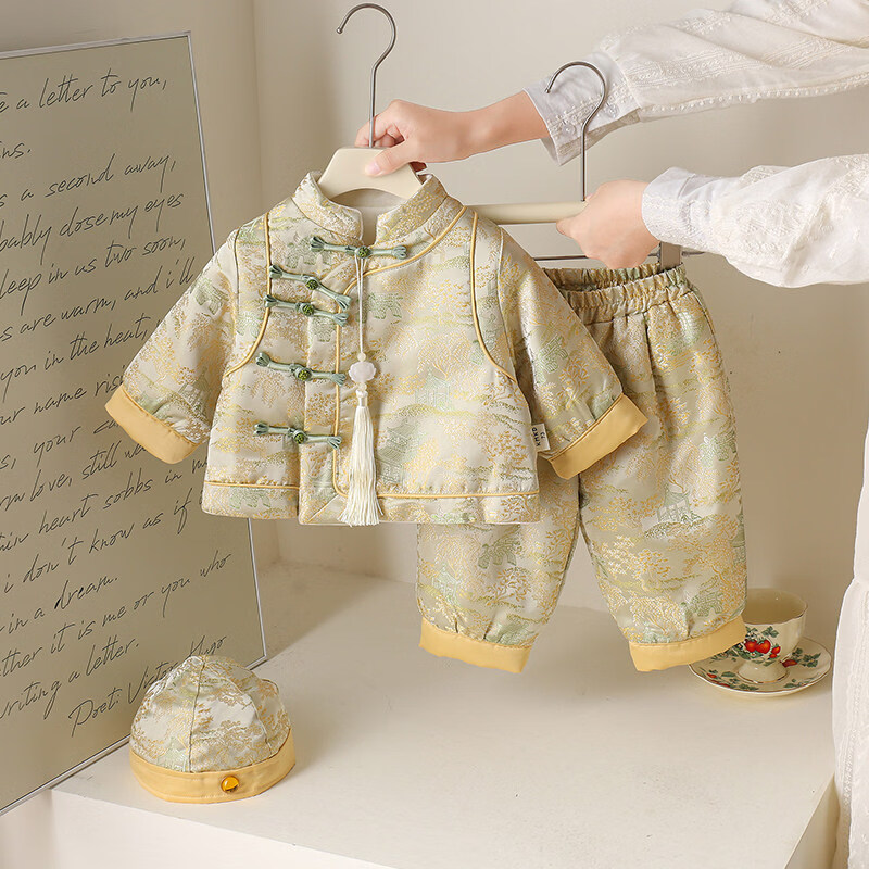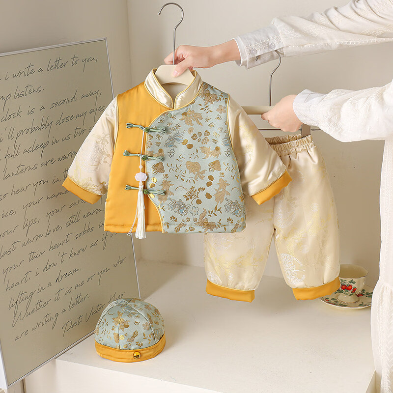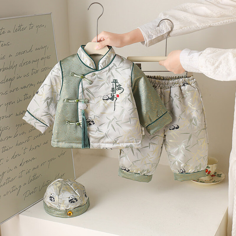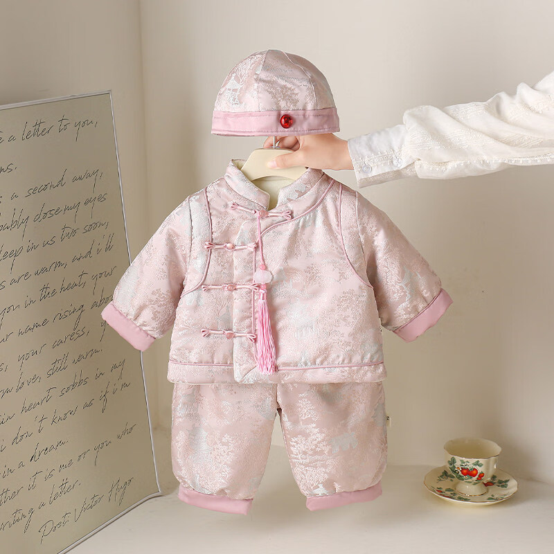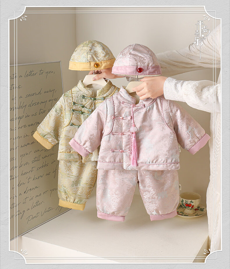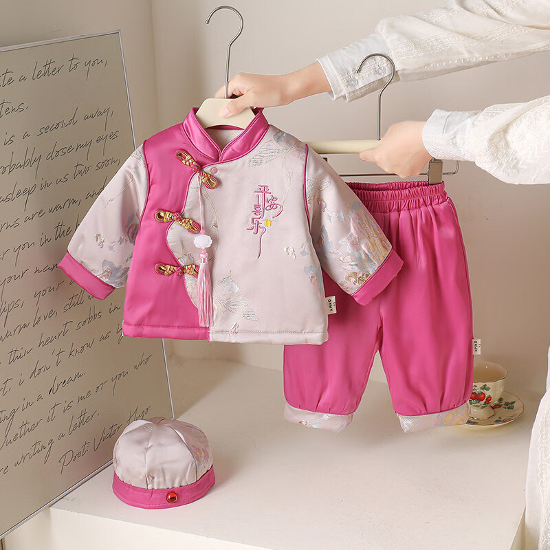 Disney (Disney) baby winter two-piece suit baby new Chinese style Tang suit thickened 100-day one-year-old dress festive outing and New Year greetings pink two-piece suit + hat 80cm