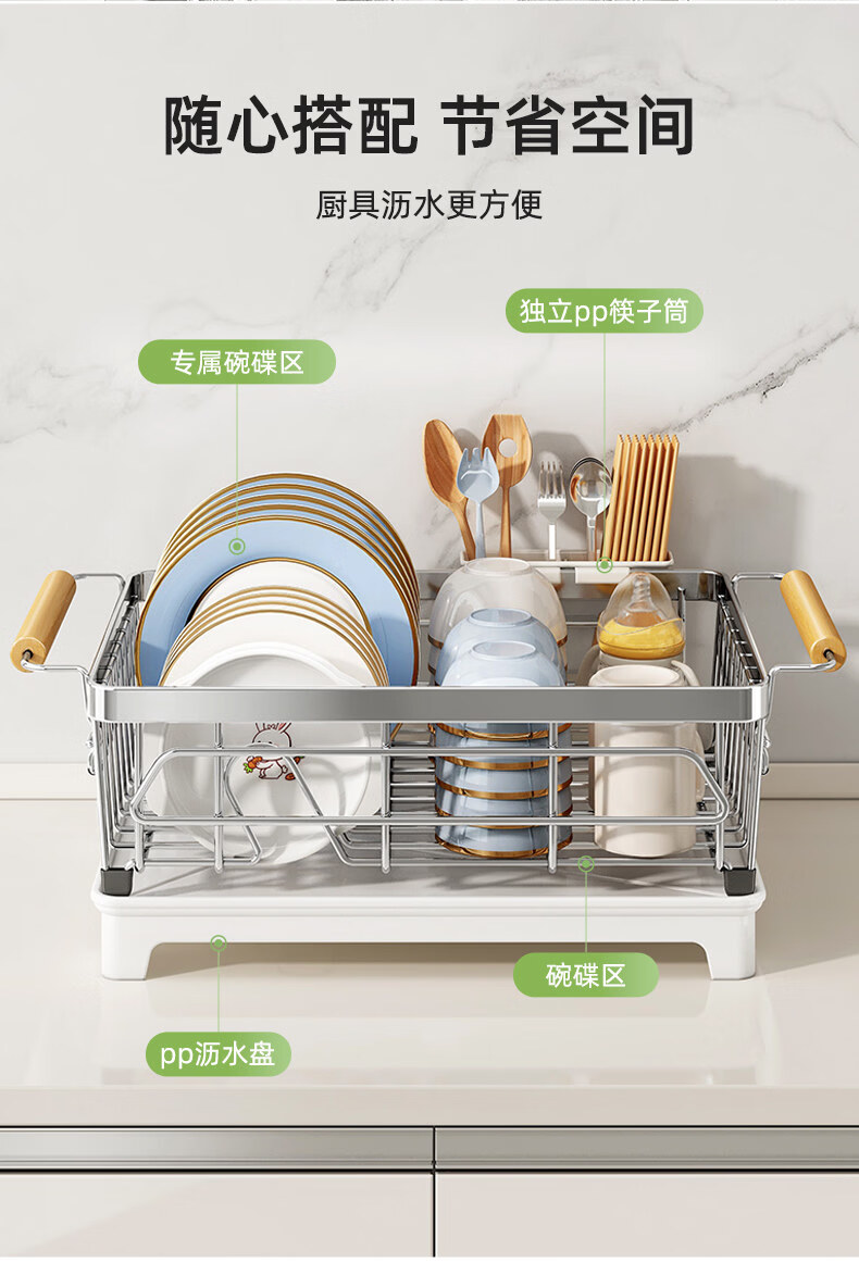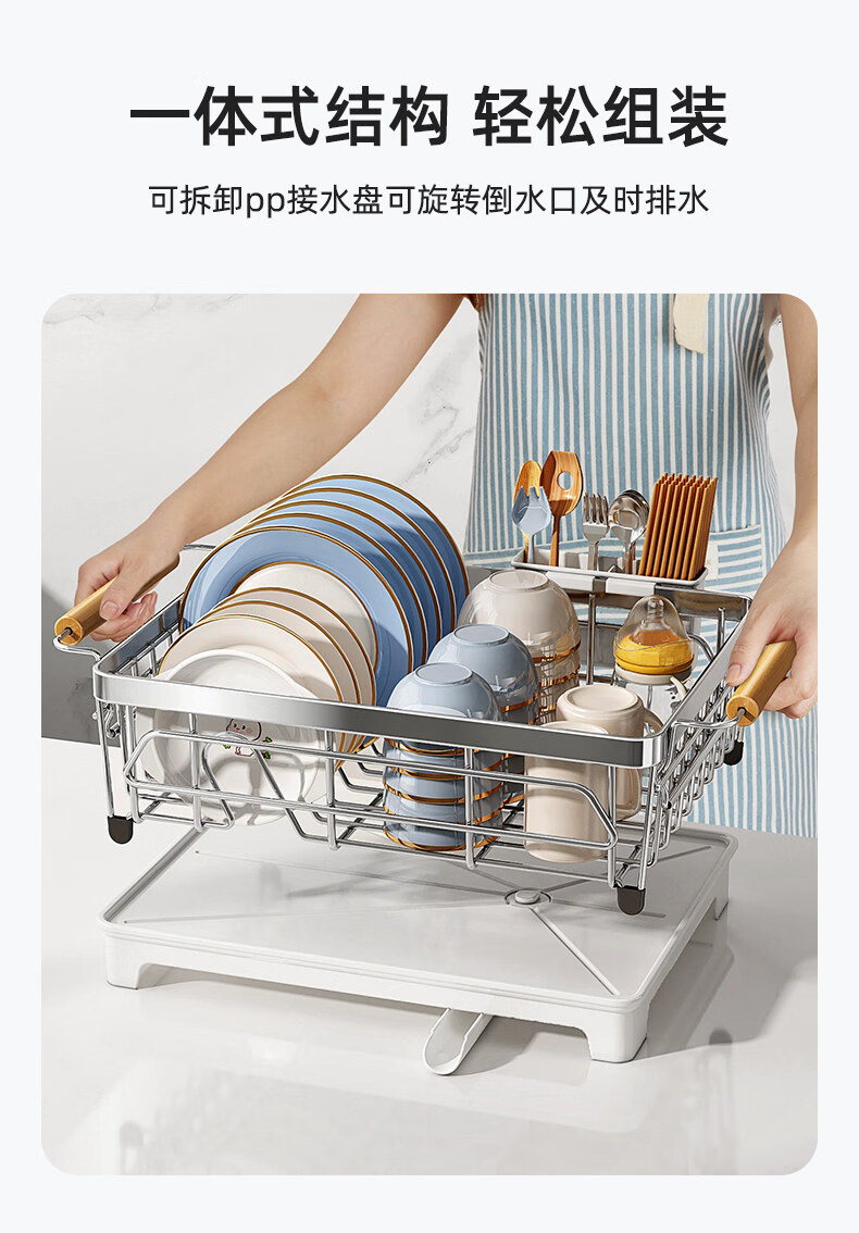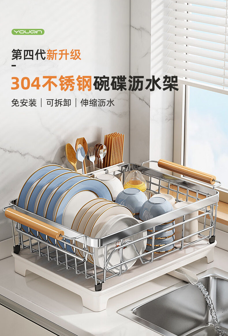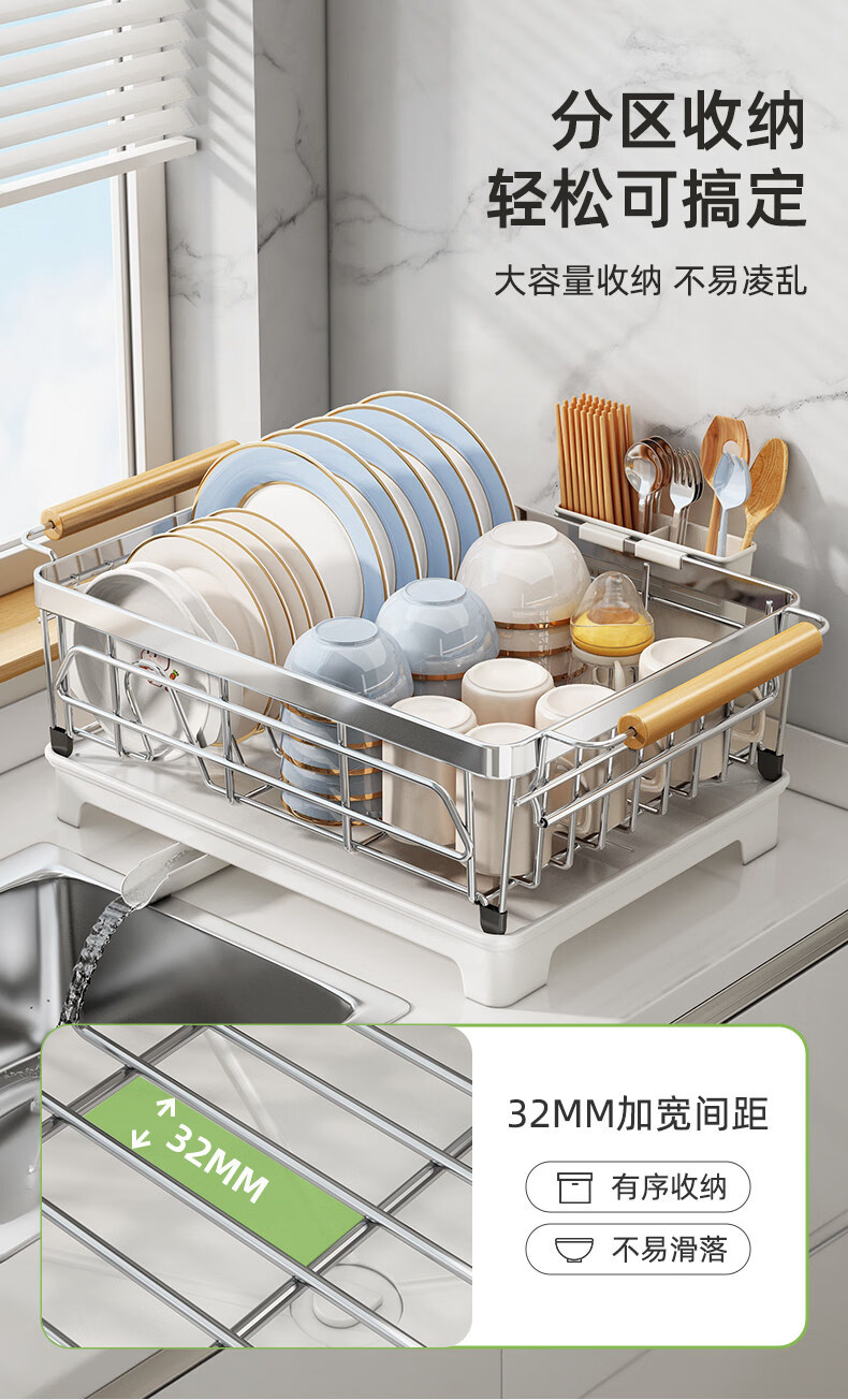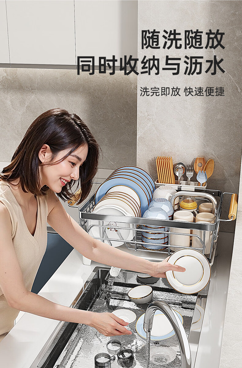 Tuojin dish storage rack drain dish rack 304 stainless steel dish rack kitchen rack for dishes and chopsticks drain basket 304 stainless steel original color large-model rust guaranteed
