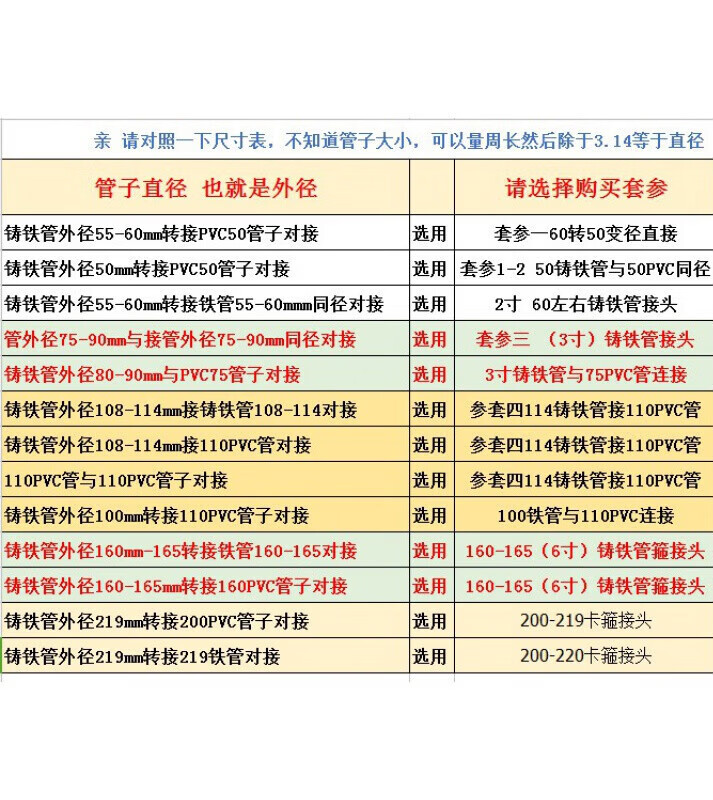 Wenzhi cast iron pipe fastener transfer PVC pipe 110 connection reducing joint 50 75 sewer pipe transformation union joint set reference one 60 to 50 reducing diameter direct