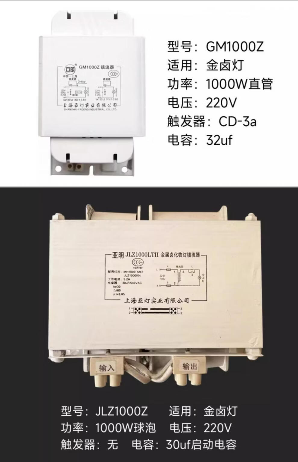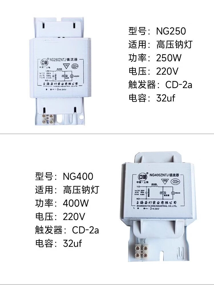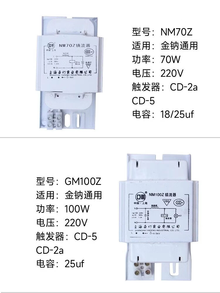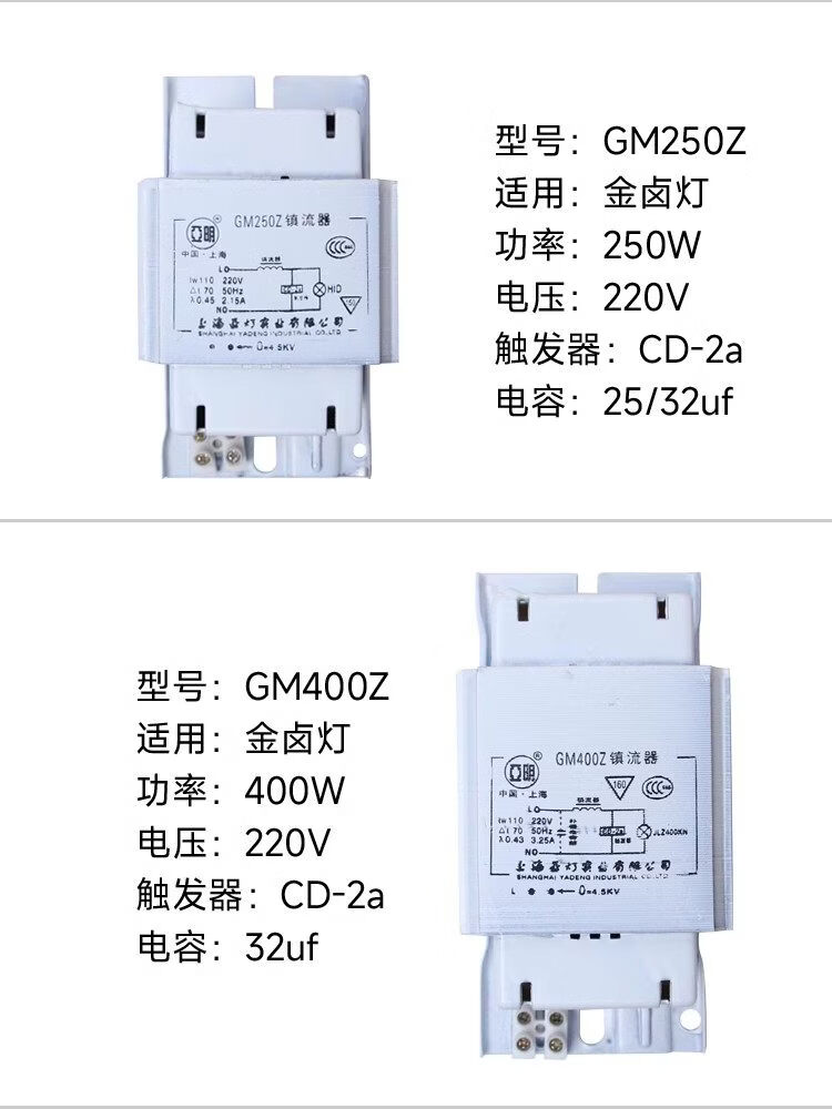 Metal halide lamp, high pressure sodium lamp, ballast 70W150W250W400W1000W inductive trigger Jinzhen 1000W (copper core)