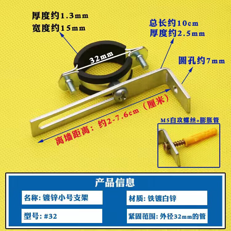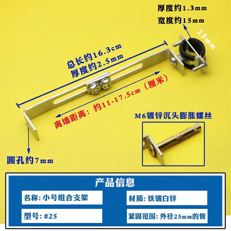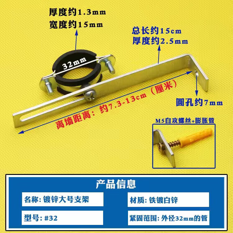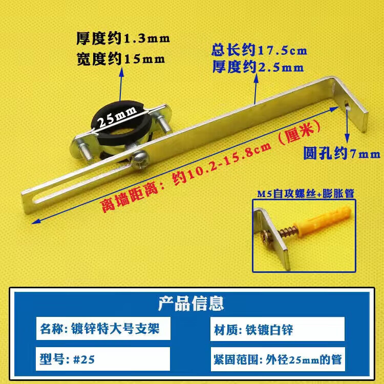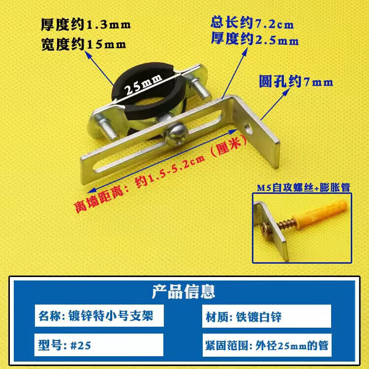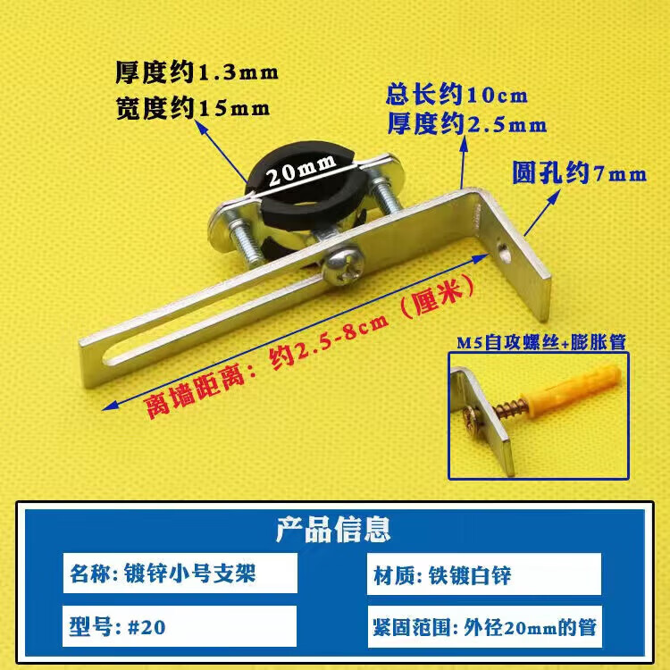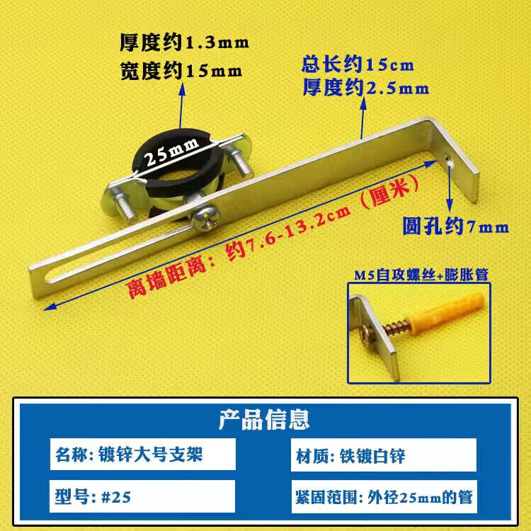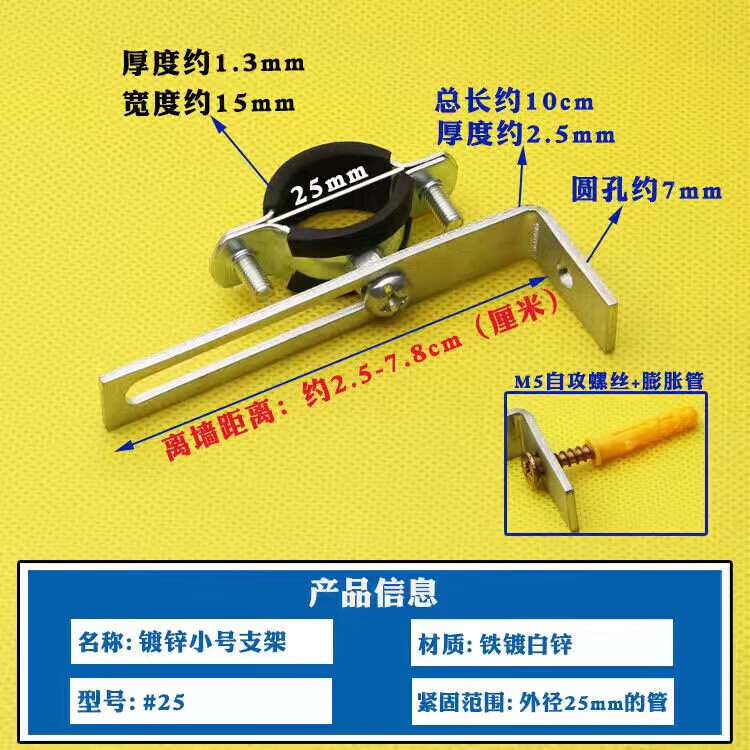Wenzhi Iron Galvanized Pipe Clamp Extended Hoop Gas Pipe Clamp PVCPPR Water Pipe Natural Gas Faucet Fixing Bracket Hanging Code #25 Extra Small Galvanized Bracket 4 pcs