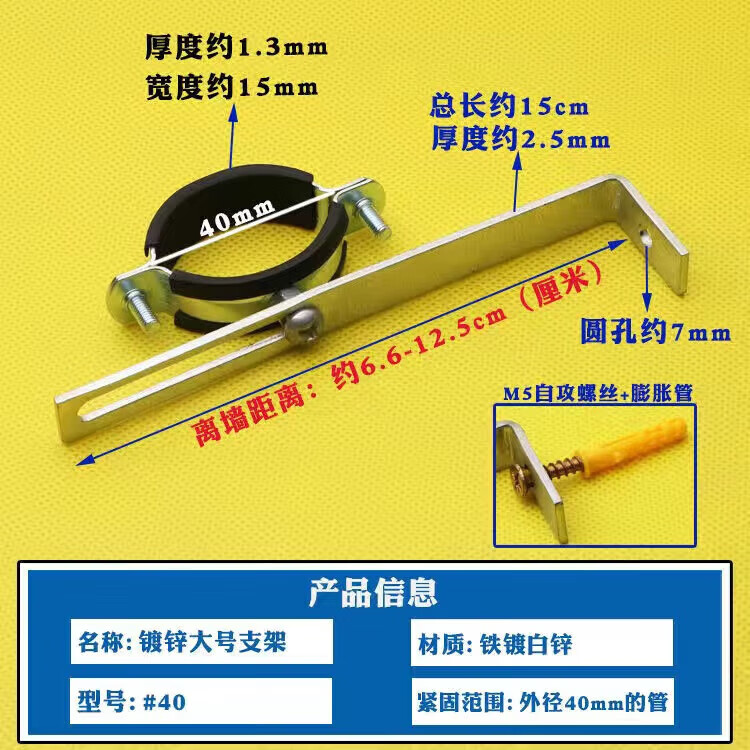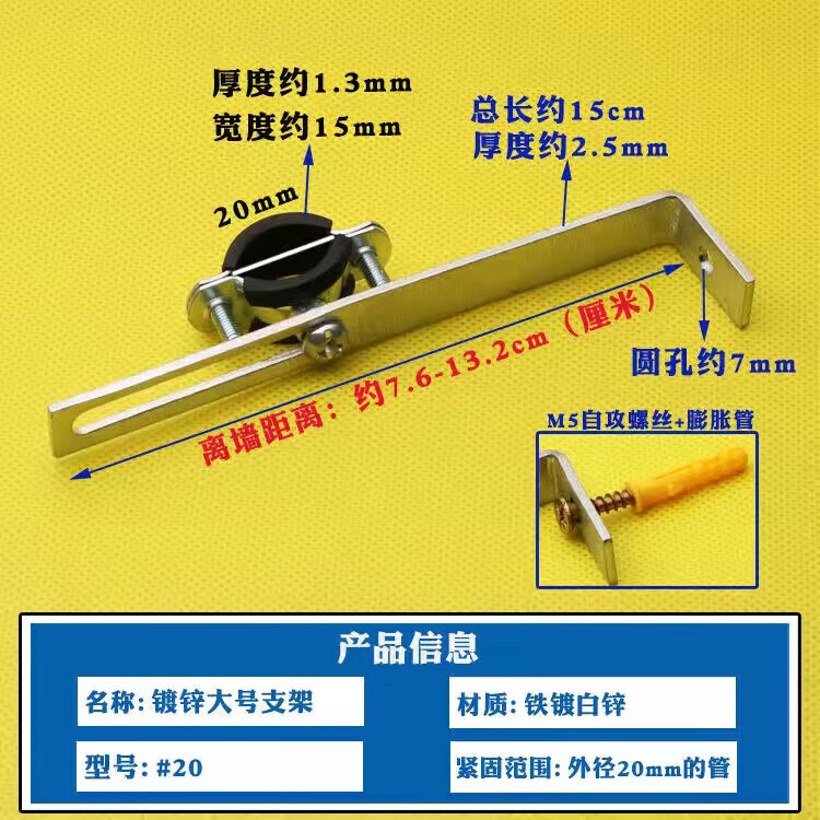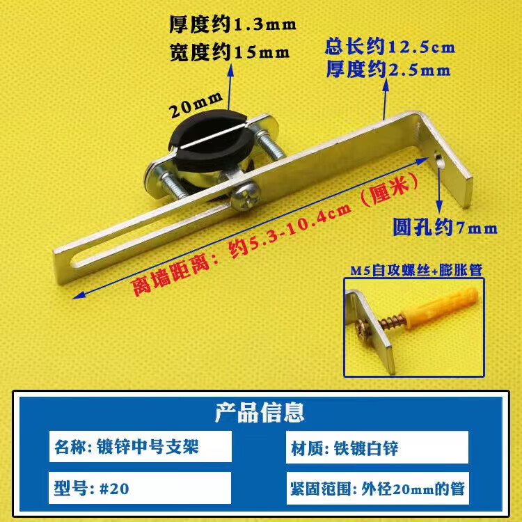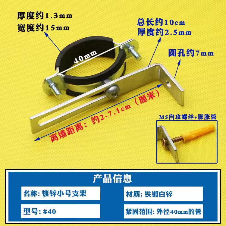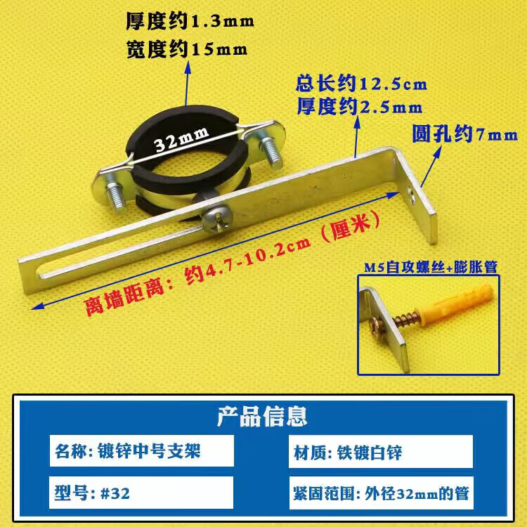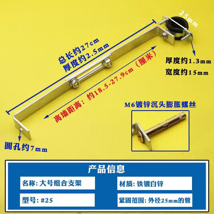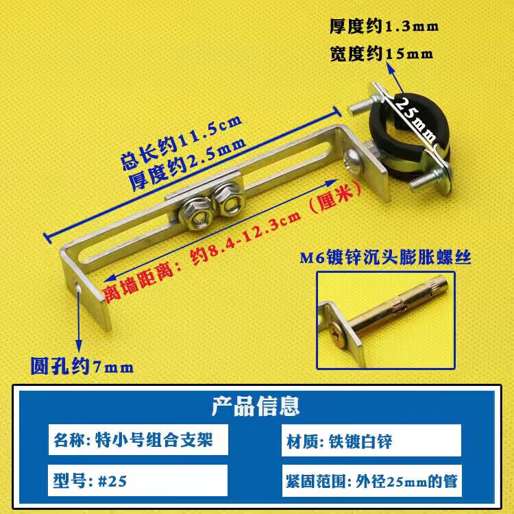 Wenzhi Iron Galvanized Pipe Clamp Extended Hoop Gas Pipe Clamp PVCPPR Water Pipe Natural Gas Faucet Fixing Bracket Hanging Code #25 Extra Small Galvanized Bracket 4 pcs