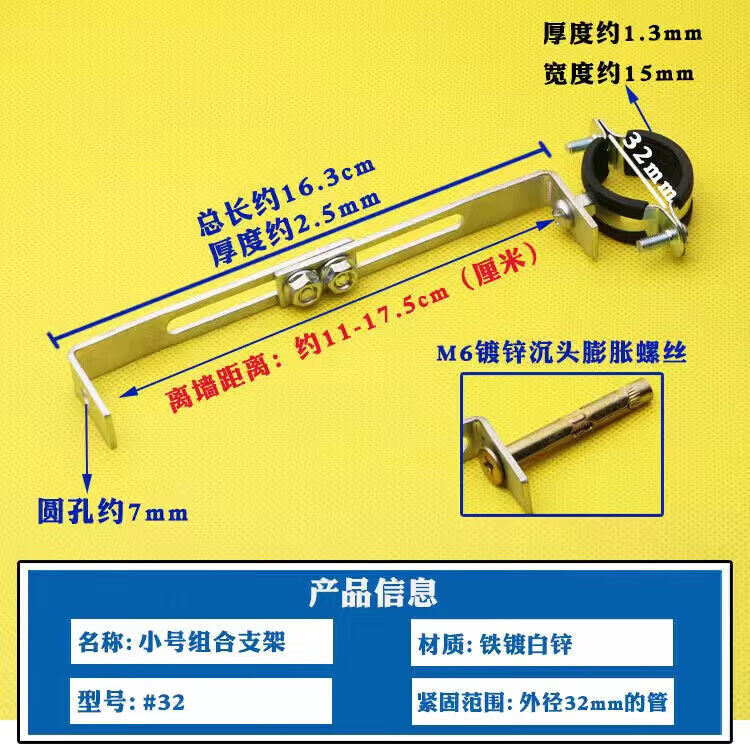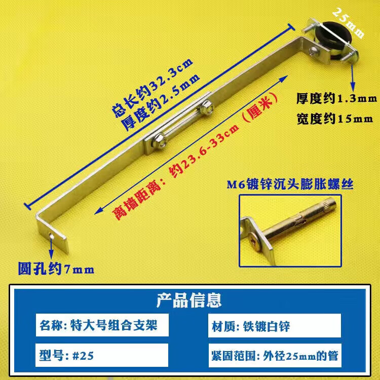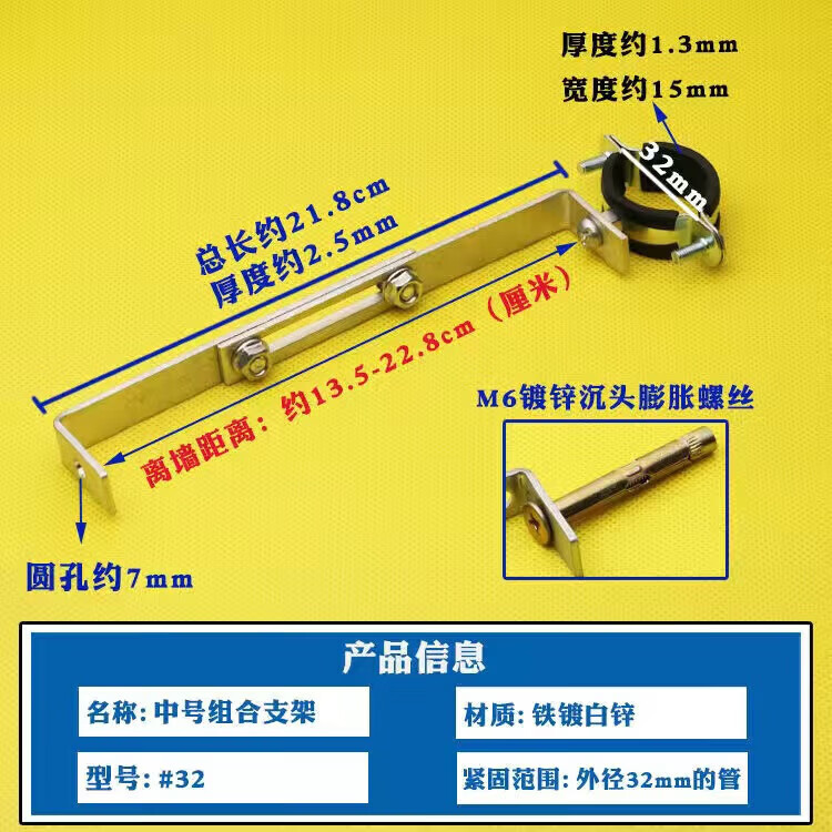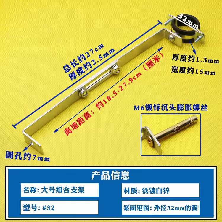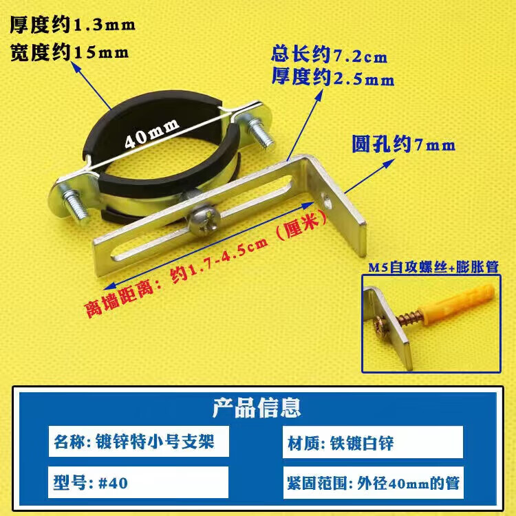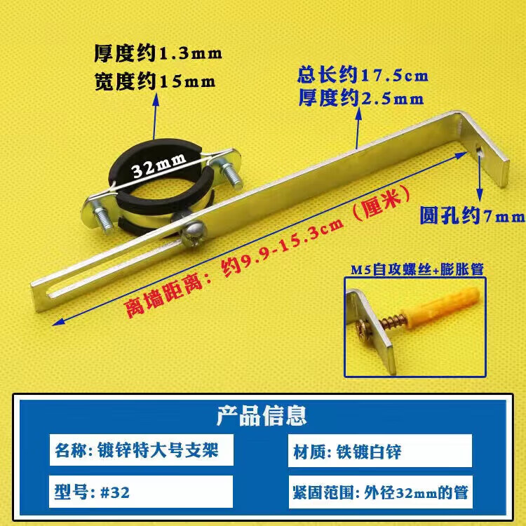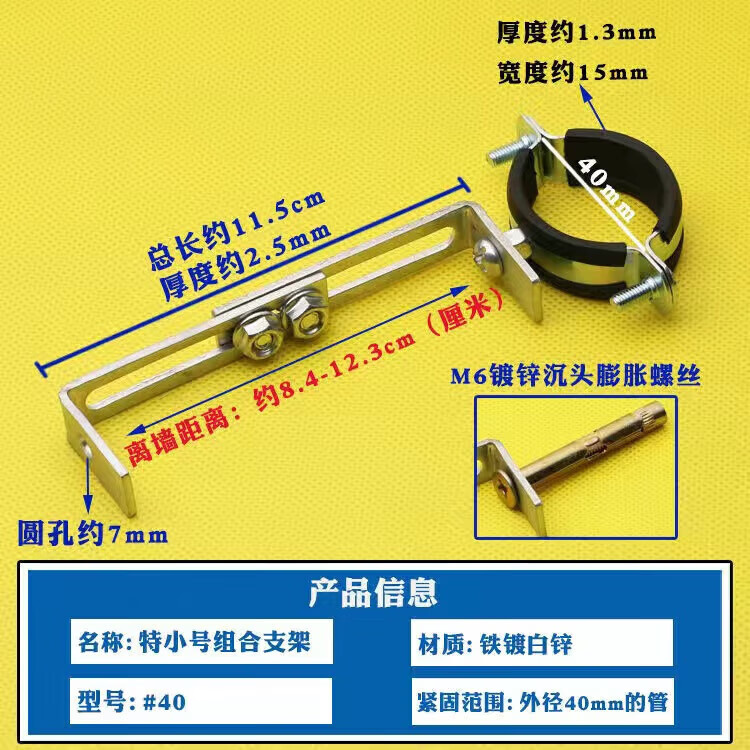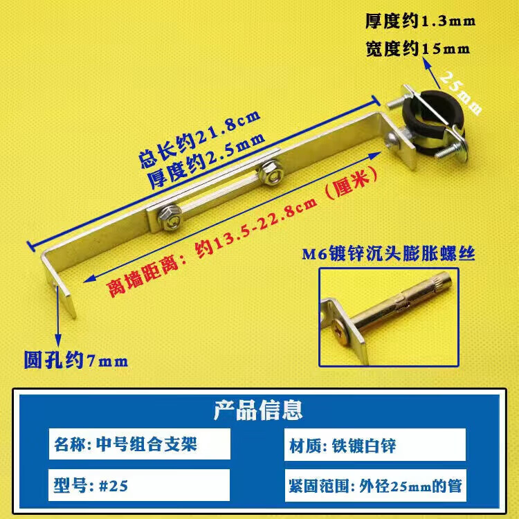 Wenzhi Iron Galvanized Pipe Clamp Extended Hoop Gas Pipe Clamp PVCPPR Water Pipe Natural Gas Faucet Fixing Bracket Hanging Code #25 Extra Small Galvanized Bracket 4 pcs