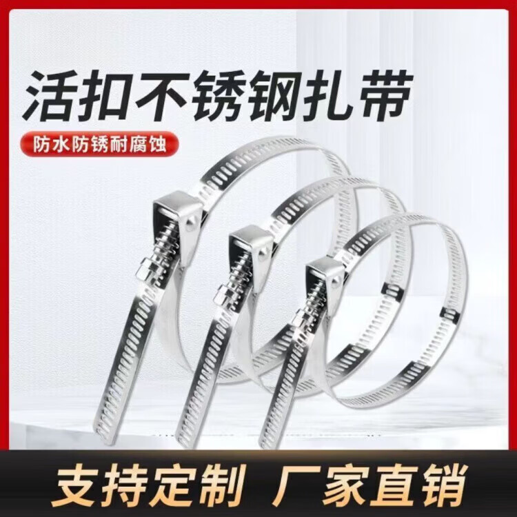 Wenzhi manufacturer wholesales 10 pieces of 304 quick release ladder hose hoop stainless steel live buckle cable tie marine durable metal 10 pieces/pack 900mm/root length 90cm
