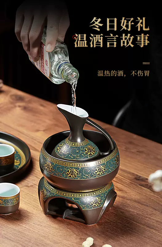 Yusen Yi Porcelain Constant Pot Art Wine Warmer Household Yellow Wine Wine Warmer Japanese Wine Set Set White Wine Sake Ceramic Hot Wine Ancient Rhyme Round Pot Wine Ware One Pot 6 Cups - Wine Warming Bowl - Heating Table 6 Pieces