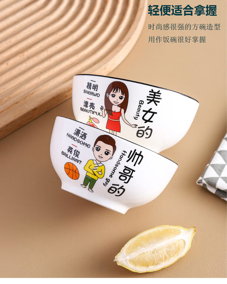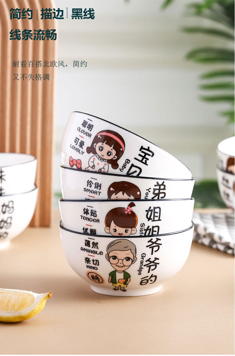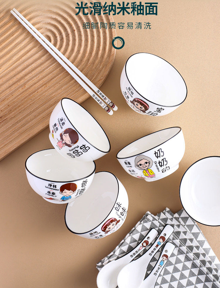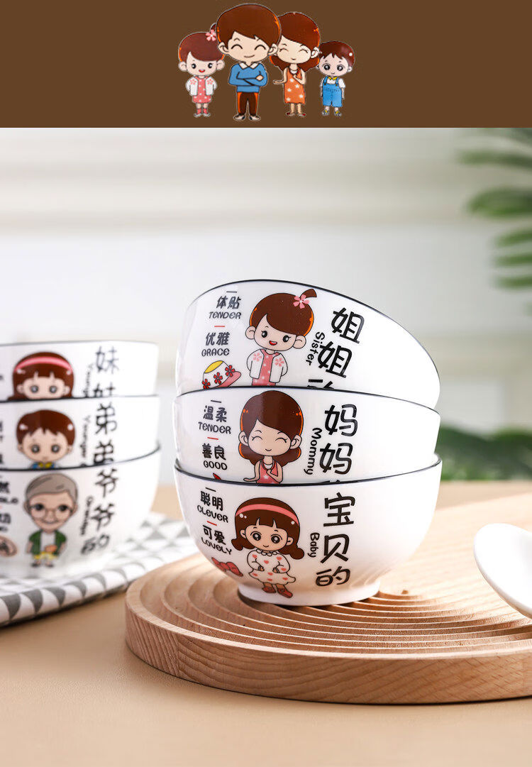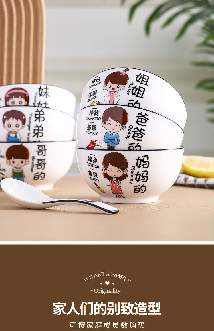 Wing Fantasy instant noodle bowl 6-inch salad bowl instant noodle bowl creative special eating bowl household tableware set soup 6-inch round bowl 2 parents