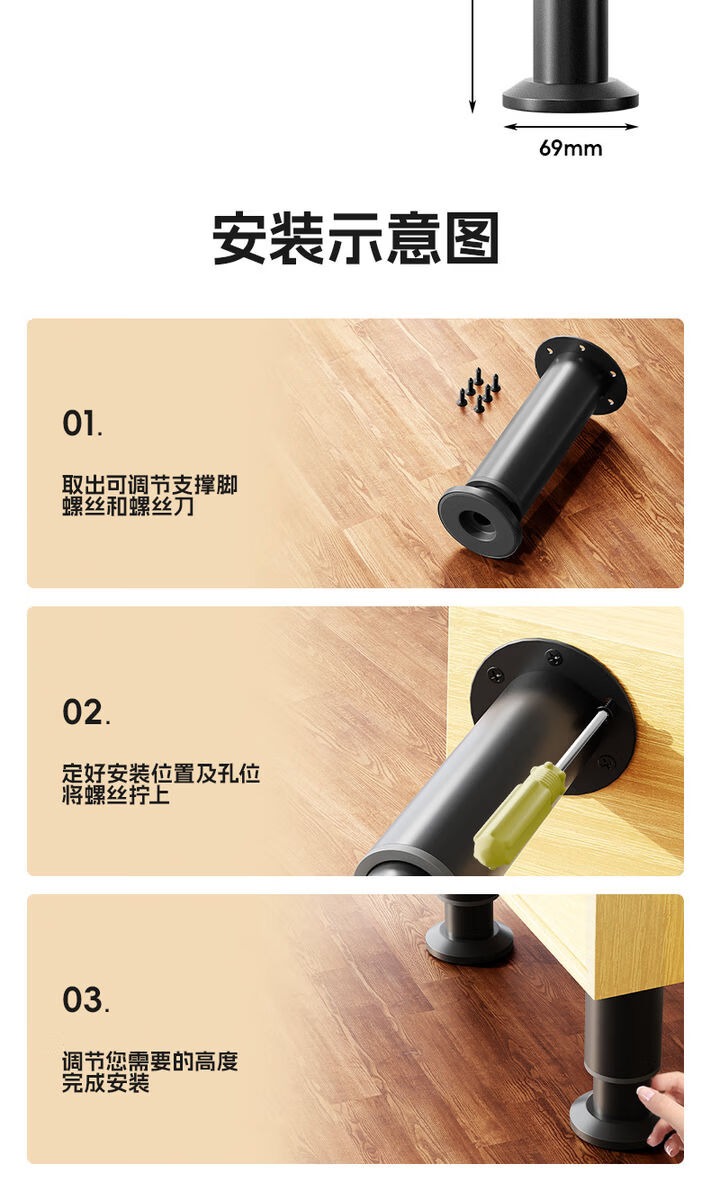 Fantasy table support frame coffee table bracket adjustable foot pad support foot table leg cabinet leg adjustment base export quality 4 pieces black + metal carbon steel 18 + 30c