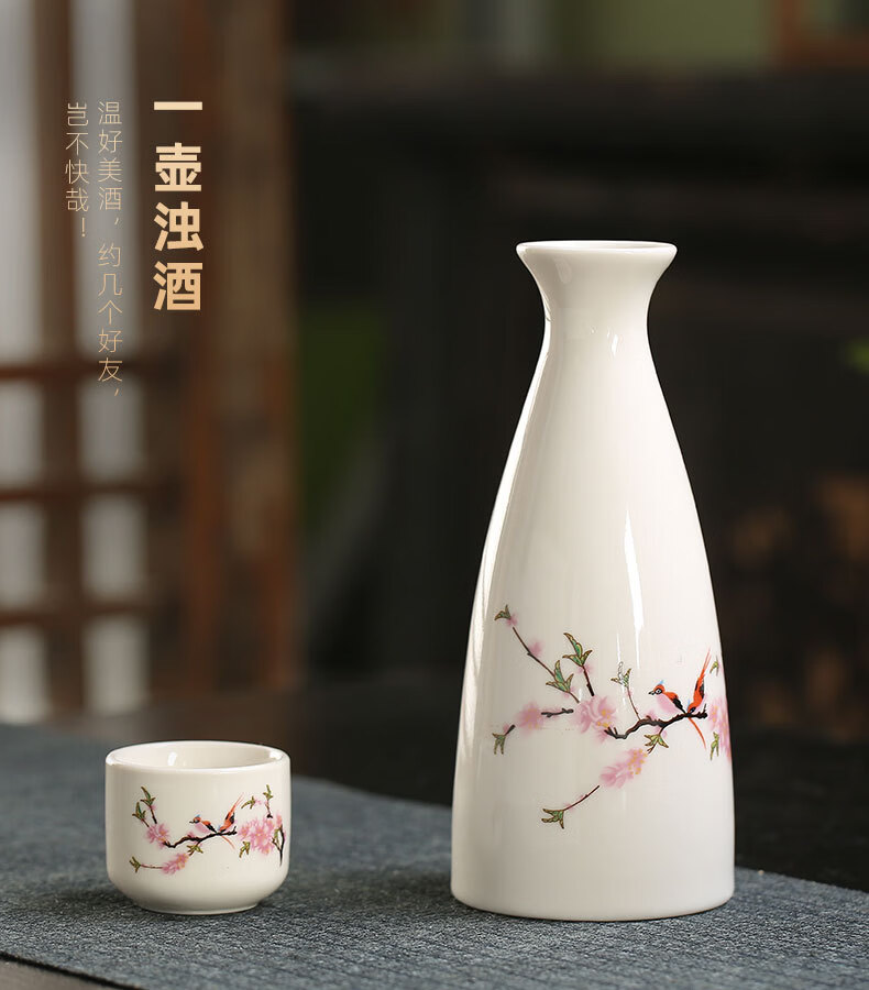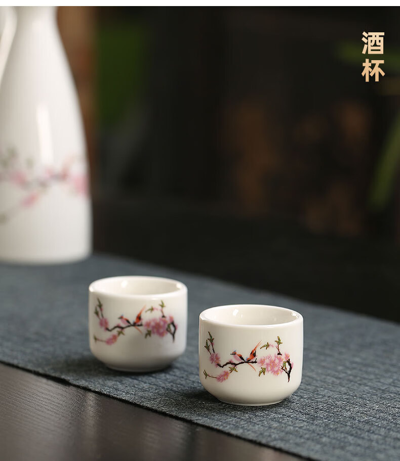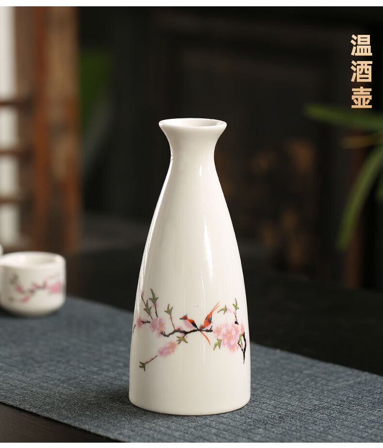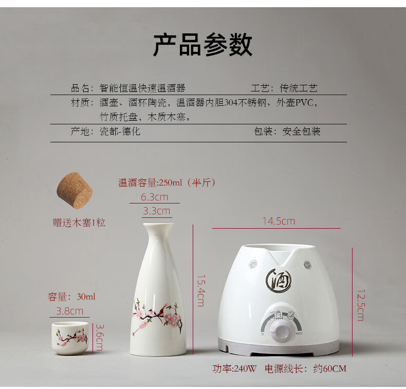 Miaopule Electric Wine Warmer Constant Temperature Wine Bottle Home Fashion Retro Ceramic Temperature Control White Wine Yellow Wine Tray Wine Set Electric Heat Control Temperature Wine Warmer + 250ml Flower and Bird Round Wine Bottle + 6 Cups + Tray
