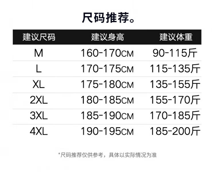 China (cm) 165 / 88-90 170 / 96-98 175 / 108-110 180 / 118-122 185 / 126-130