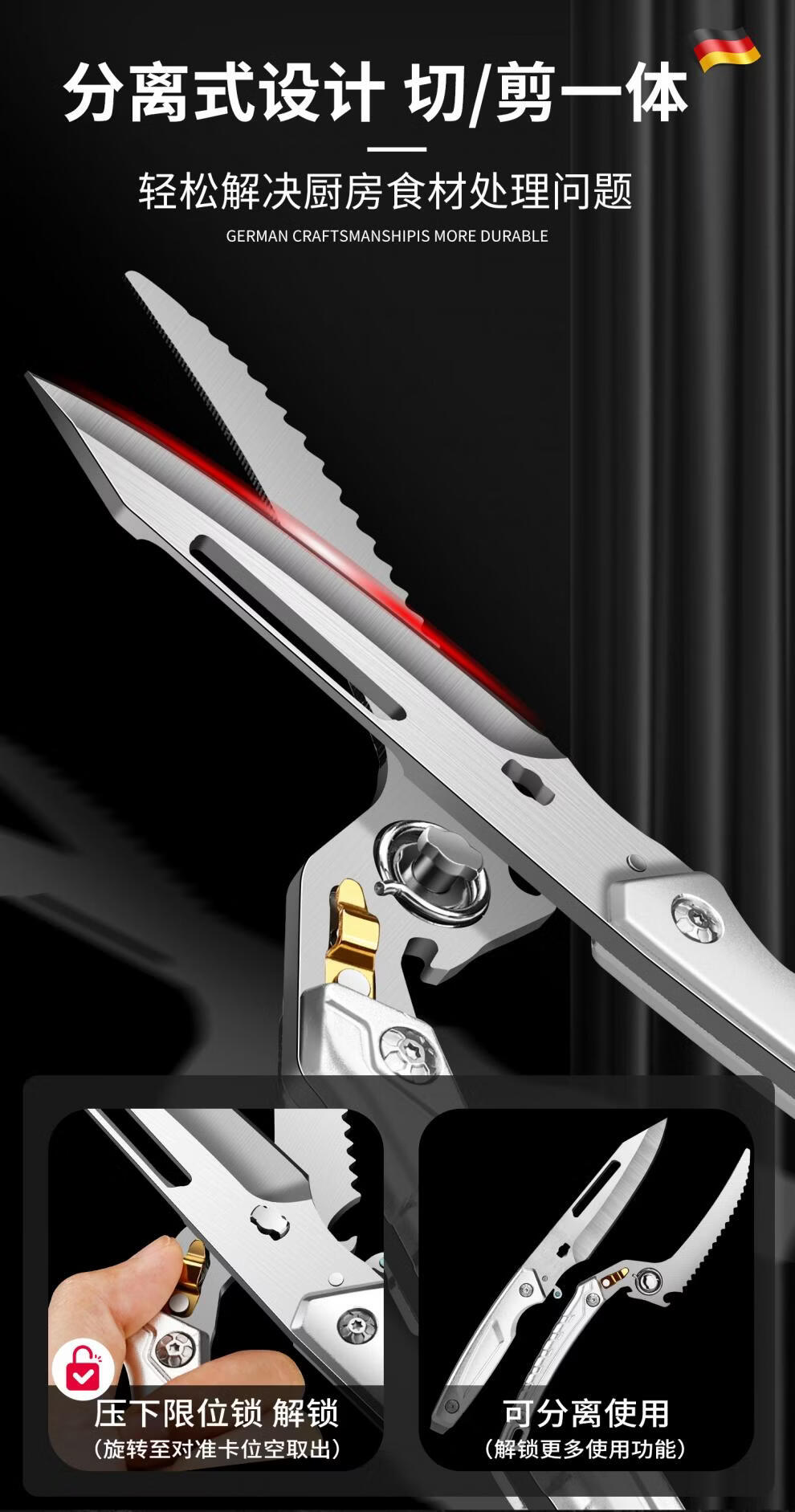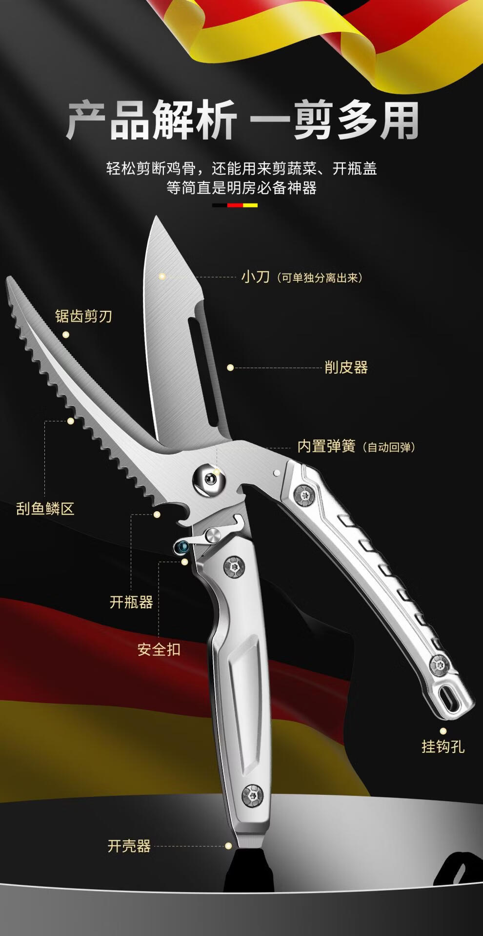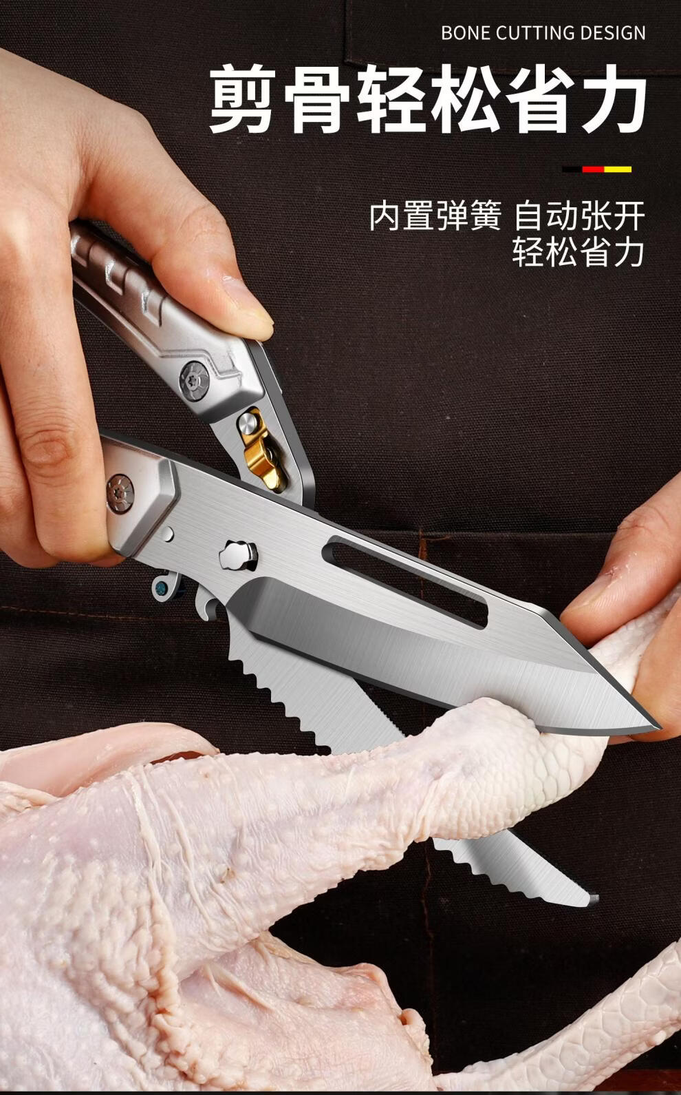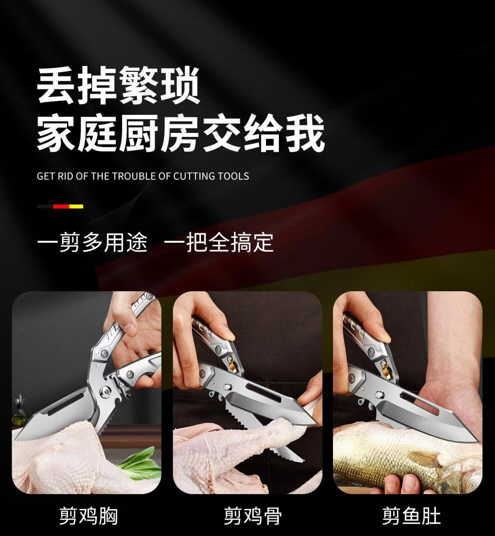 Qiao Bo Lai scissors, kitchen special scissors for chicken, duck and goose bones, strong scissors, stainless steel sharp household multi-functional food scissors, one scissor for multiple uses. Sharp upgrade, silver-white handle powerful chicken bone scissors
