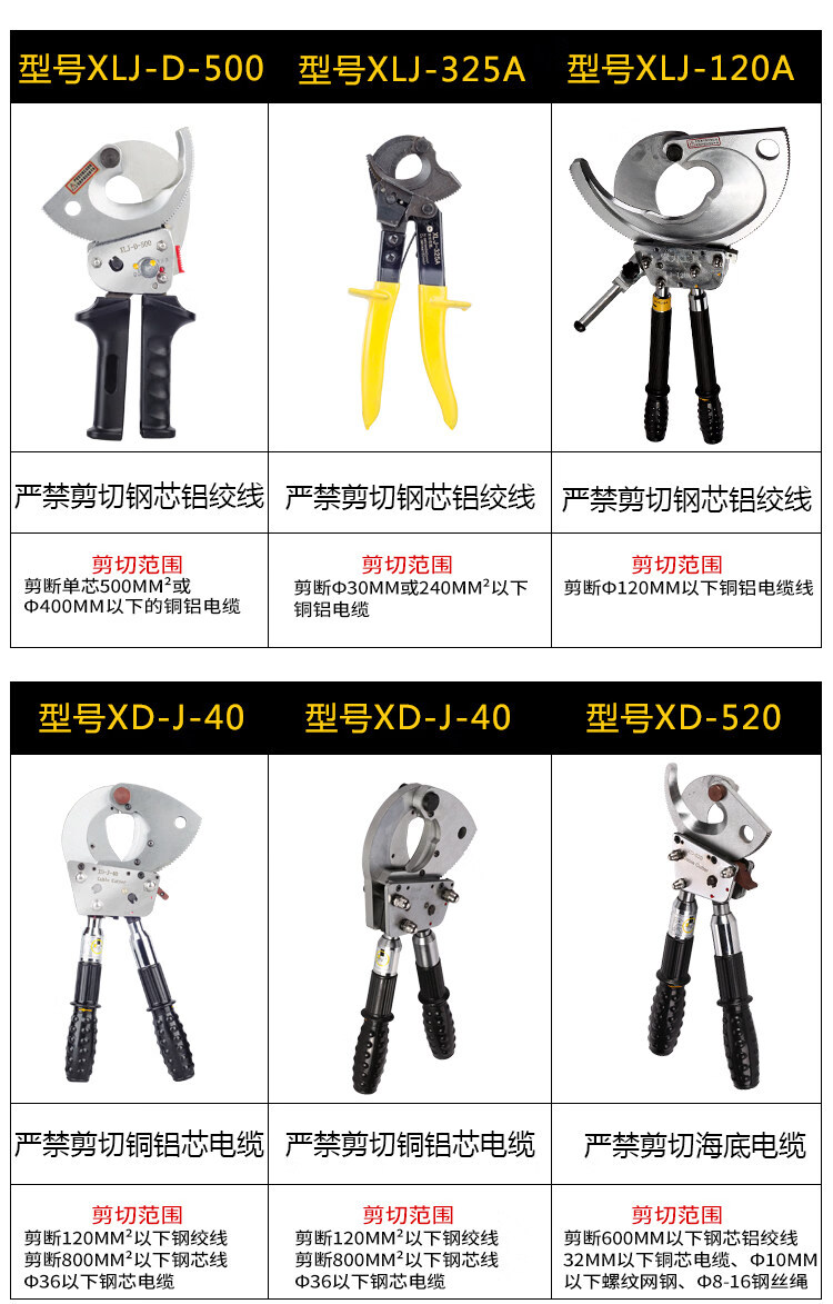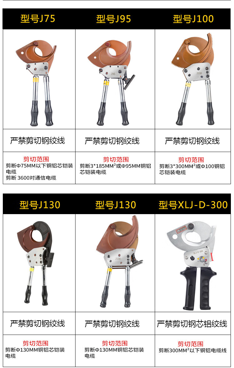 Qiao Bo Lai ratchet-type wire cutter, wire cutter J40/52/95/10 high-voltage armored cable, cable scissors, electrical steel stranded wire, export model J40 cut diameter below 3 cm