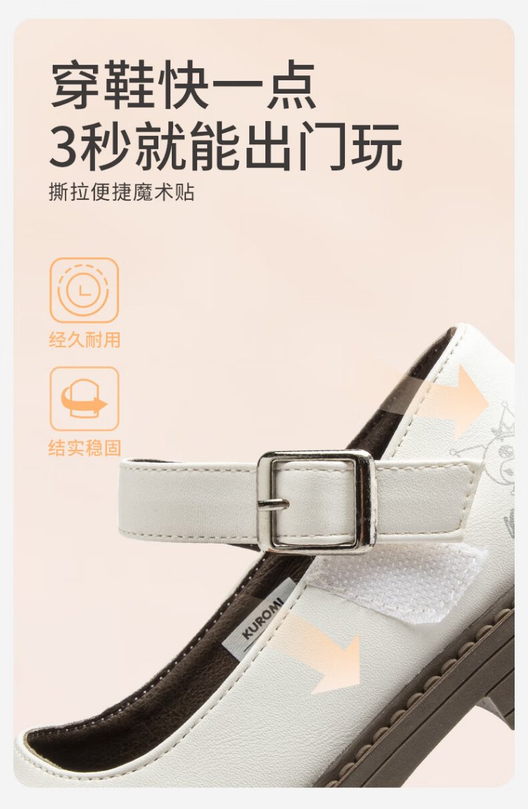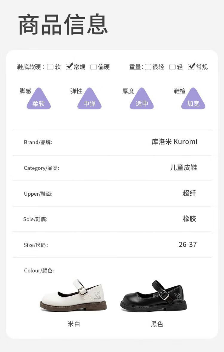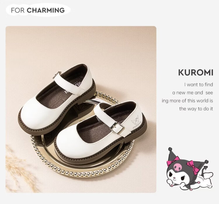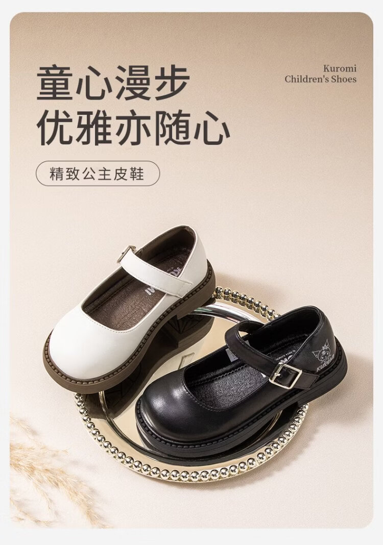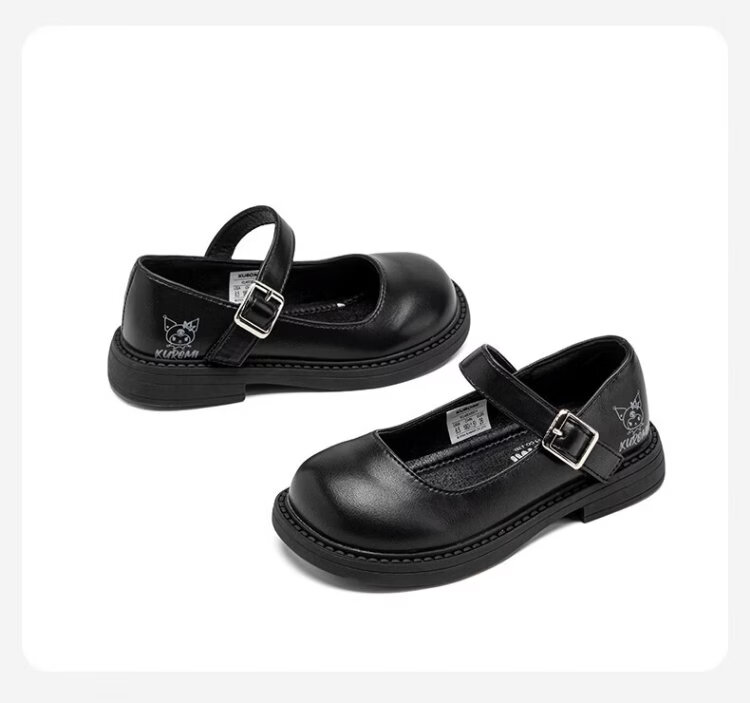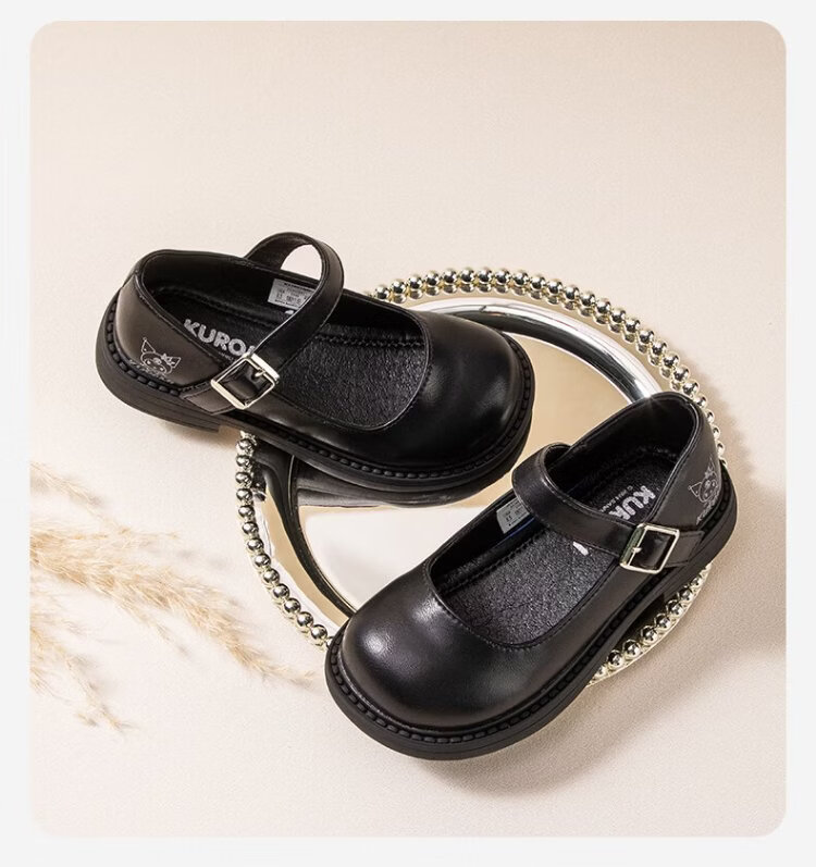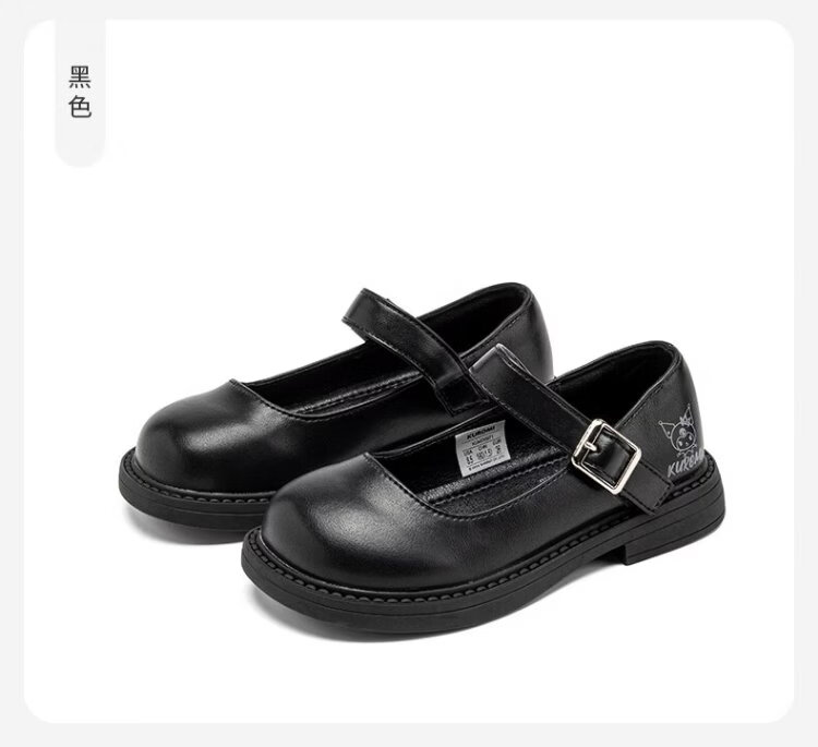 Hello Kitty children's shoes, girls' leather shoes, Kuromi spring princess shoes, British leather shoes, performance soft-soled shoes, Mary Jane shoes, black, size 26, suitable for feet 16.3-17.0cm long