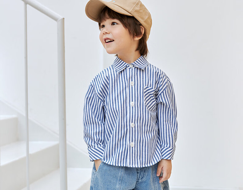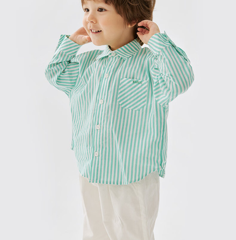 Koala Nose Color Stripe Diary Small Shirt Colorful and Vibrant Outfits Children’s Pure Cotton Versatile Tops for All Seasons Pink Stripes 110